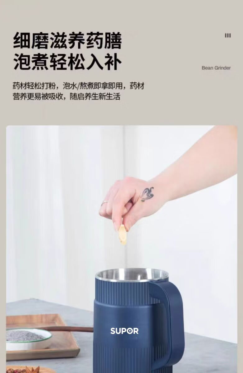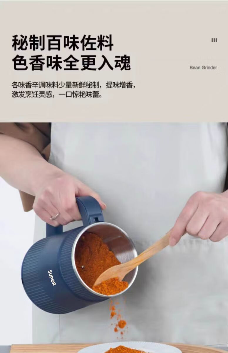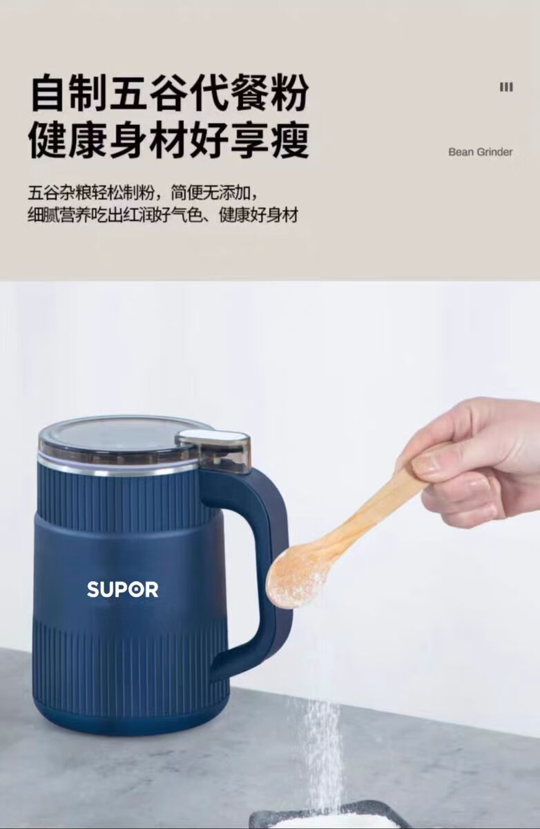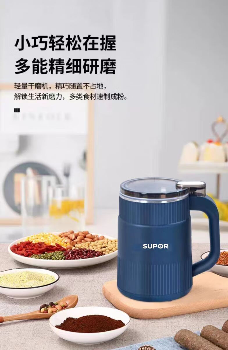 Supor crusher household small ultra-fine powdered Chinese and Western medicine grinder dry and wet dual-use grain seasoning grinding rock sugar powder blue eight leaves stainless steel two sets of knives