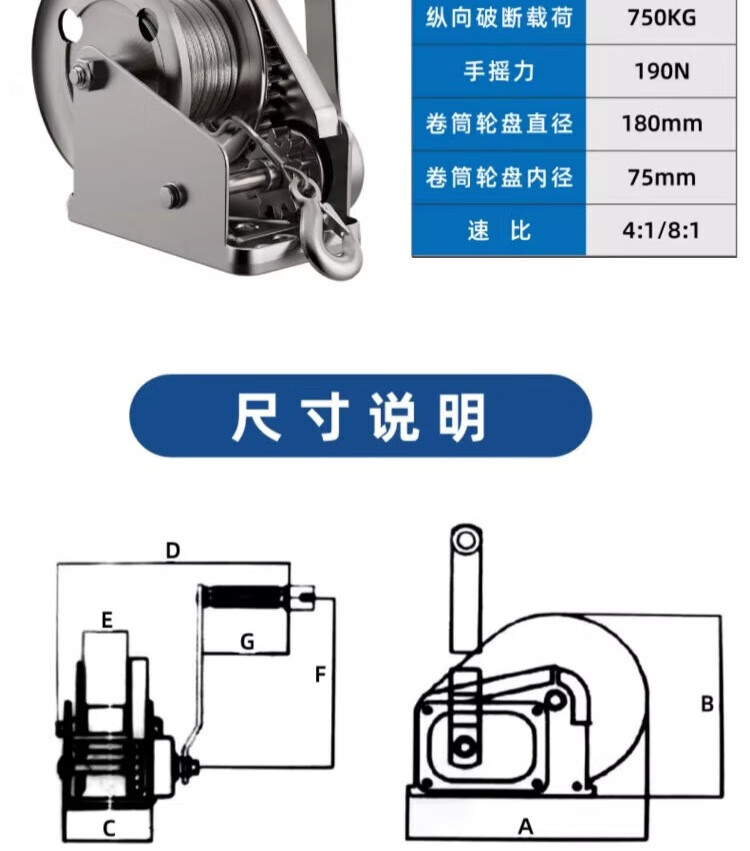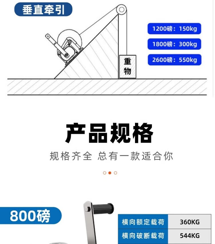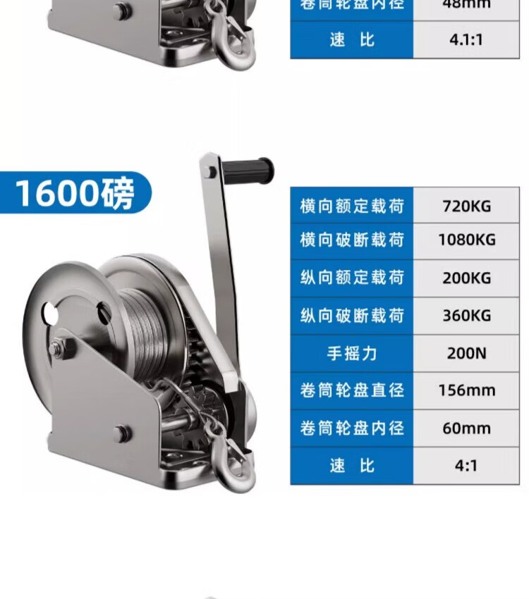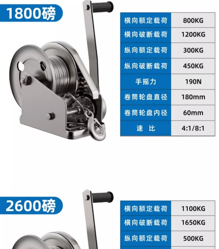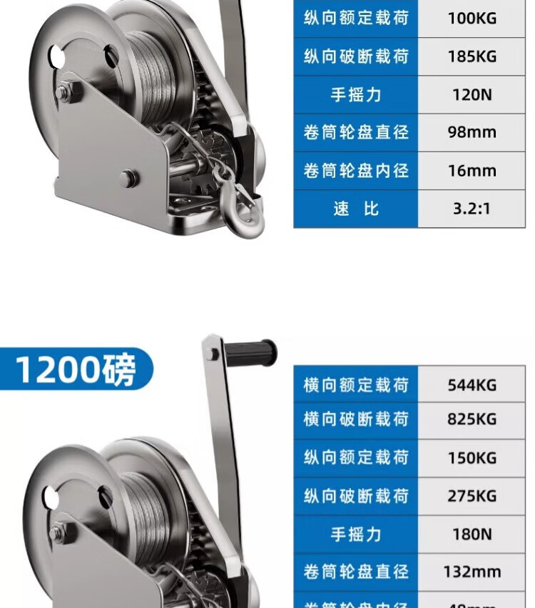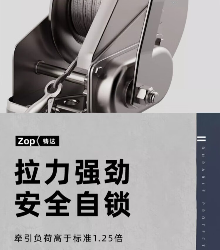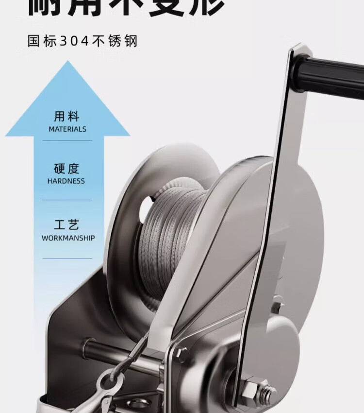 Zhuda stainless steel two-way self-locking hand winch small manual household crane lifter winch national standard 304 stainless steel 1200 pounds 10 meters line