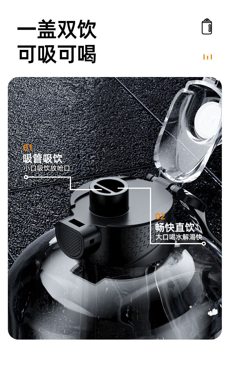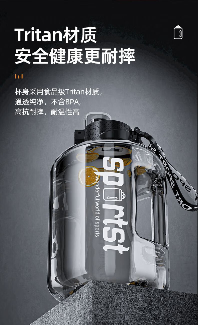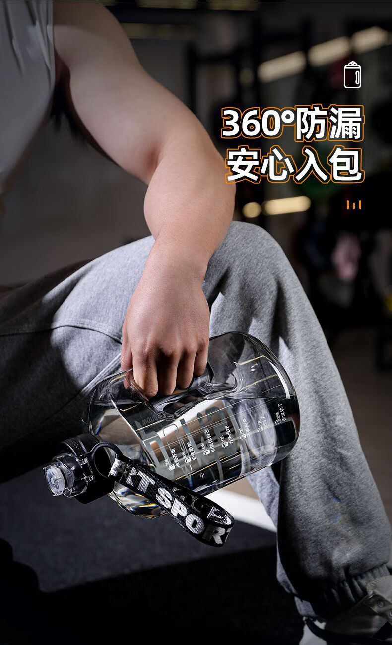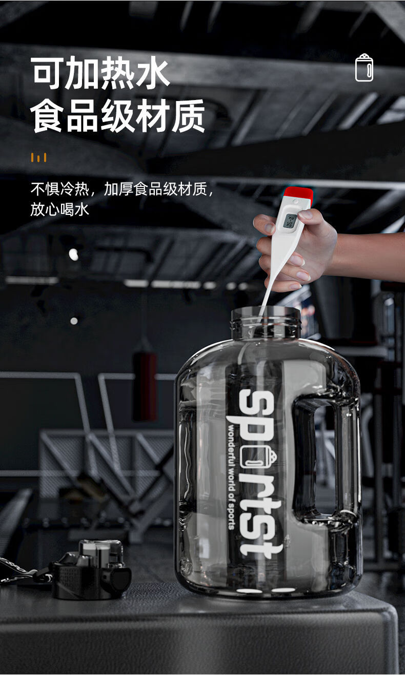 Xiaoqi Large Capacity Internet Celebrity Ton ton Sports and Fitness Plastic Dayton Space Bottle for Male and Female Students High Temperature Resistant Charming Black 5L Direct Drink + Straw + Cup Brush + Rope