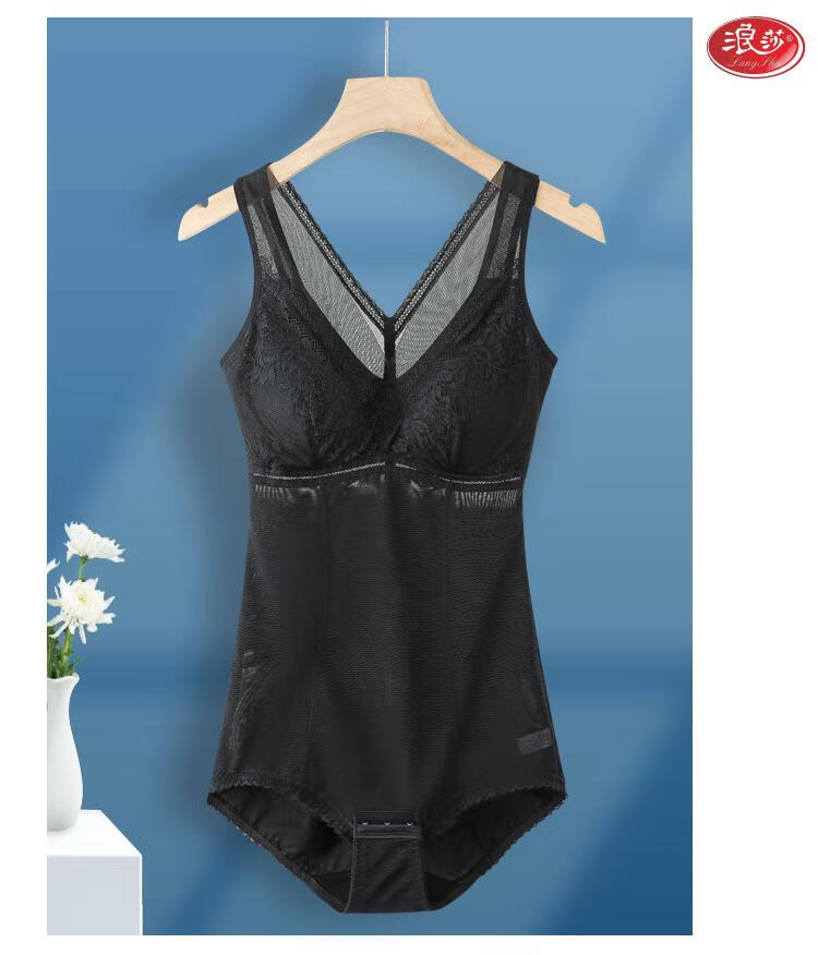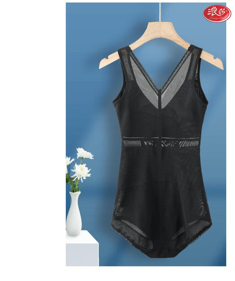 LangSha Tummy Control Body Shaping Bodysuit for Women with Breast Pad All-in-One Summer Thin Bra Waistless Seamless Slim Bodysuit (1 piece) Black M Recommended 80-100 catties 75A/B