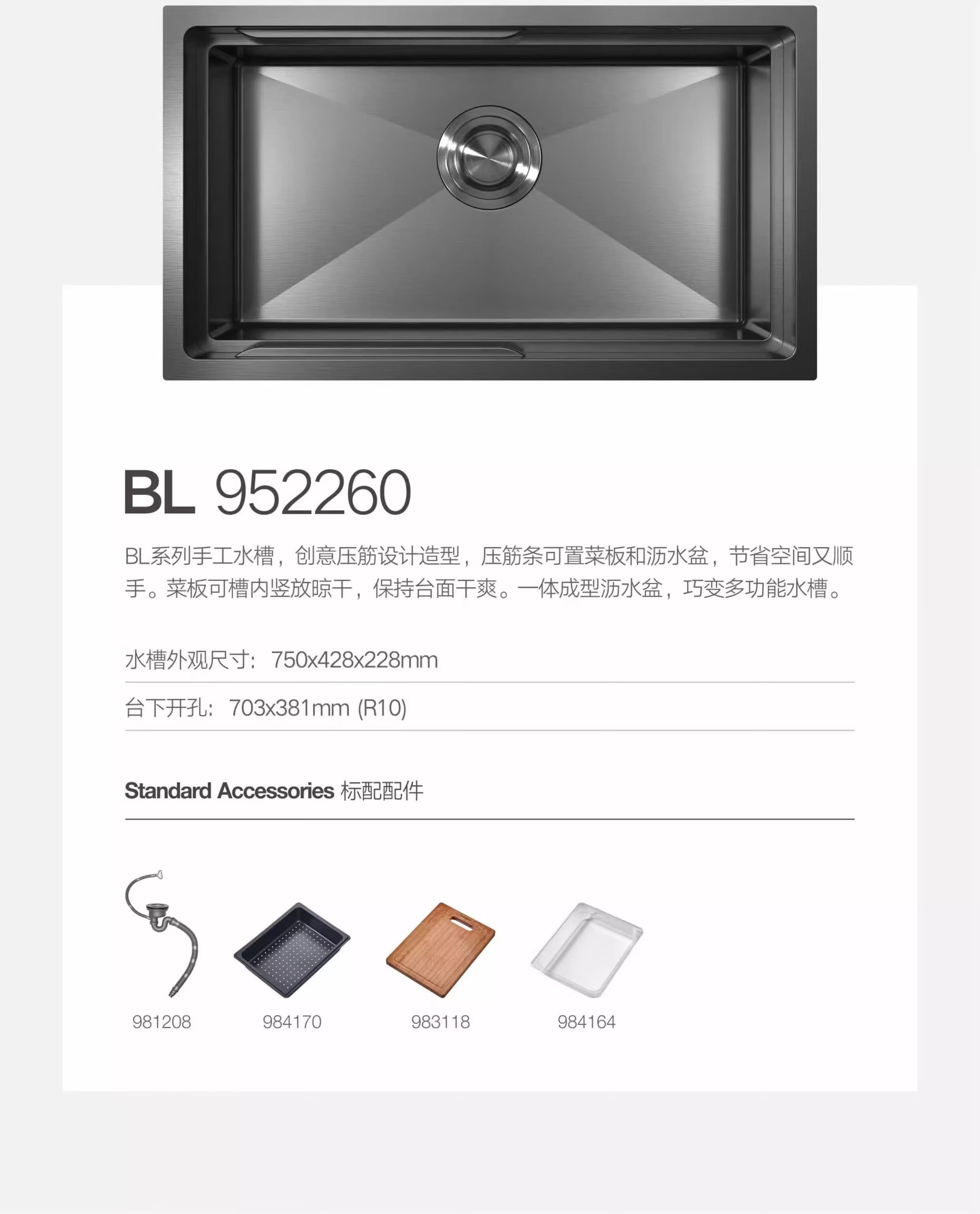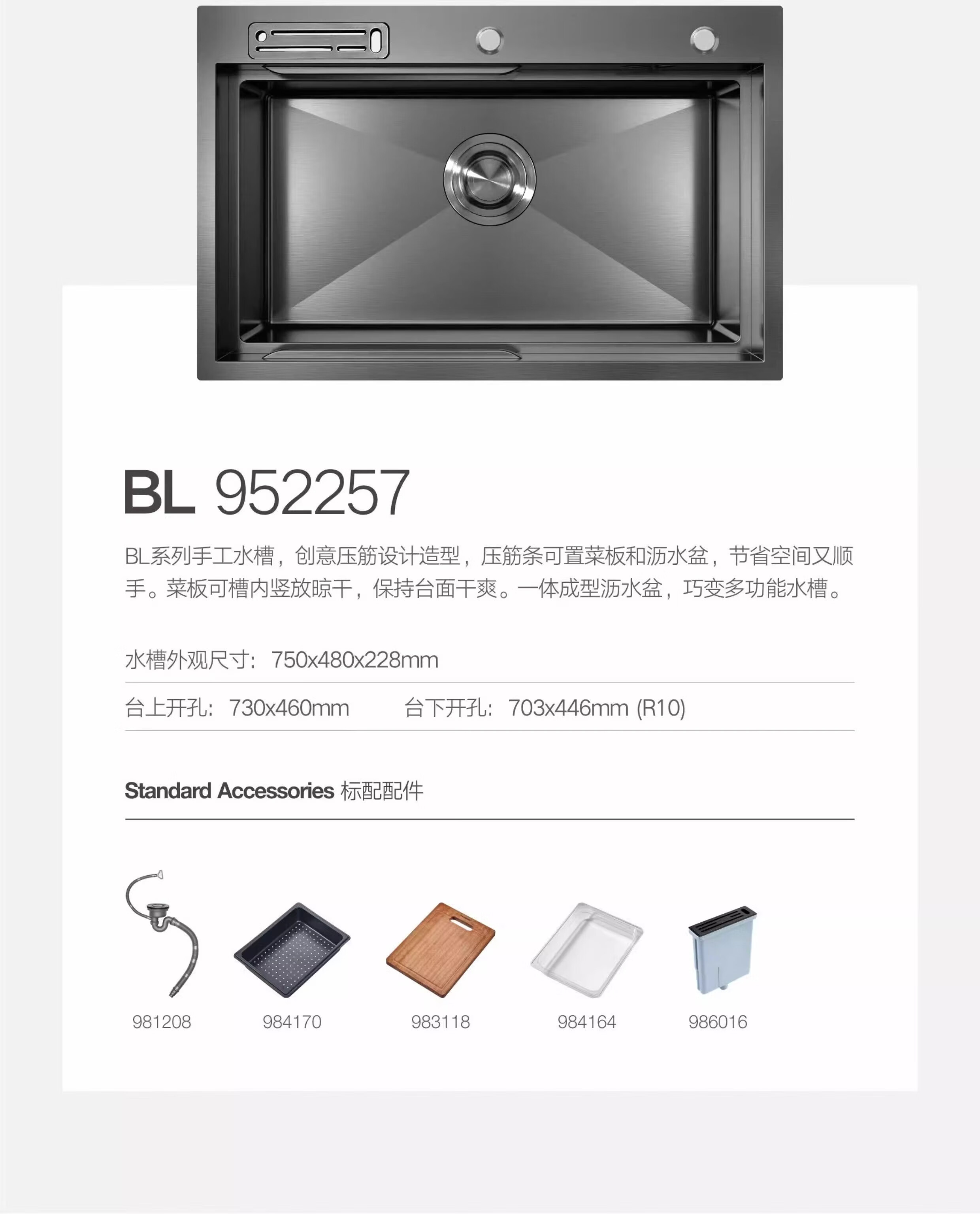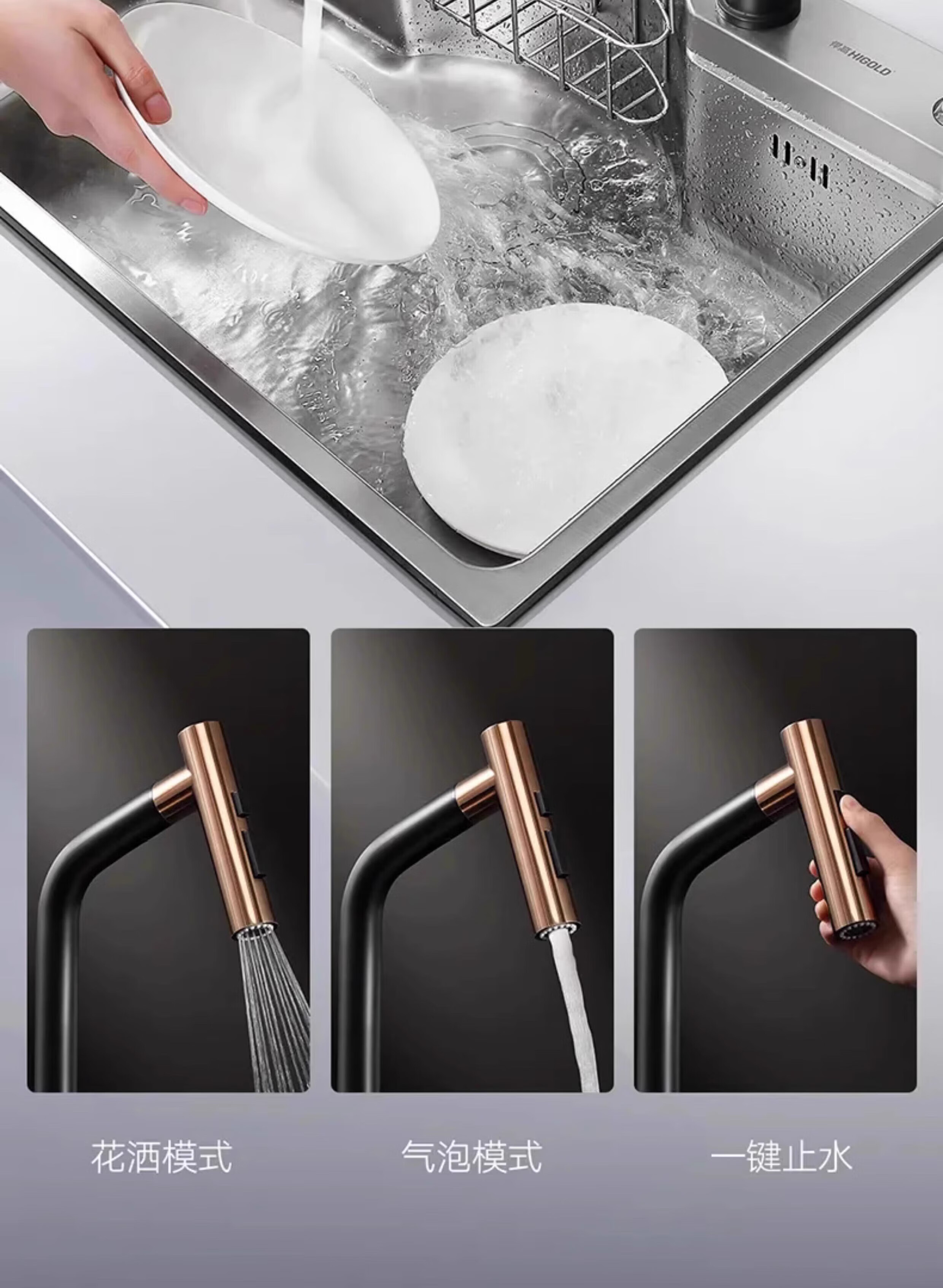 HIGOLD sink large single tank double step basin middle basin black titanium nano SUS304 stainless steel dishwashing sink menu basin BL952257 750-480