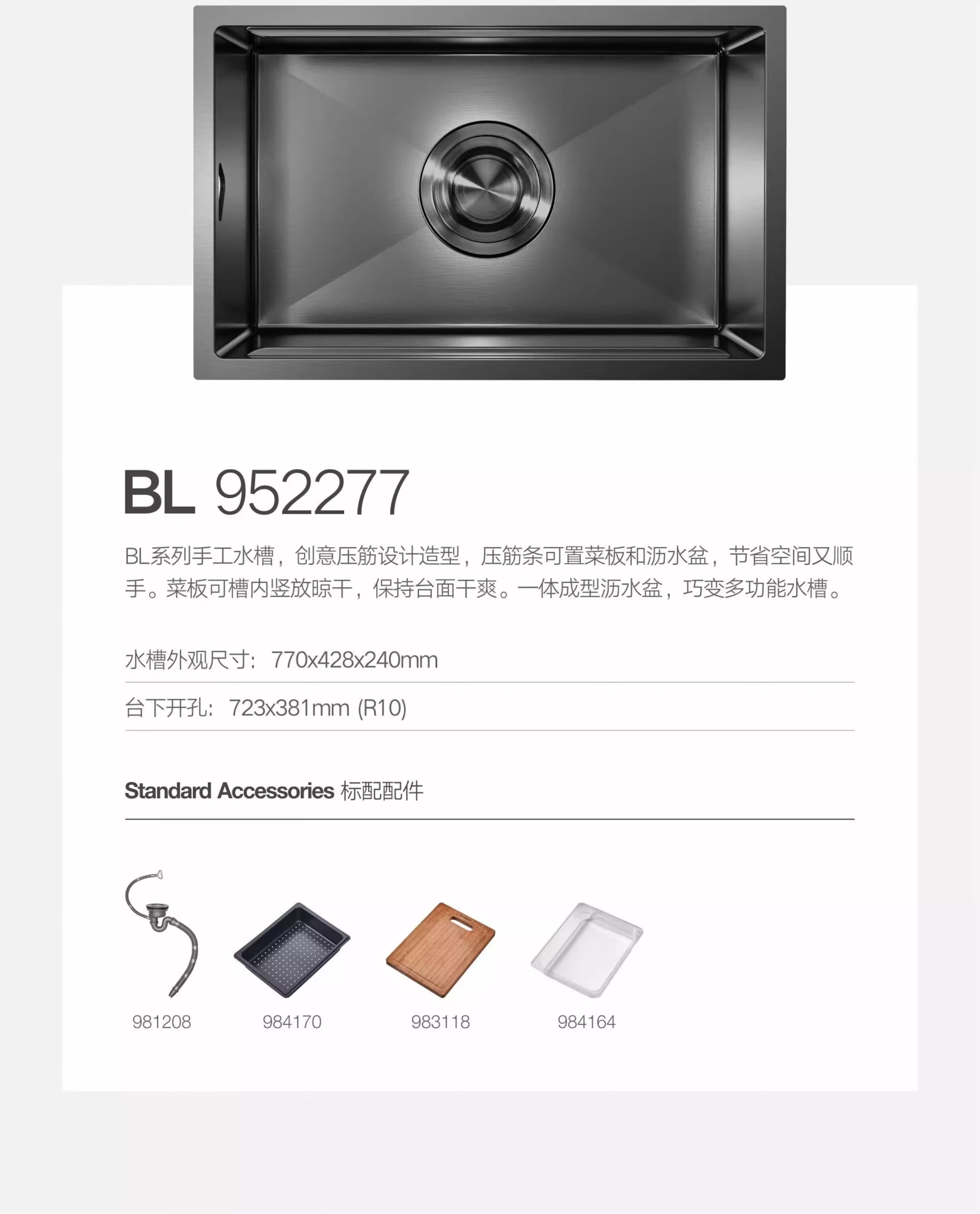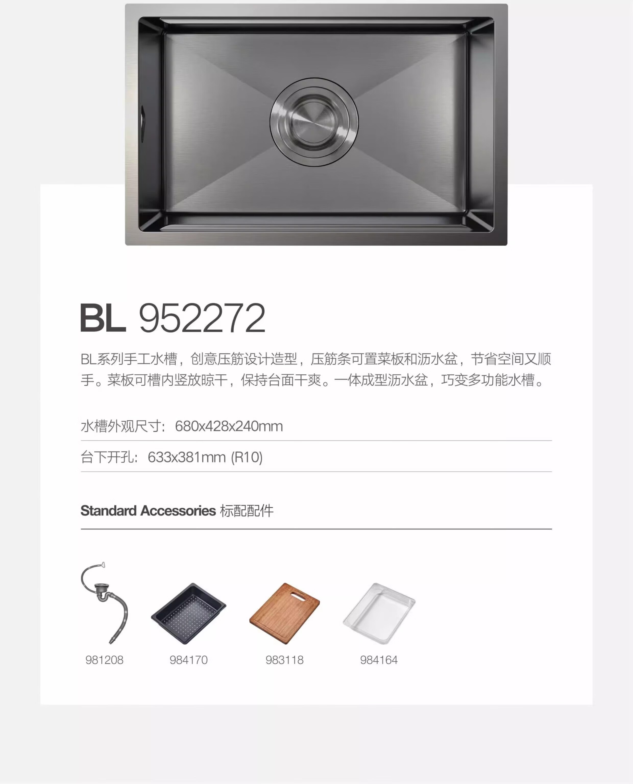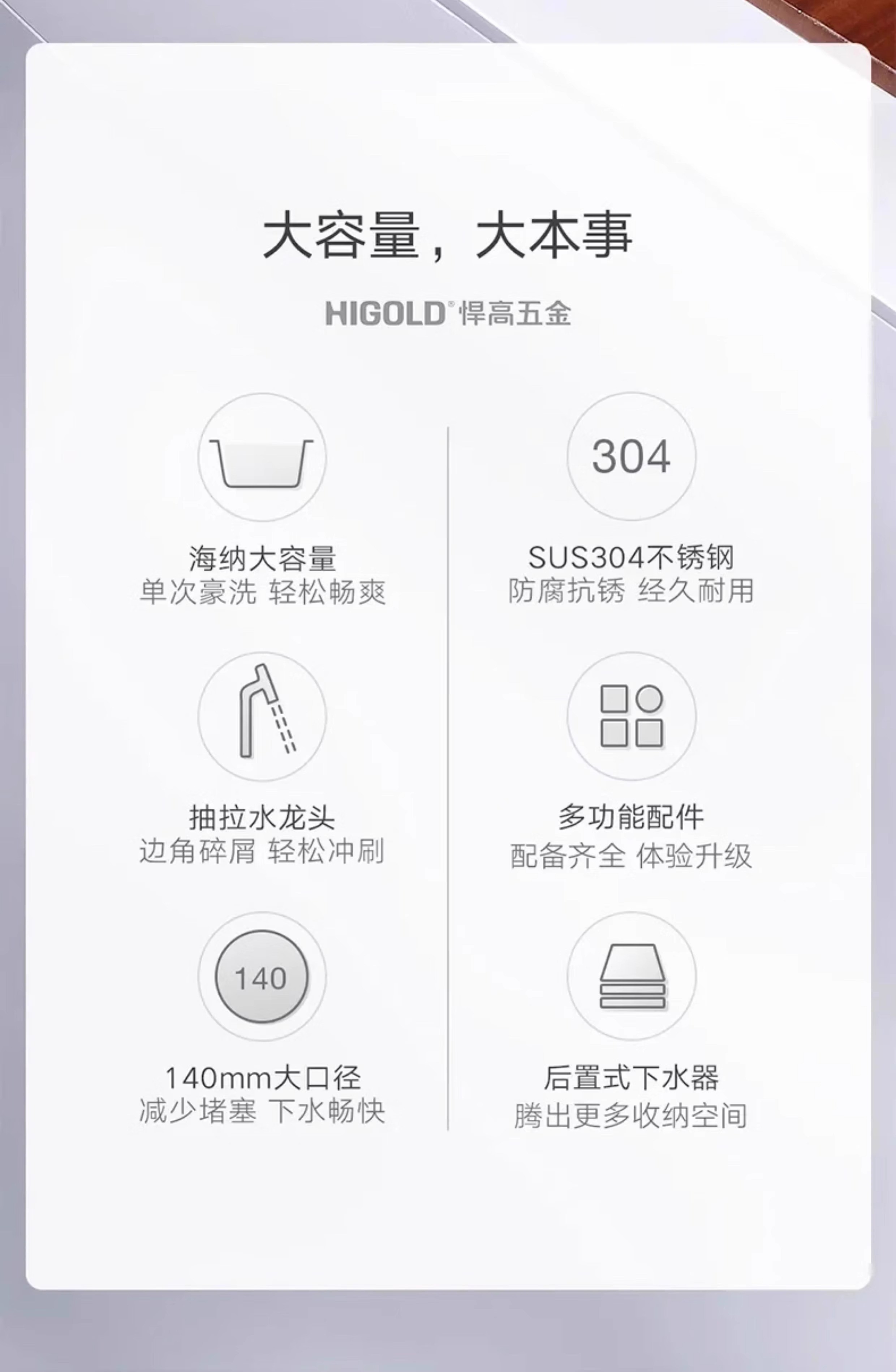 HIGOLD sink large single tank double step basin middle basin black titanium nano SUS304 stainless steel dishwashing sink menu basin BL952257 750-480