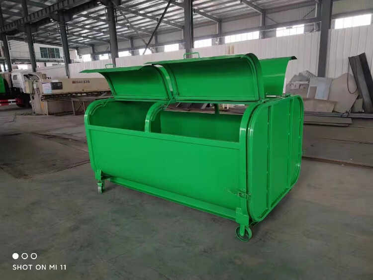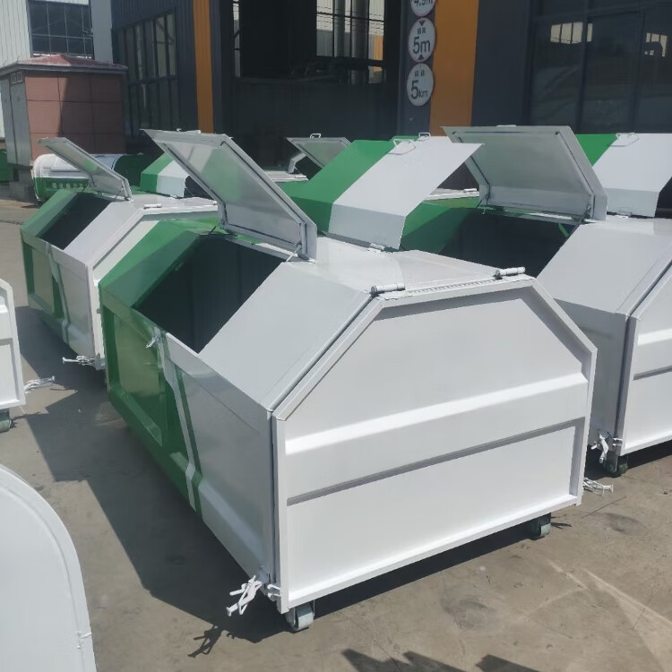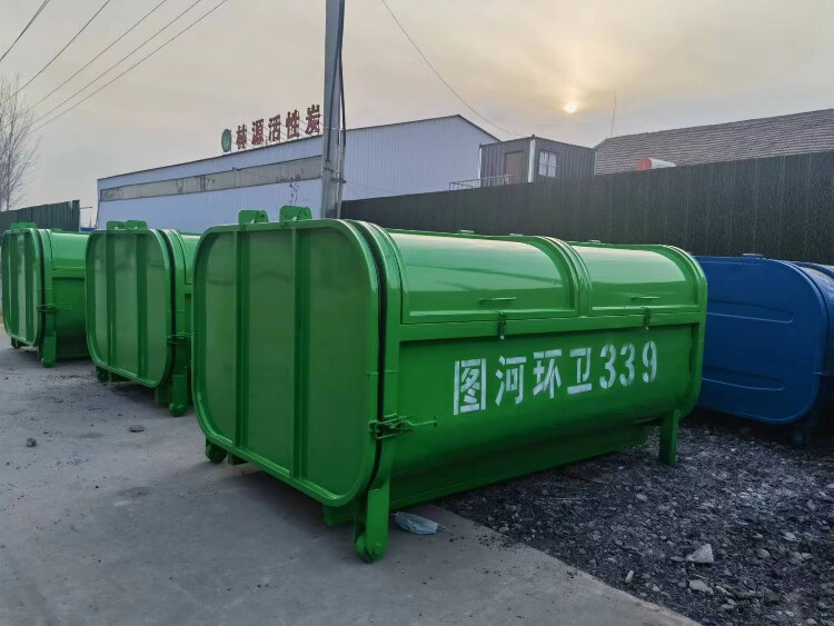 Hook-arm garbage bin outdoor 3 cubic meters 5 cubic meters 8 square sanitation property large trailer unloading garbage transfer box manufacturer special hook-arm garbage bin (two universal wheels)
