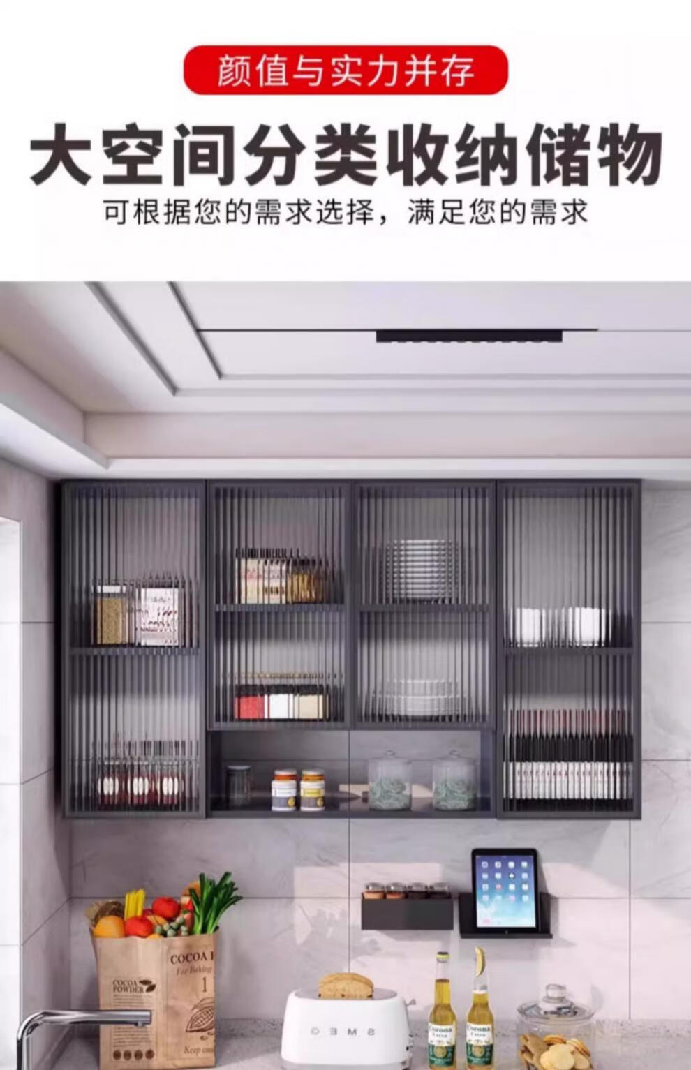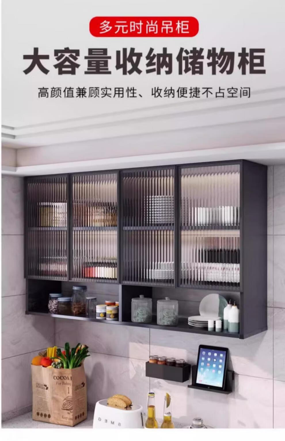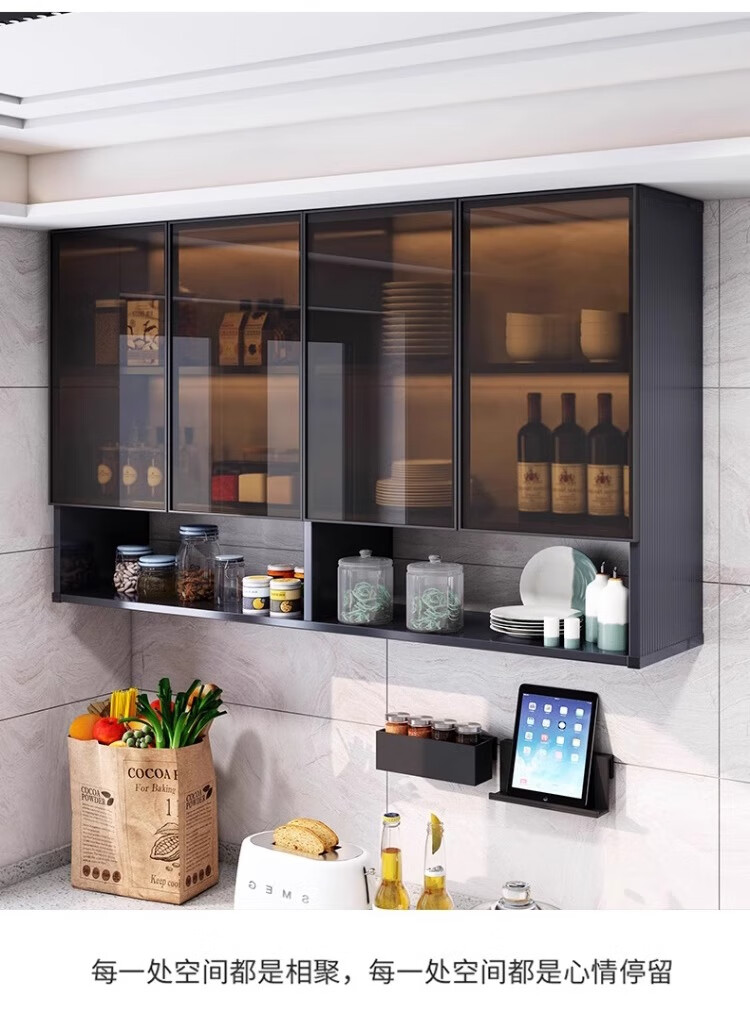 Fat Donglai same style kitchen cabinet kitchen all aluminum wall cabinet wall cabinet wall storage cabinet balcony closet bathroom toilet four doors length 140 depth 22 height 80cm