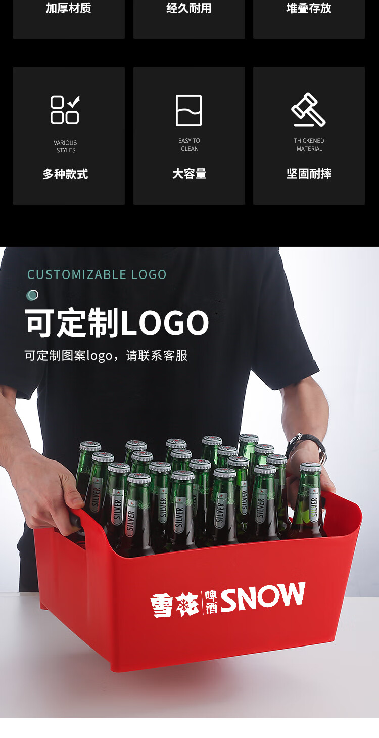 Xuanshi thickened rectangular bar beer bucket ice bucket beer basket with ice cube beer frame beer rack ktv wine basket square ice bucket black large