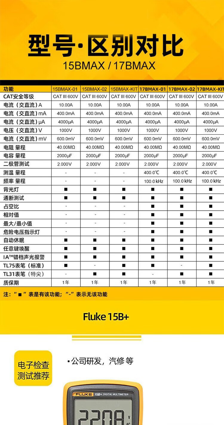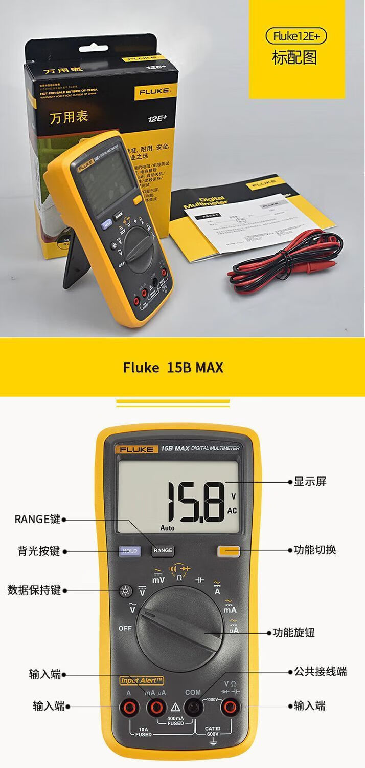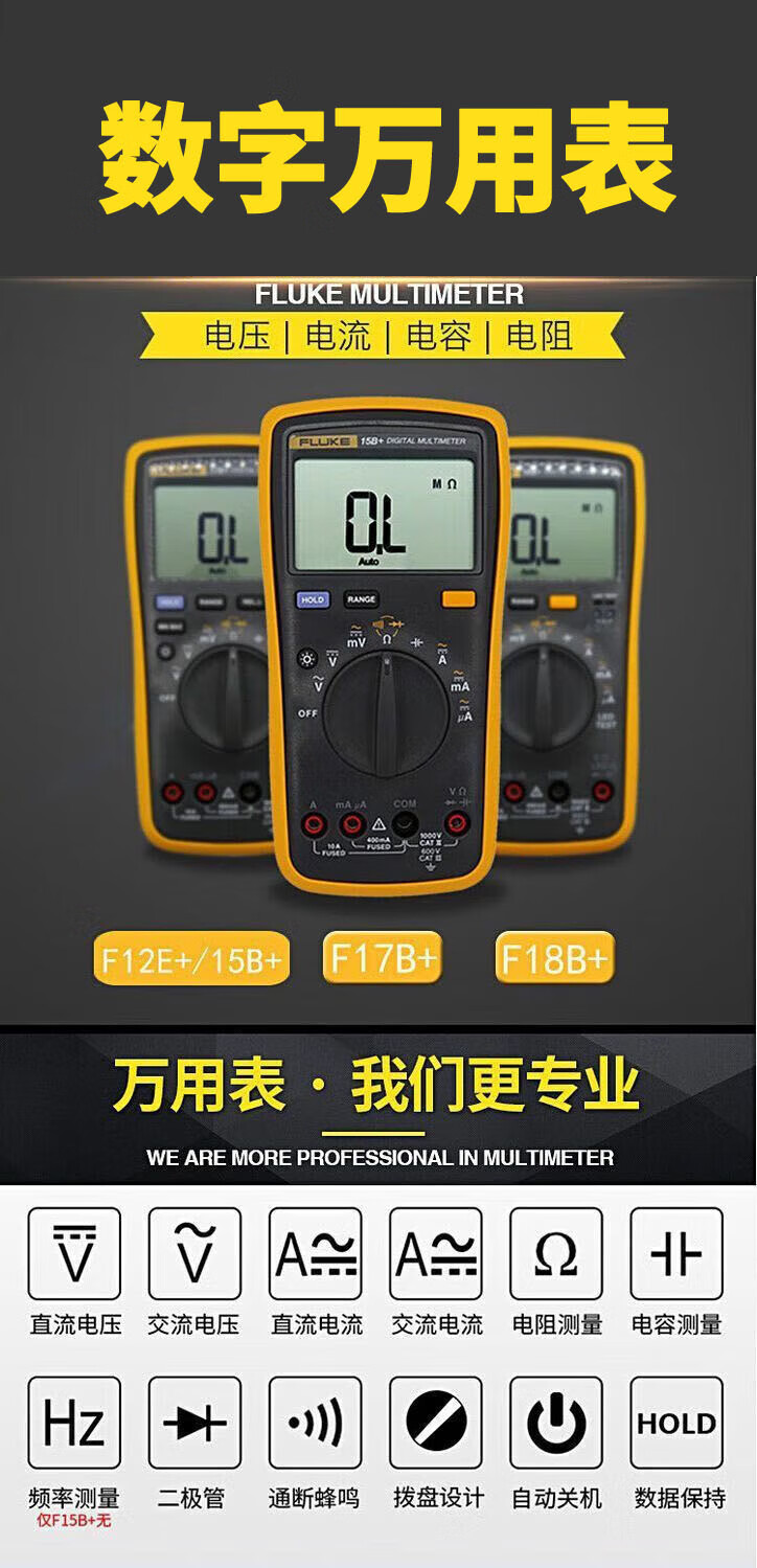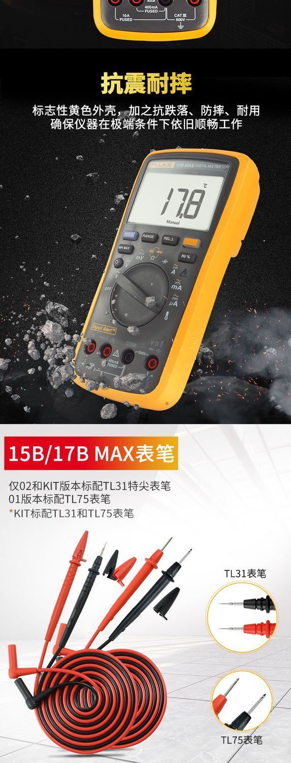 Fluke digital multimeter F15B+/F17B+/F18B+/12E+/F107/F101 high-precision electrician special burn-proof F15B MAX-01 (standard pen) + free invoicing
