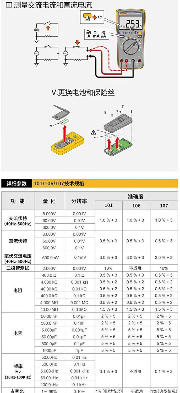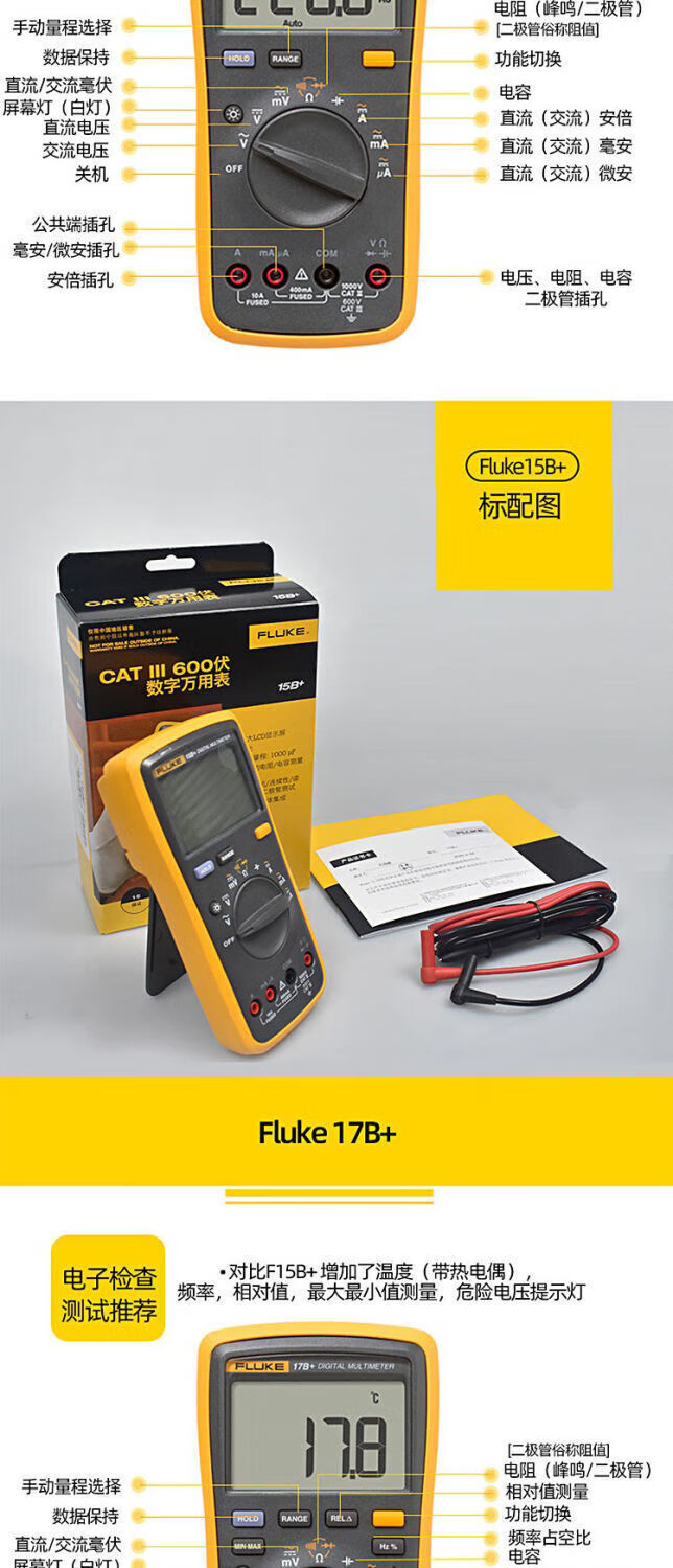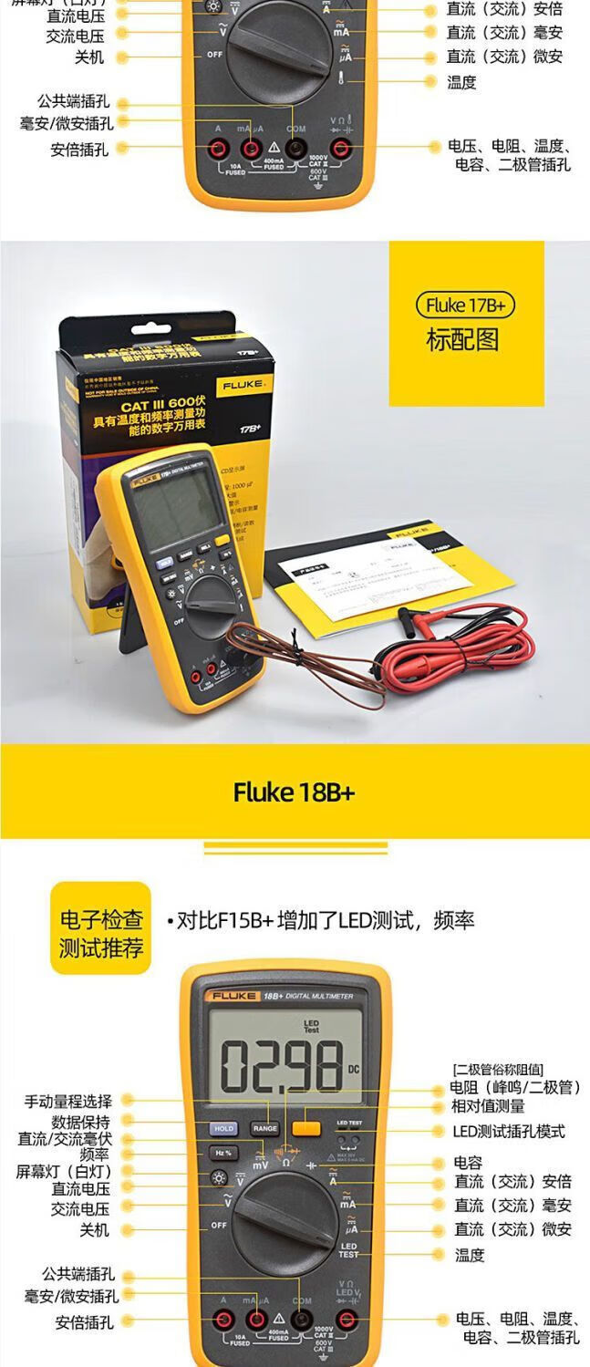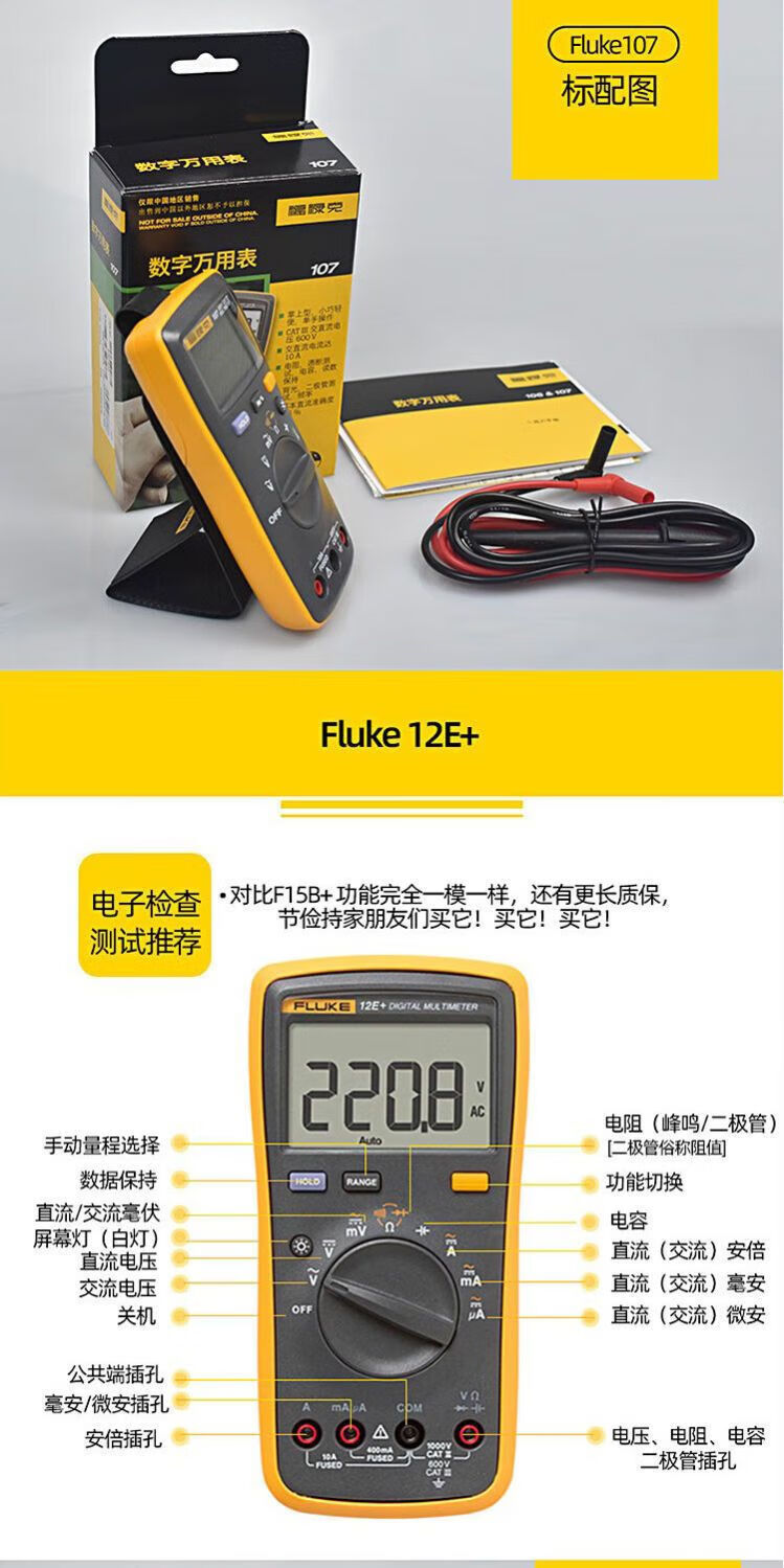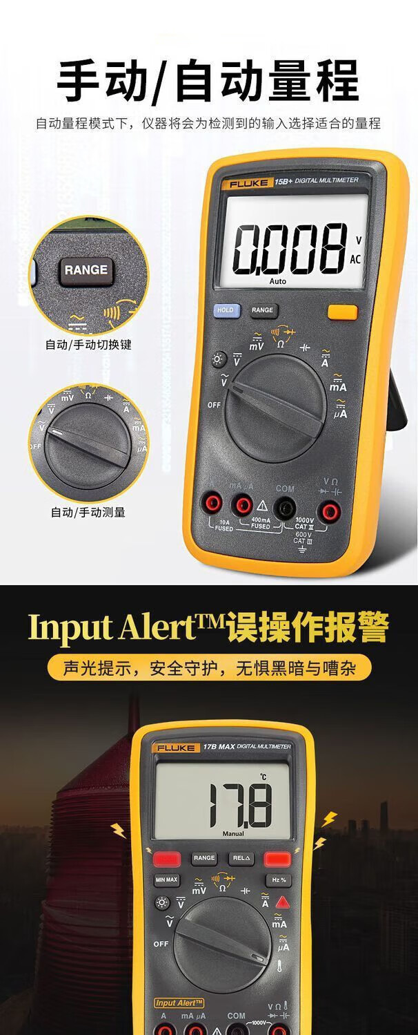 Fluke digital multimeter F15B+/F17B+/F18B+/12E+/F107/F101 high-precision electrician special burn-proof F15B MAX-01 (standard pen) + free invoicing