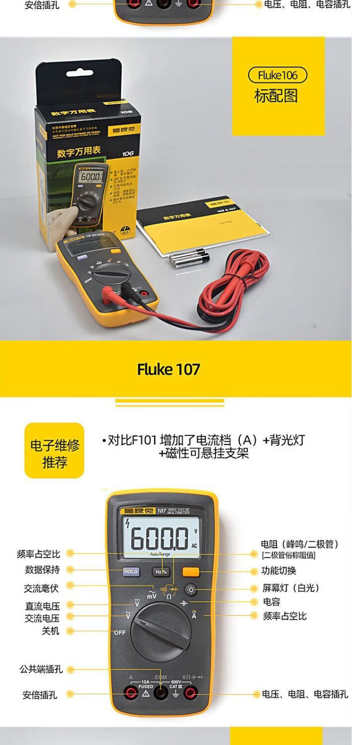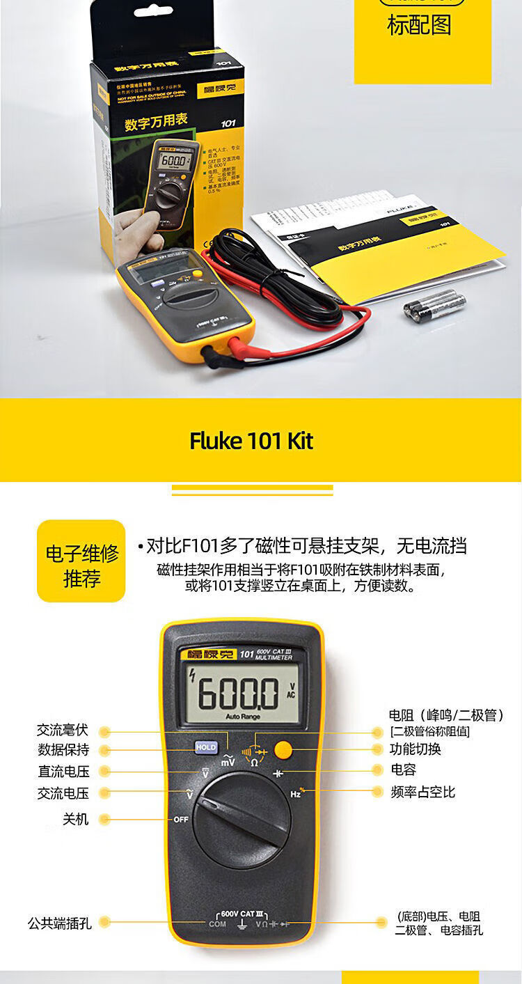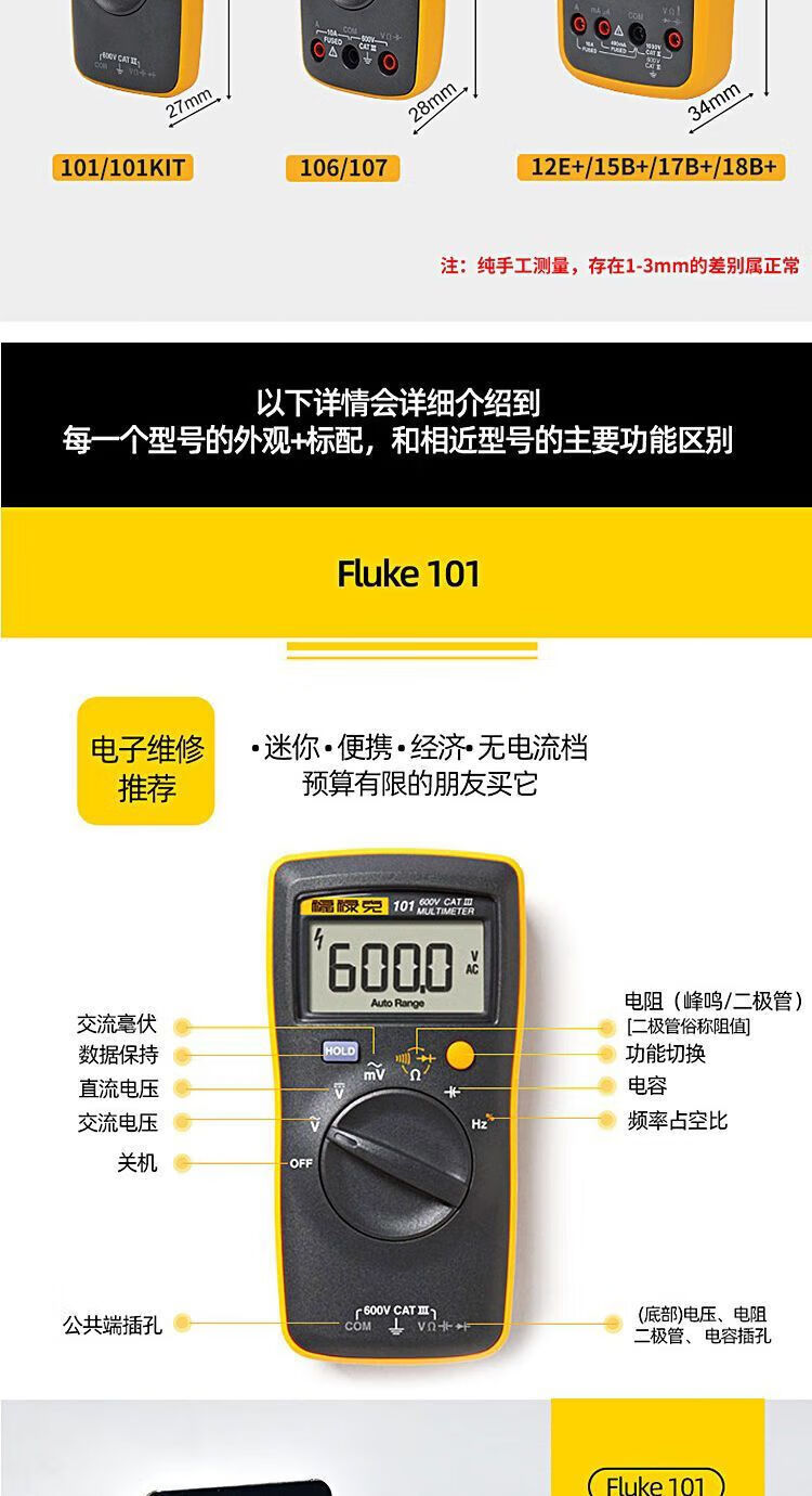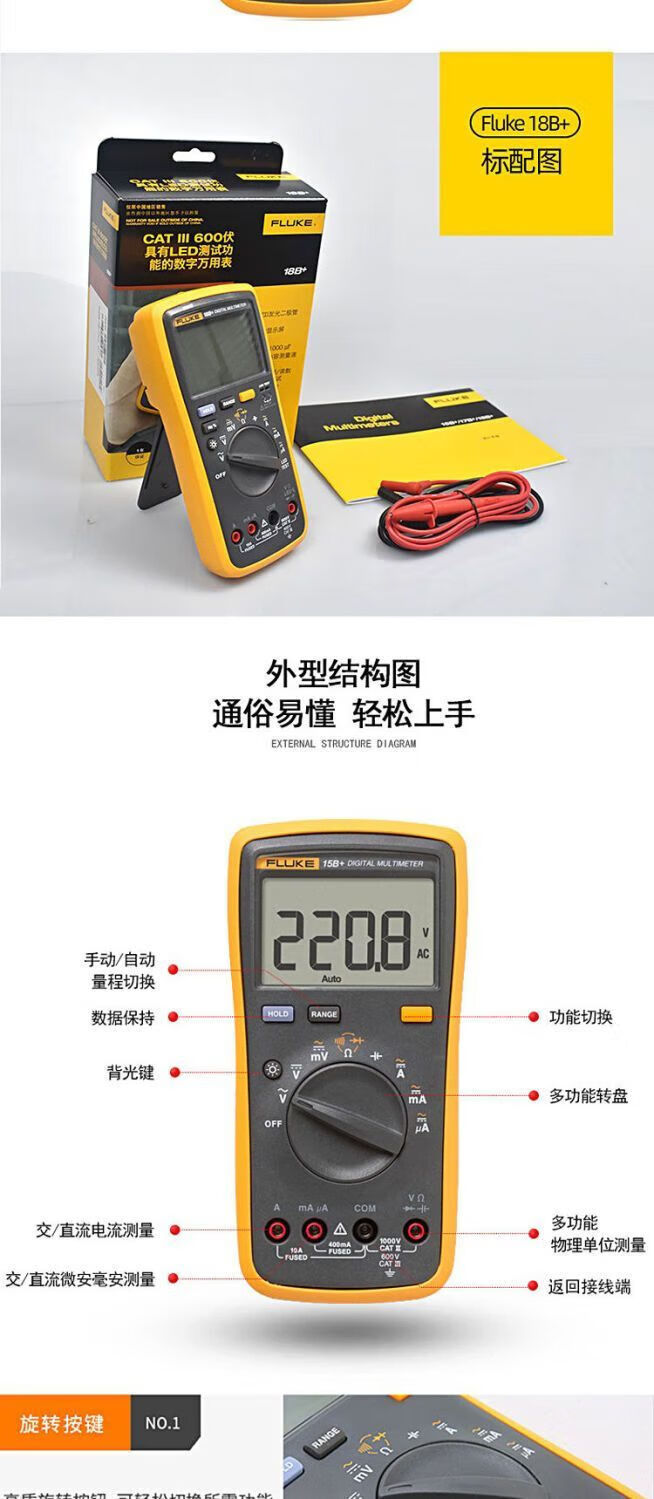 Fluke digital multimeter F15B+/F17B+/F18B+/12E+/F107/F101 high-precision electrician special burn-proof F15B MAX-01 (standard pen) + free invoicing
