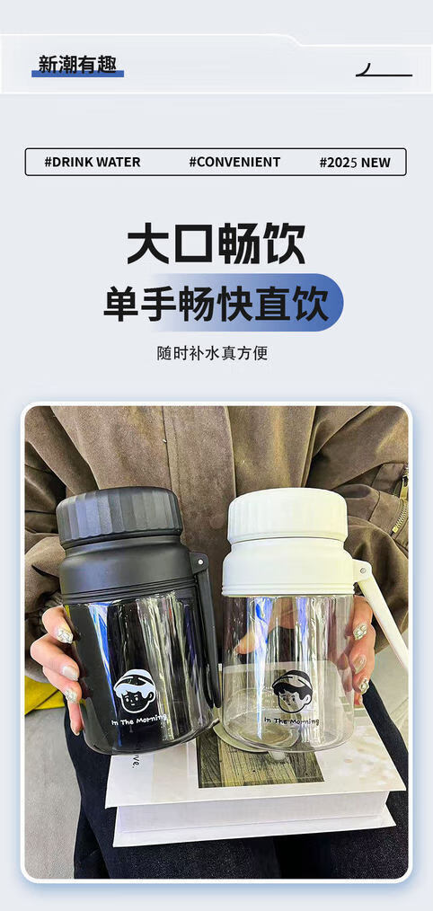 Ton ton bucket simple water cup for women with tea separator large capacity cup high appearance summer portable student plastic kettle black 1000ml