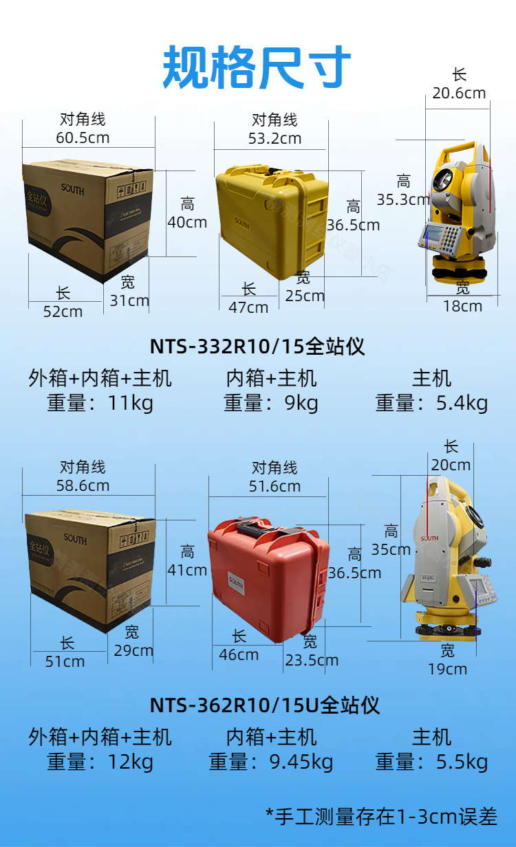 Southern Surveying and Mapping Southern Total Station 332R10/362R10U/442R10U/332R15B high-precision prism-free measuring instrument Southern Total Station NTS-362R10U