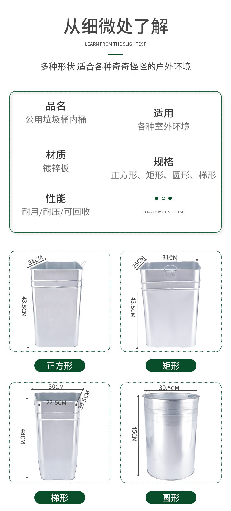 Shantou Lincun *****Outdoor trash can liner peel box thickened stainless steel iron barrel drum inner barrel galvanized plate square storage custom square bucket length 30 width 24.5 height 43