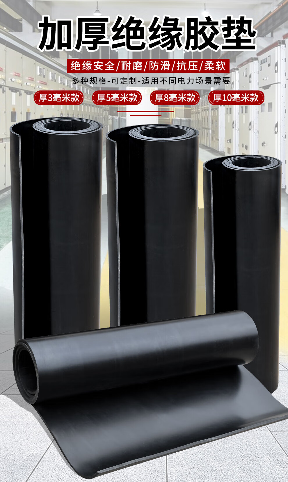 Qilu Anran thickened high voltage insulating rubber mat 10kv6kv0.4kv insulating mat floor mat distribution room electrical room rubber mat black industrial distribution room rubber sheet high temperature rubber mat workbench rubber mat 0.4KV thick 3mm wide 1 meter long 5 meters