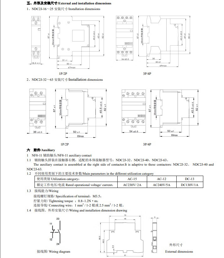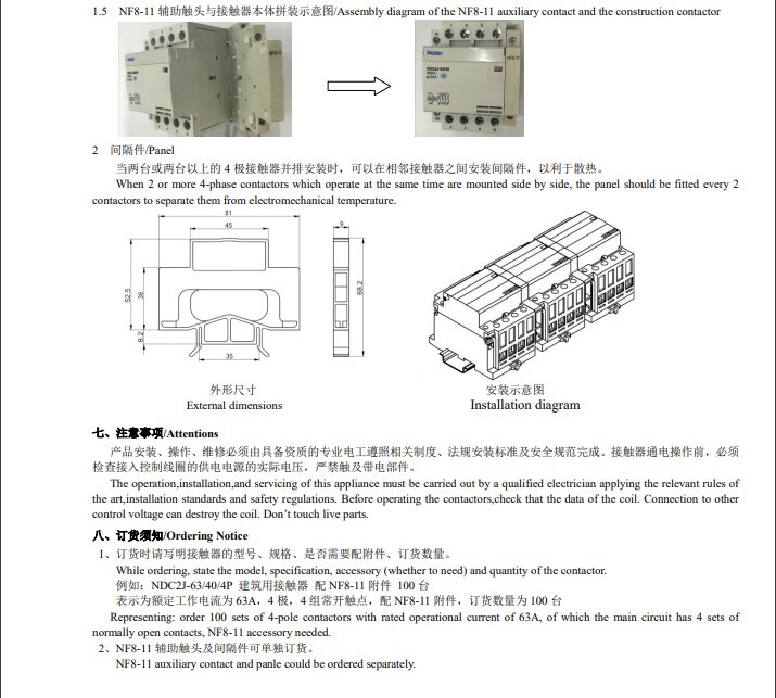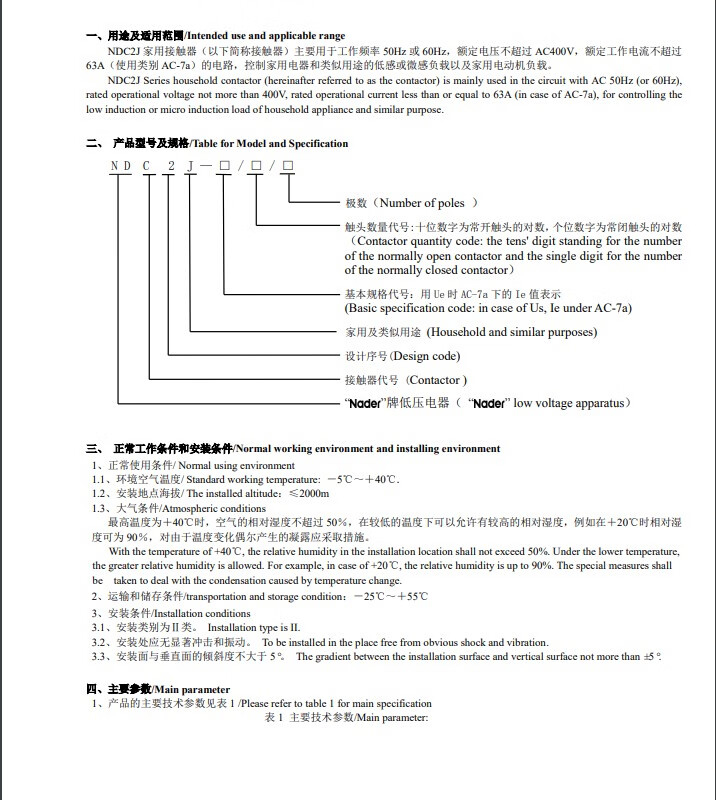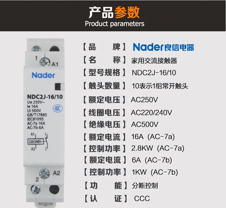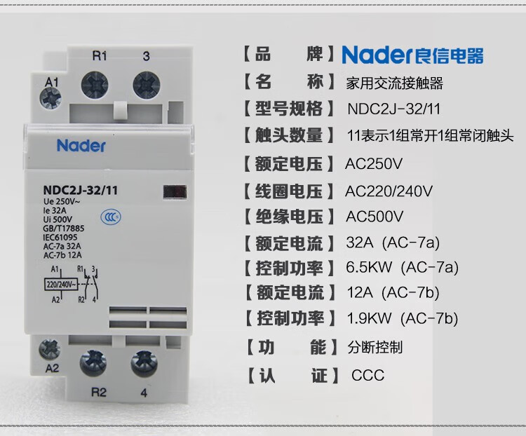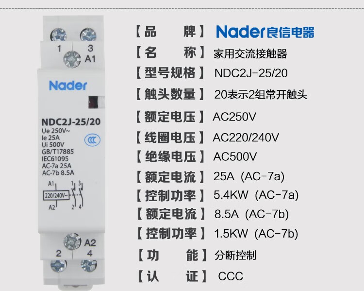 Liangxin 10A 220V household building AC contactor Nader Electric *NDC2J-25/20*