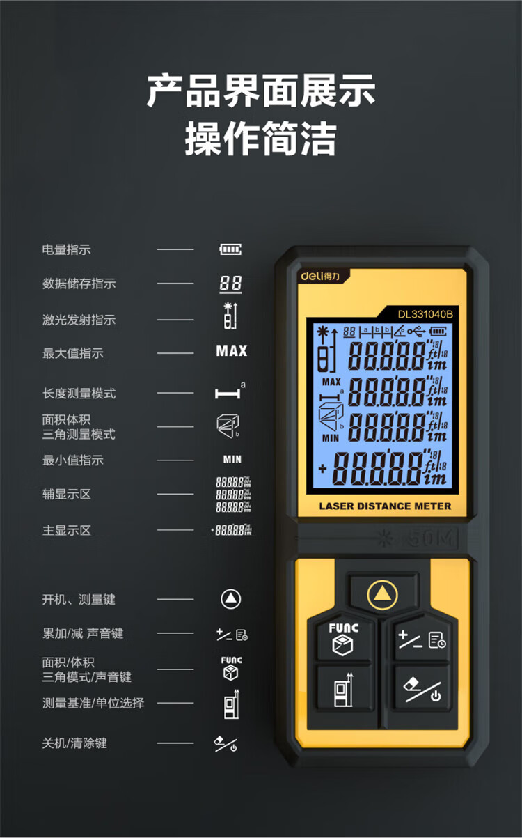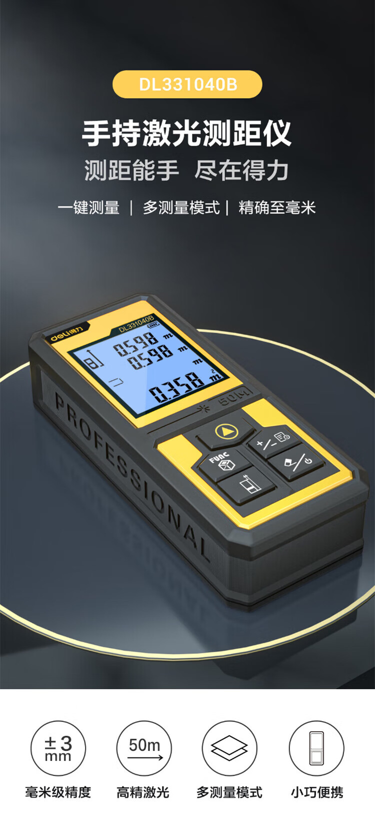 Deli handheld laser rangefinder high-precision electronic ruler infrared room measuring instrument indoor measuring ruler instrument 50 meters laser rangefinder DL331040B