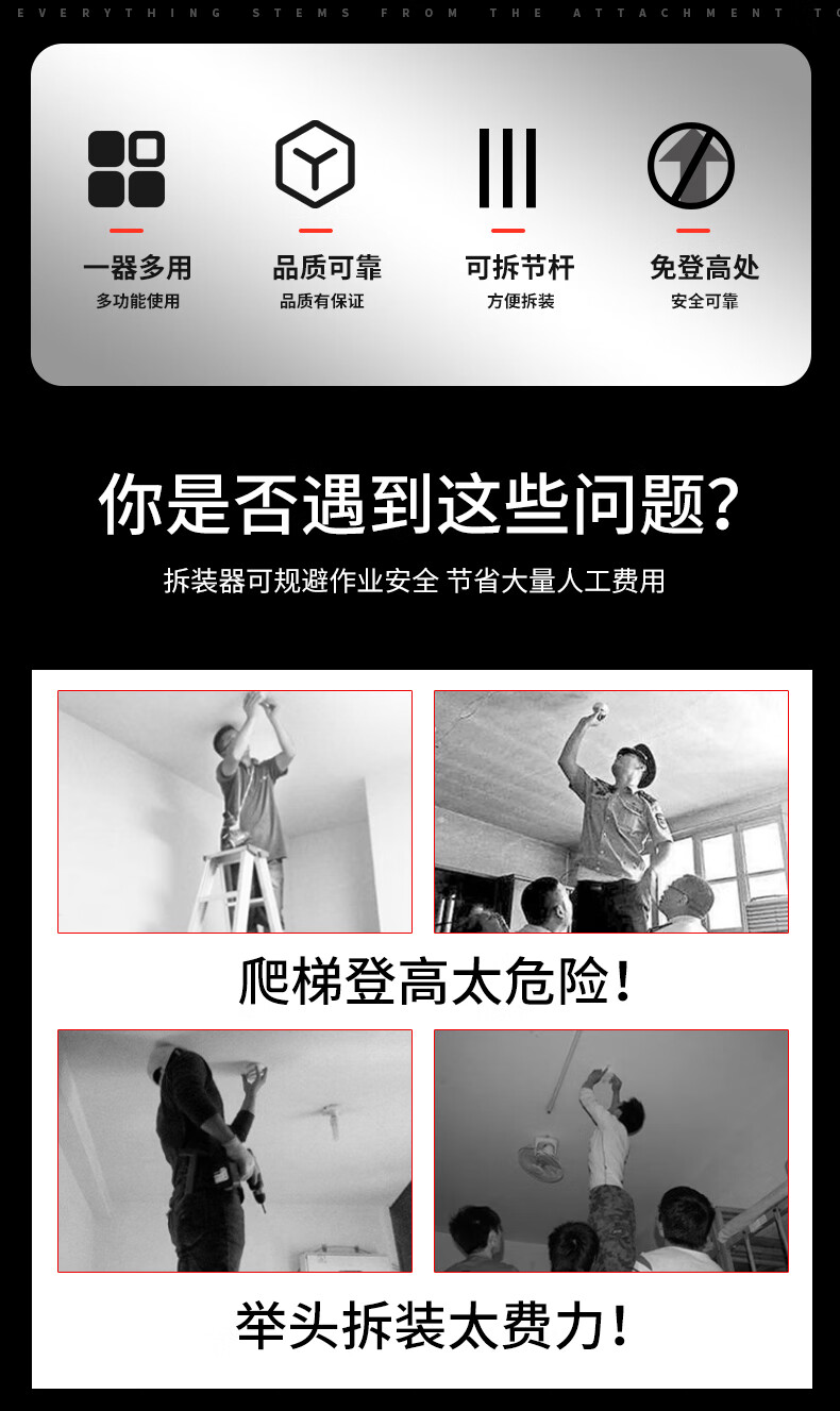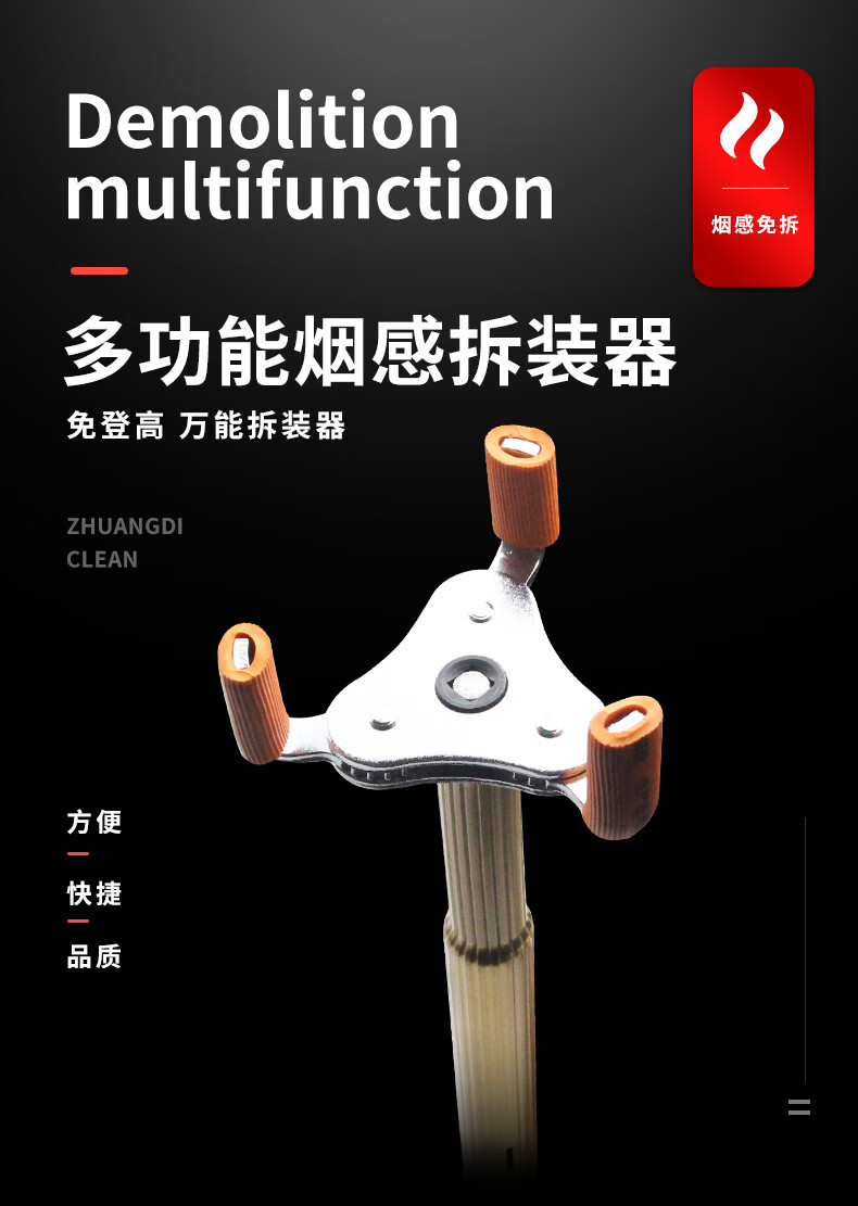 Tianmiaomiao multi-functional smoke detector disassembly and assembly artifact fire temperature alarm detector without climbing height disassembly and installation rod 3.3 meters high hardness titanium alloy rod + claw set