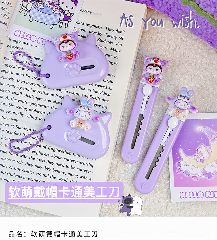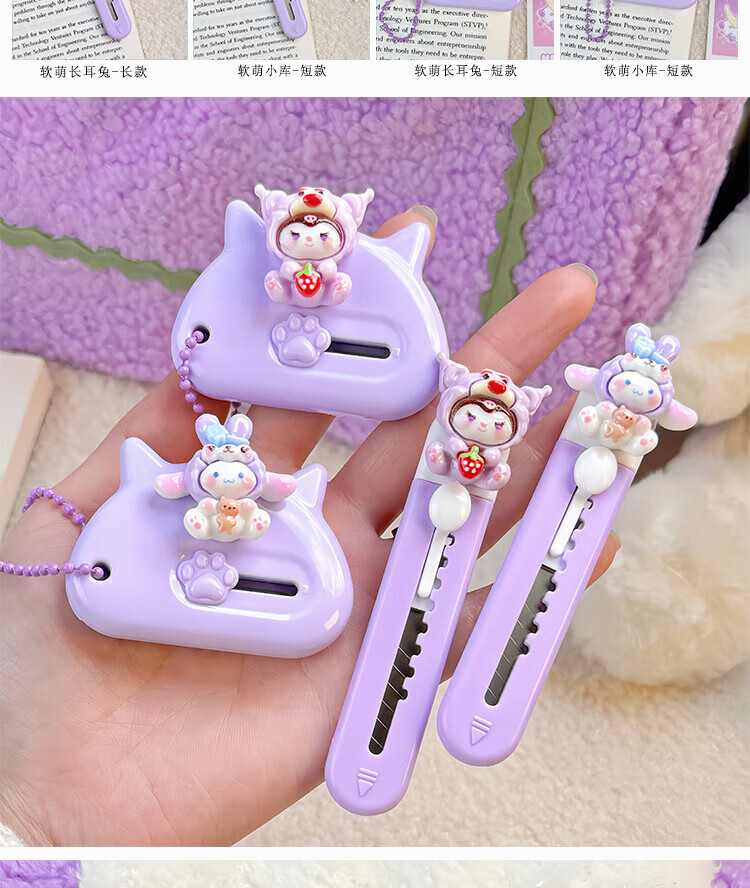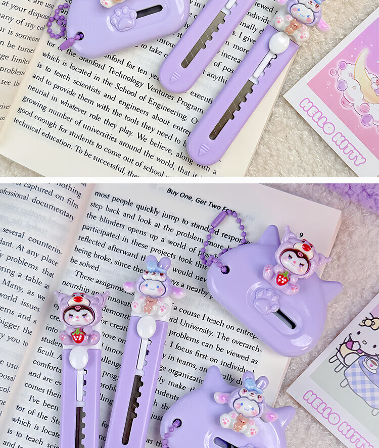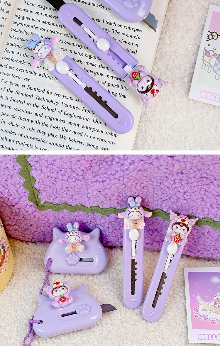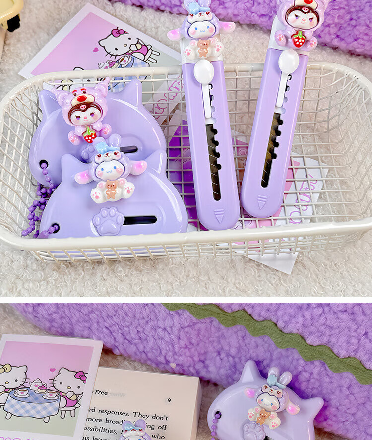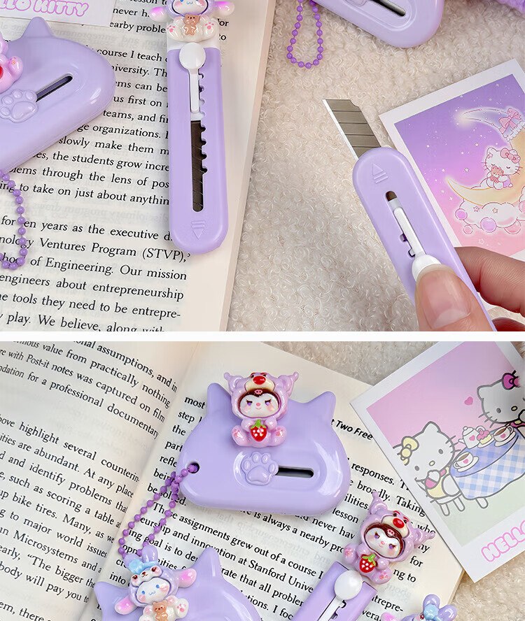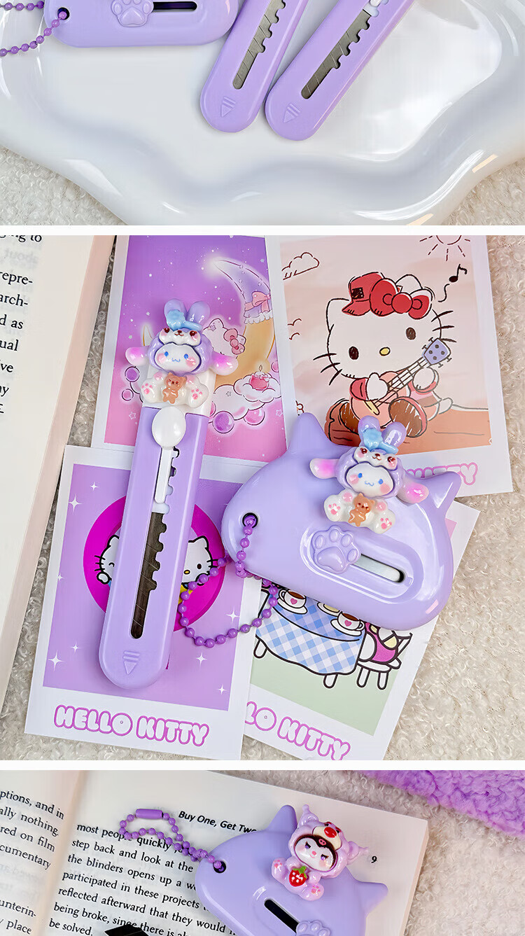 Hellokitty utility knife portable express box opener office paper knife student handmade knife pink soft cute cat short 1 piece