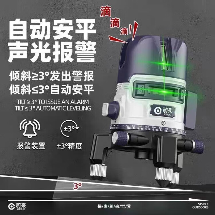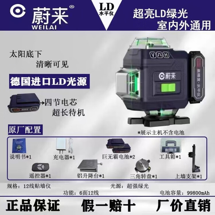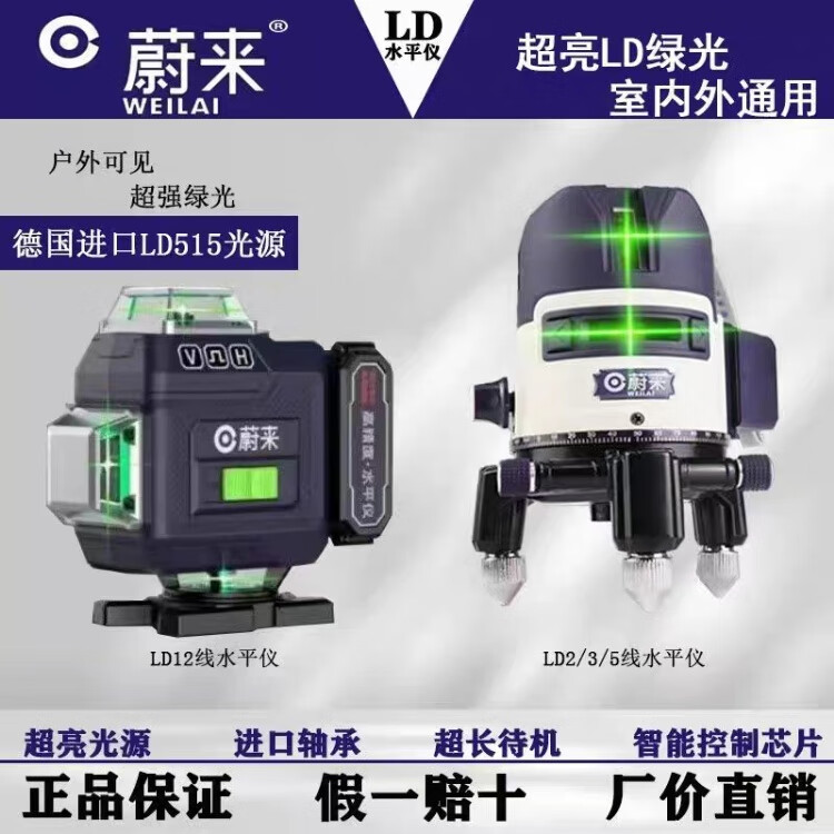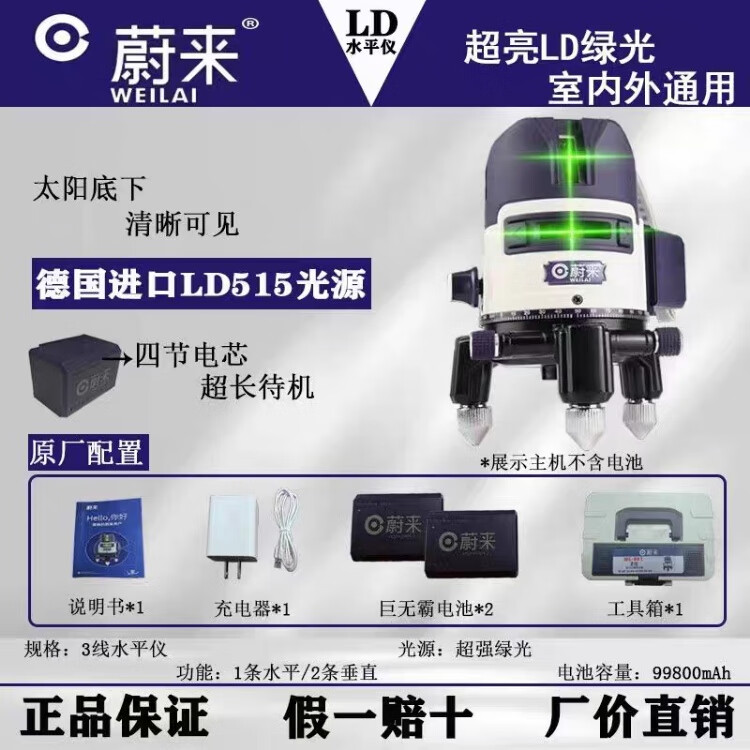 NIO 5-line blue-green light level outdoor strong light laser line marker infrared strong light automatic leveling outdoor NIO super-strong green light level 5-line two batteries and one charger