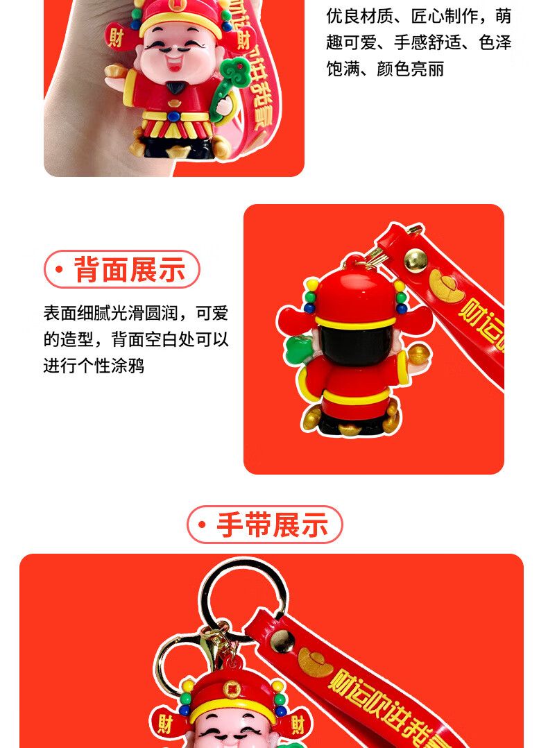 God of Wealth's new creative keychain to attract wealth and treasure pendant doll car couple key chain pendant gift God of Wealth 1 piece