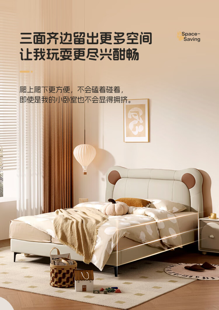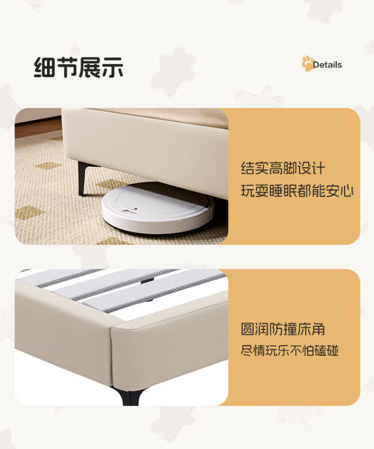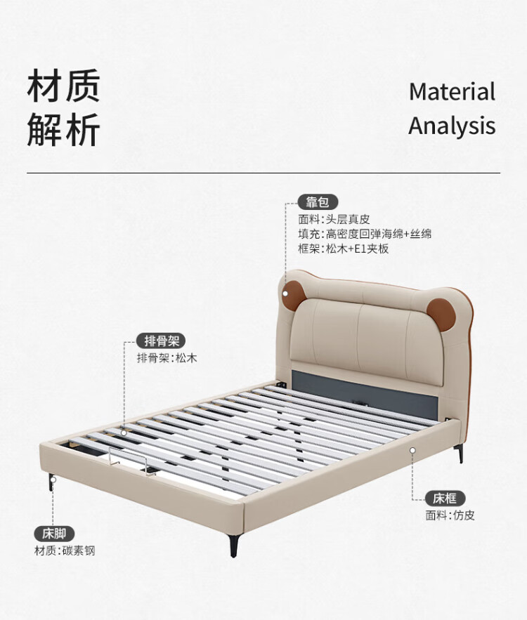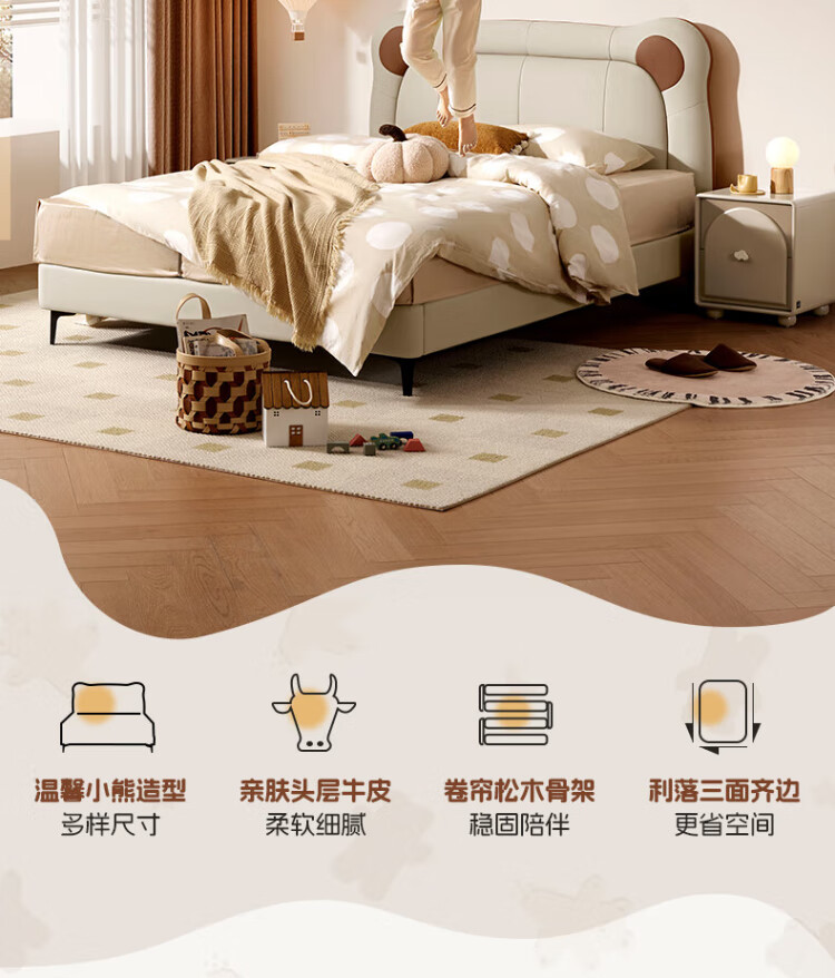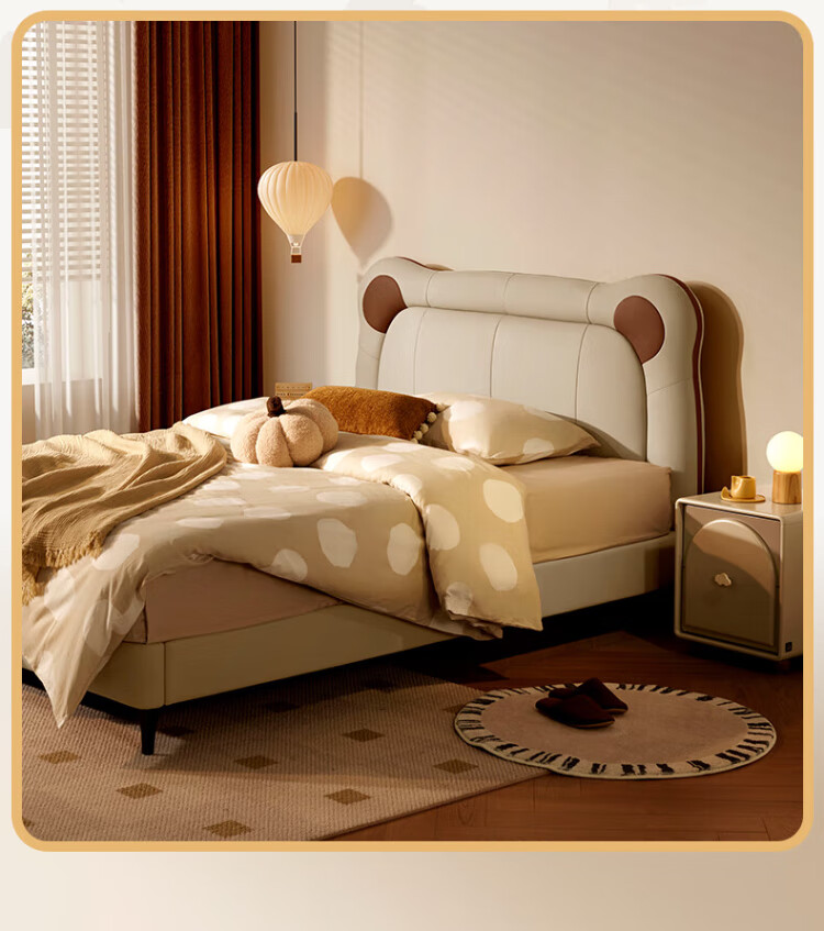 Gujia Home Government Subsidy Cream Style Cowhide Bedroom Warm Hug Bear Soft Bag Bed Boys and Girls Leather Bed 8552 Little Elephant Gray High Leg Leather Bed 1800*2000