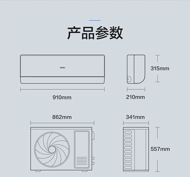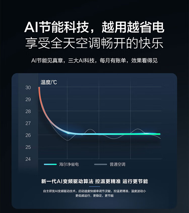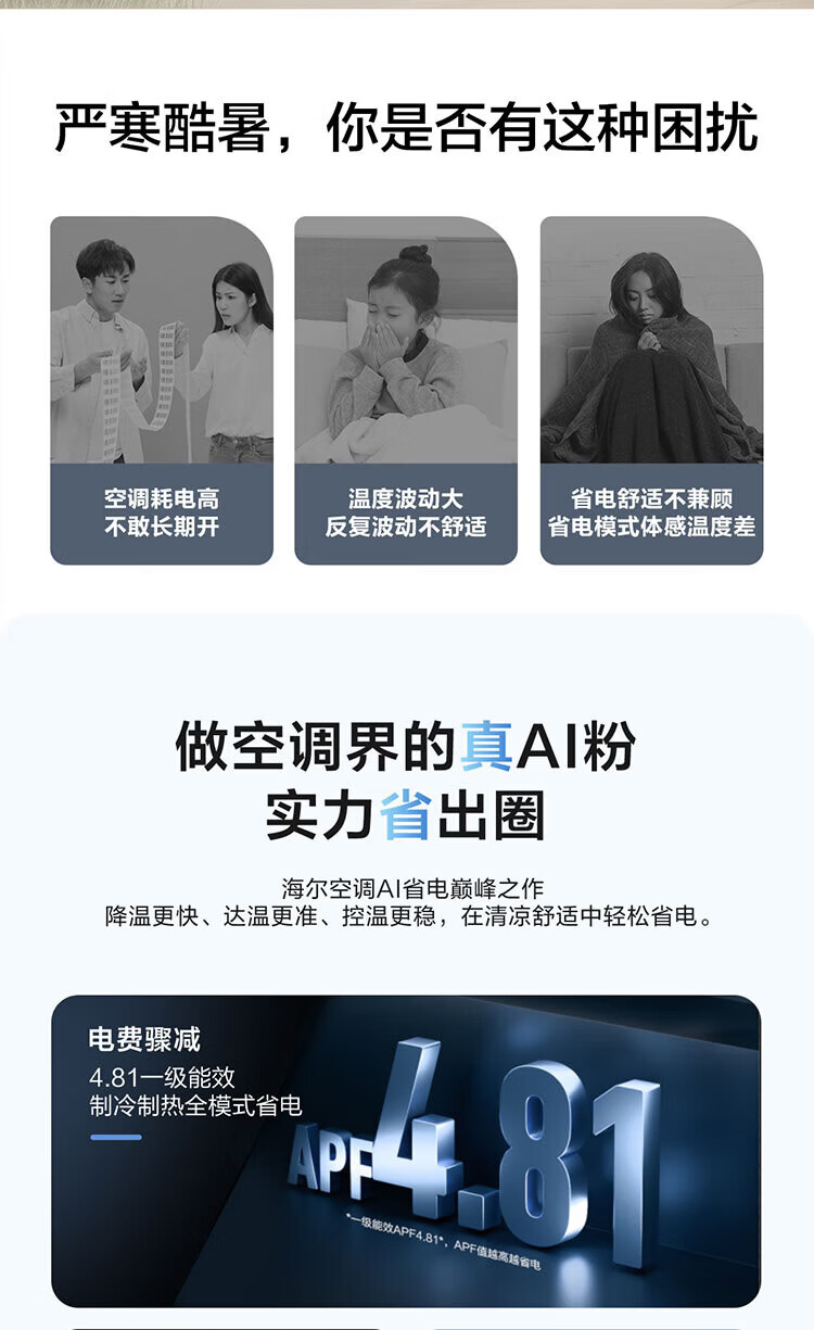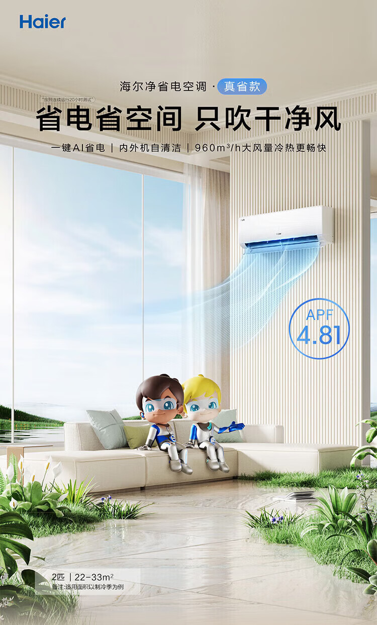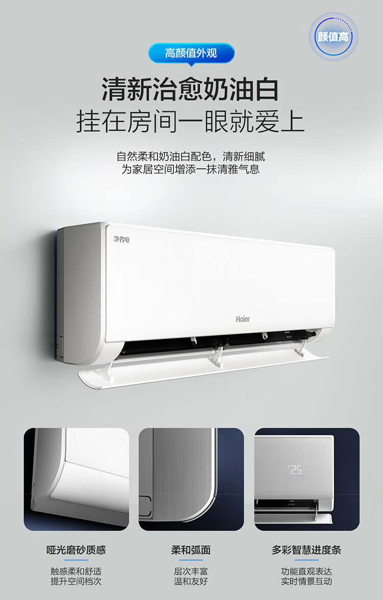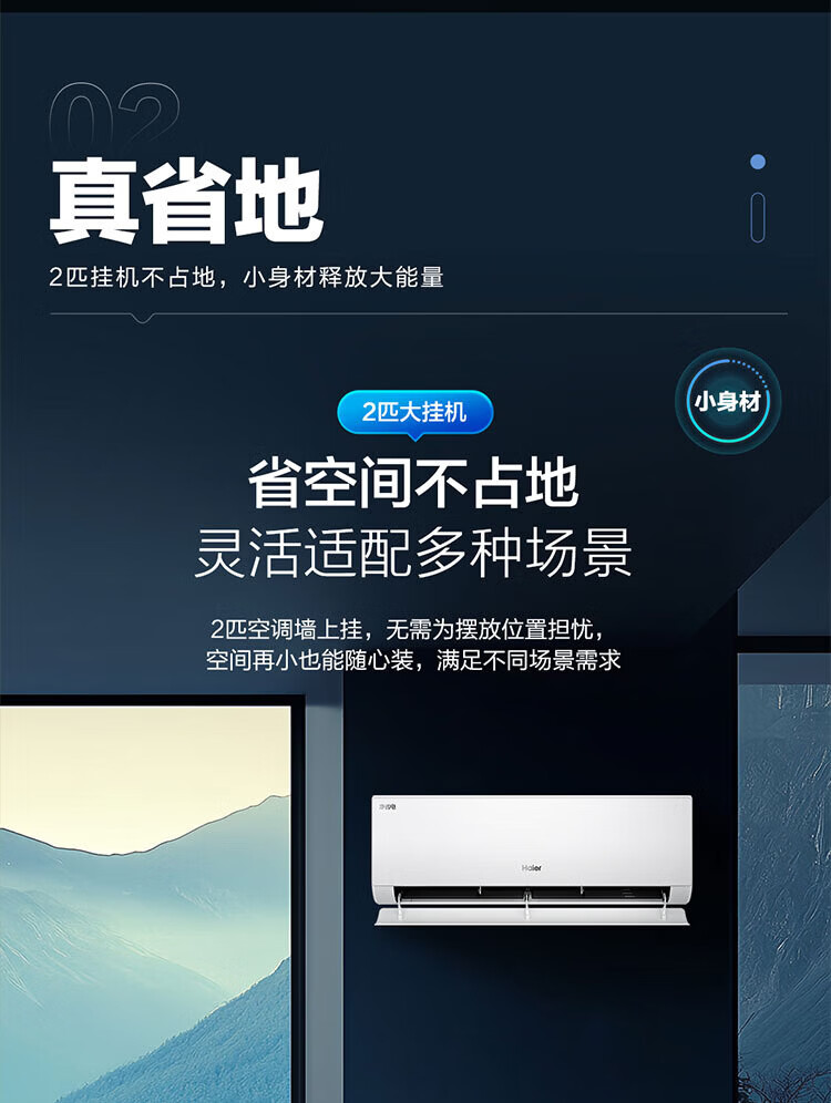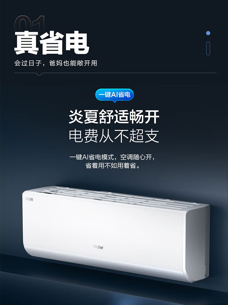 Haier air conditioner net power saving 2 hp large hanging machine new level of energy efficiency double row copper tube energy saving frequency conversion bedroom heating and cooling energy saving wall-mounted living room appliances trade-in net power saving 2 hp AI energy saving save power and space