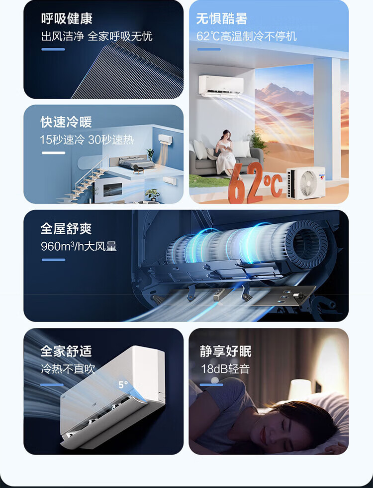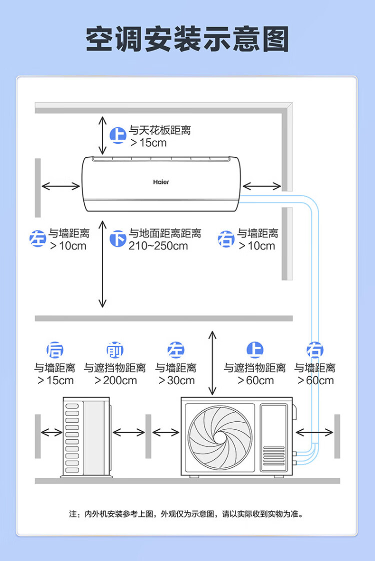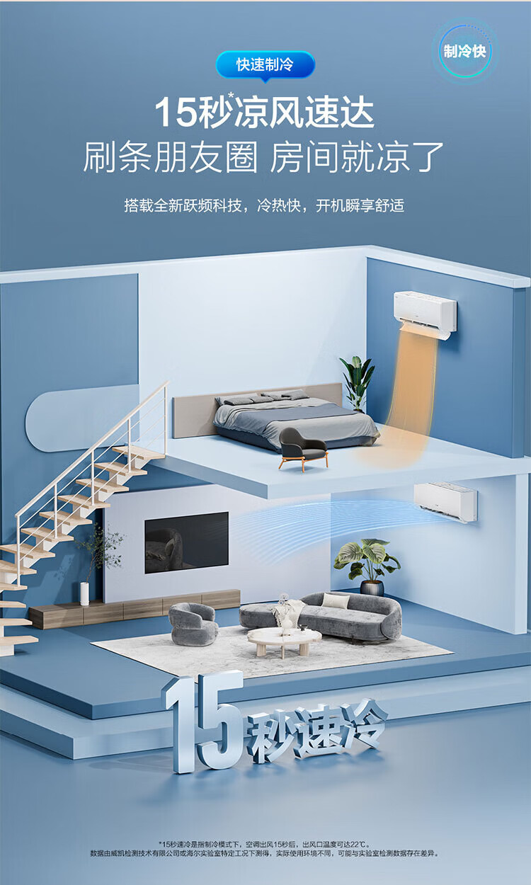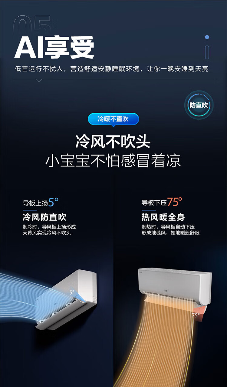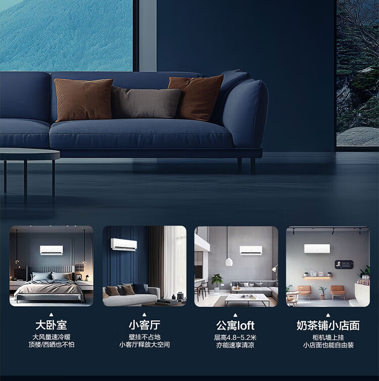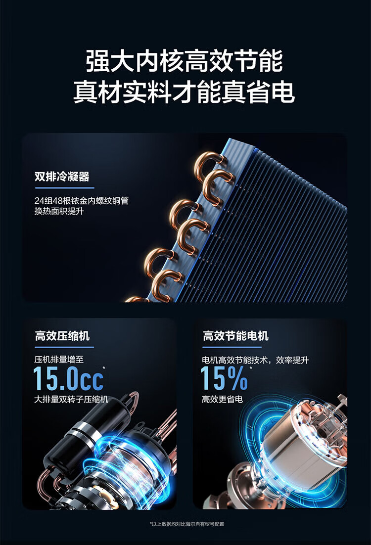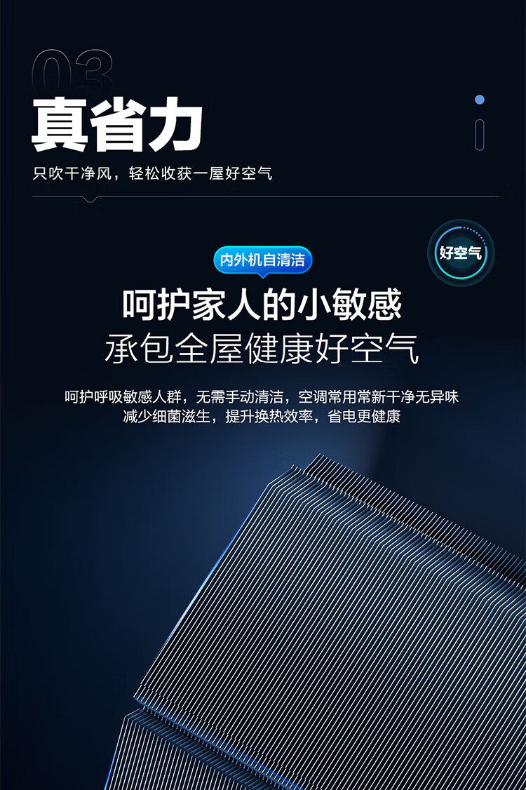 Haier air conditioner net power saving 2 hp large hanging machine new level of energy efficiency double row copper tube energy saving frequency conversion bedroom heating and cooling energy saving wall-mounted living room appliances trade-in net power saving 2 hp AI energy saving save power and space