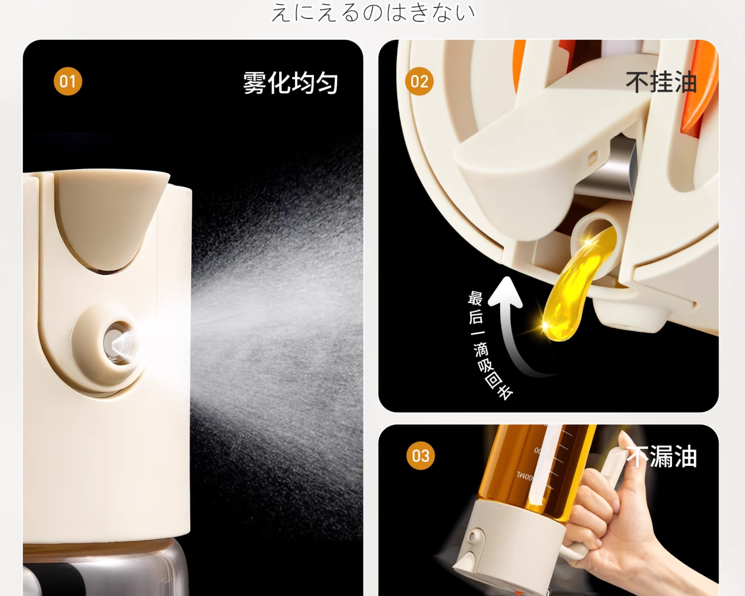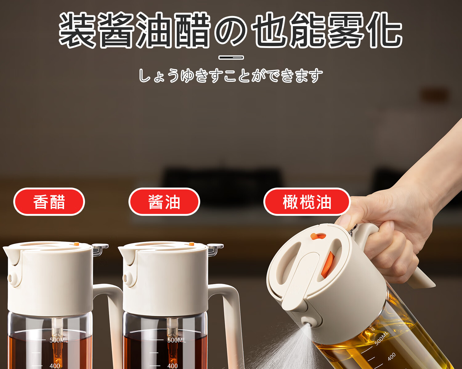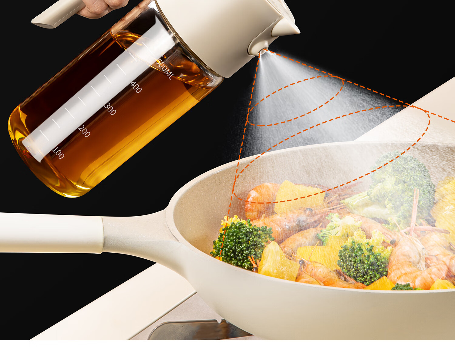 Zhifan Japanese oil bottle spray and pour dual-use oil spray bottle kitchen household oil bottle without oil atomization two-in-one oil tank food grade off-white 1 pack spray and pour dual-use 500ml