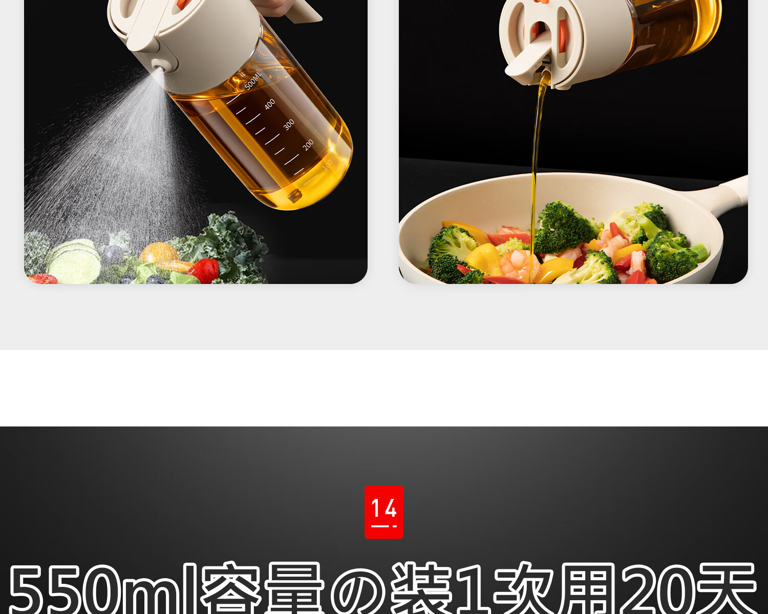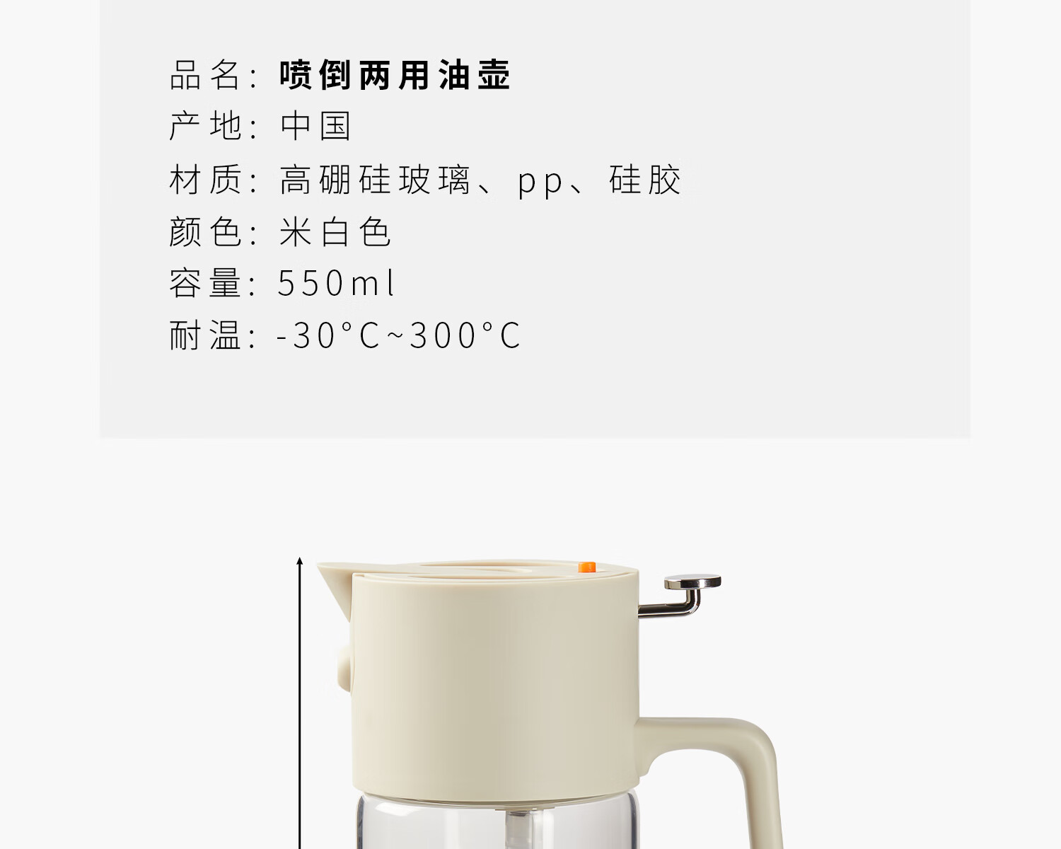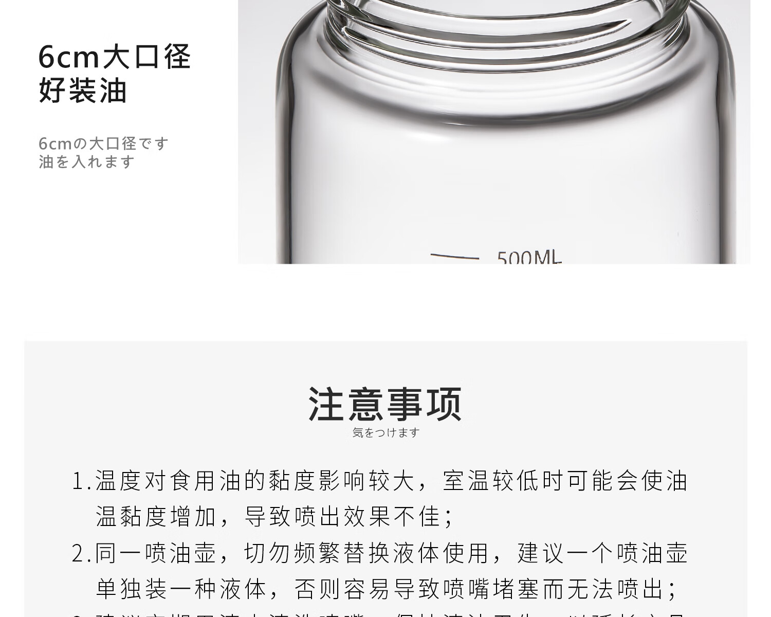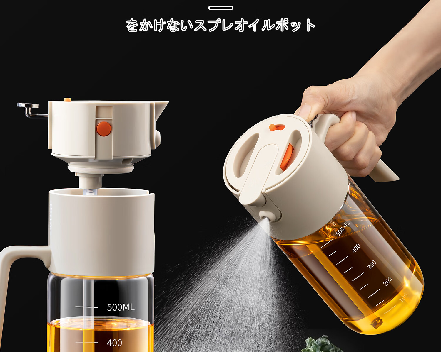 Zhifan Japanese oil bottle spray and pour dual-use oil spray bottle kitchen household oil bottle without oil atomization two-in-one oil tank food grade off-white 1 pack spray and pour dual-use 500ml