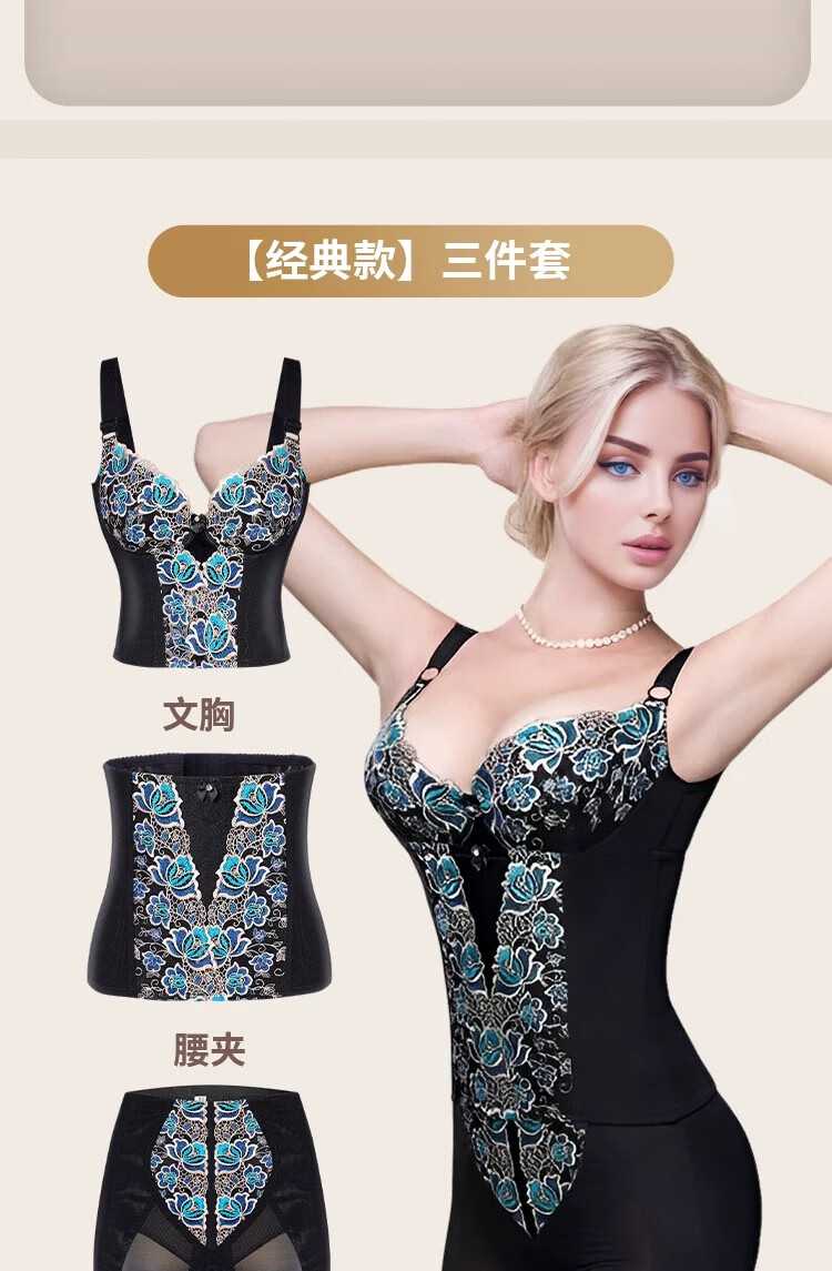 Ting Manyi Generation Classic Shaping Clothes Beauty Salon Same Shaping Body Shaping Body Management Three-piece Set Black Three-piece Set Long Bra + Waist Clip + Shaping Pants XL 82 Height 160 108-123 Jin