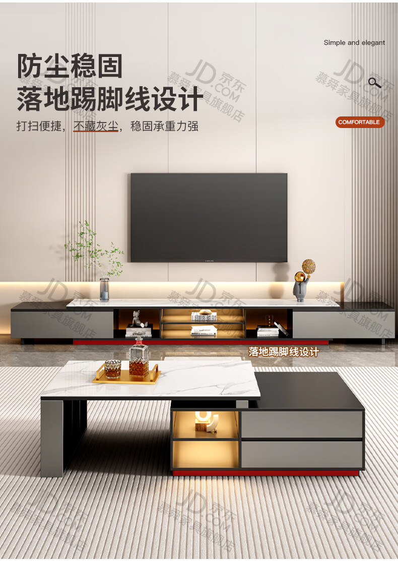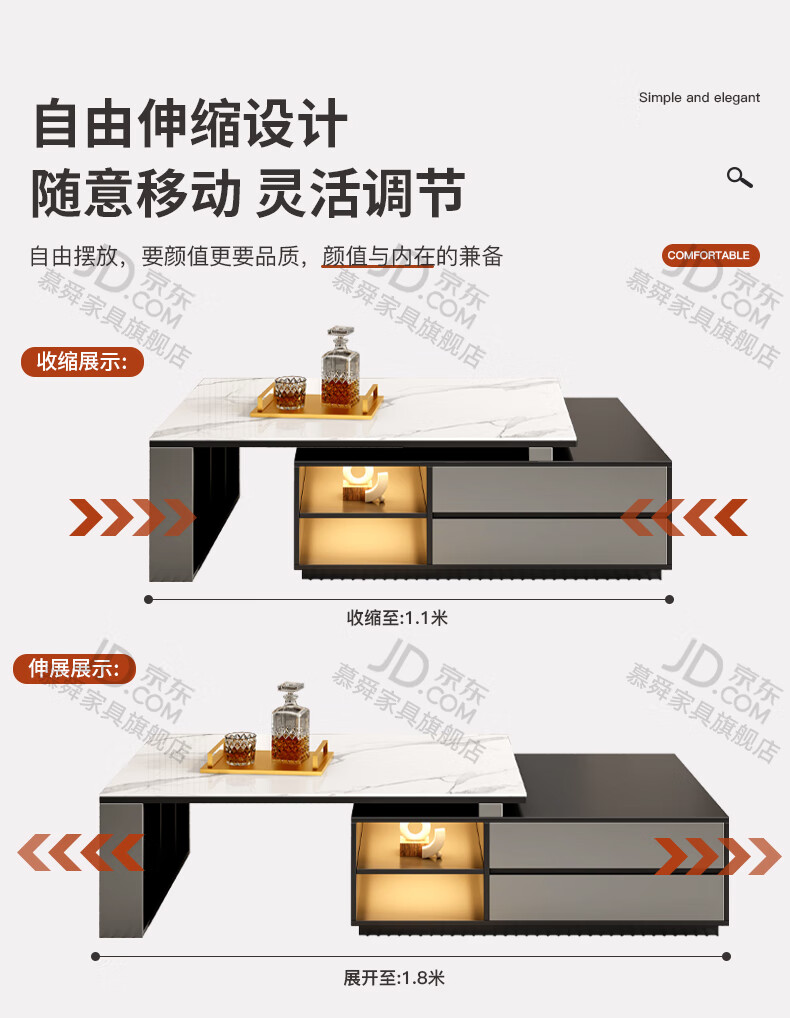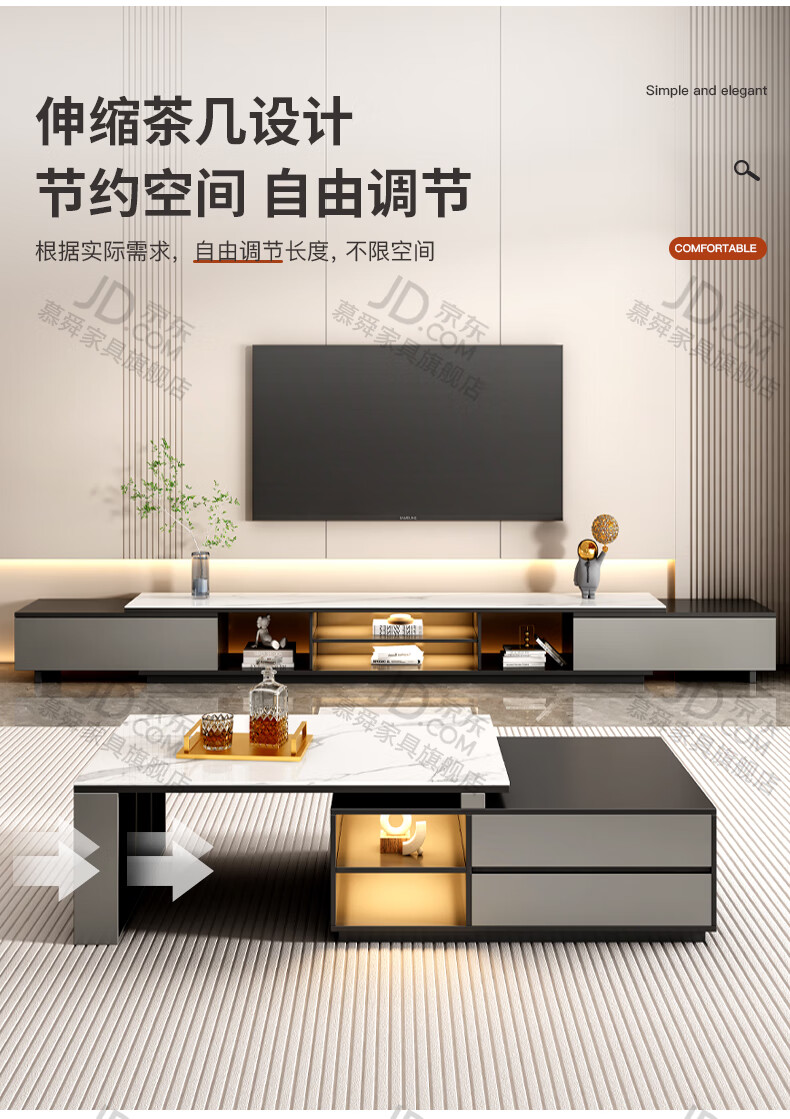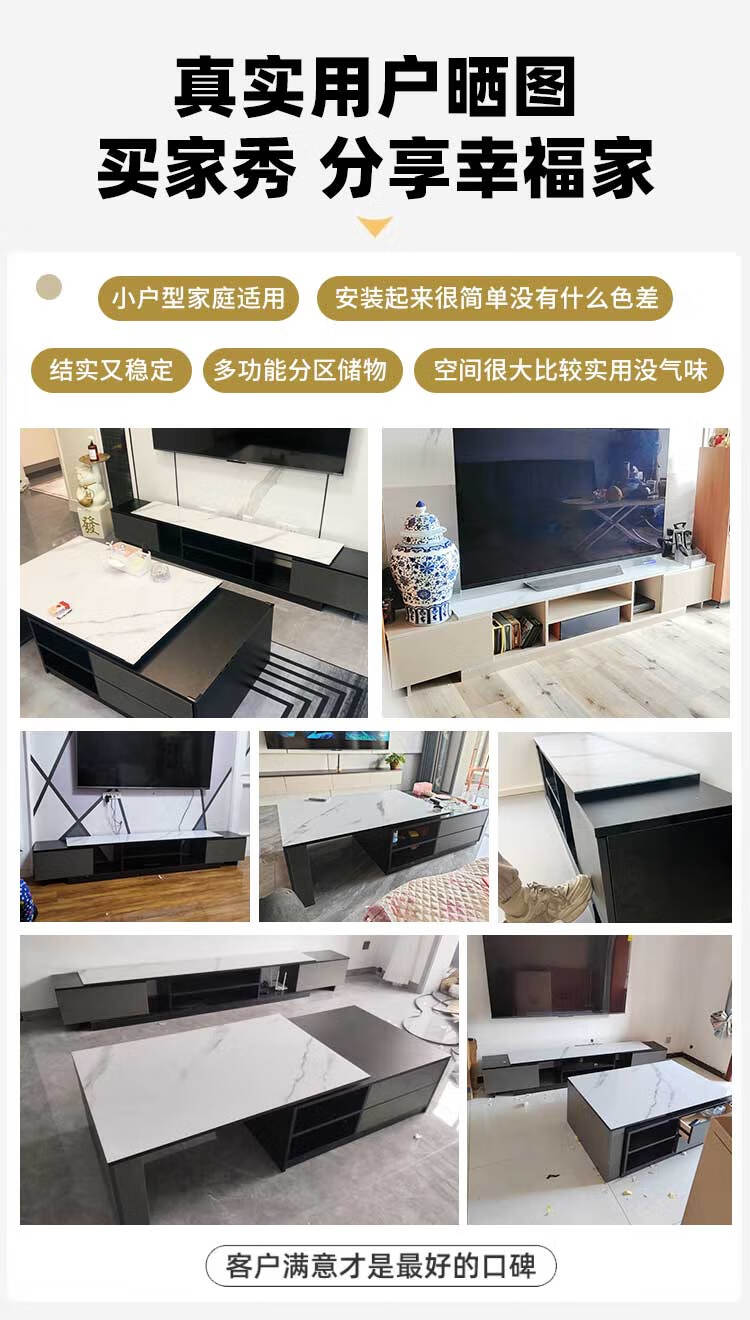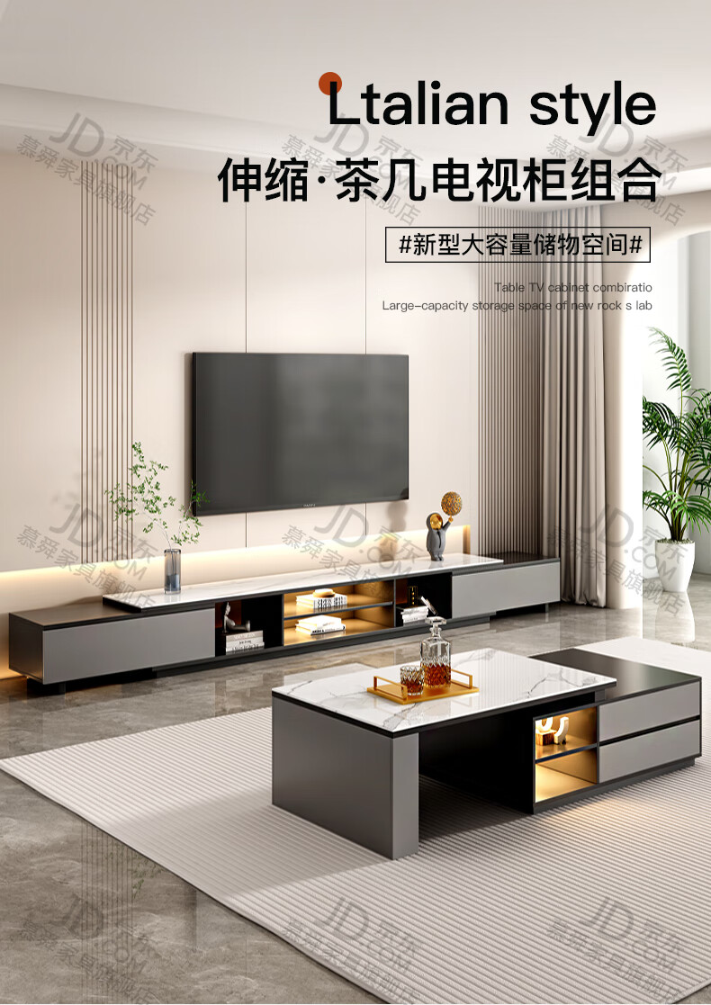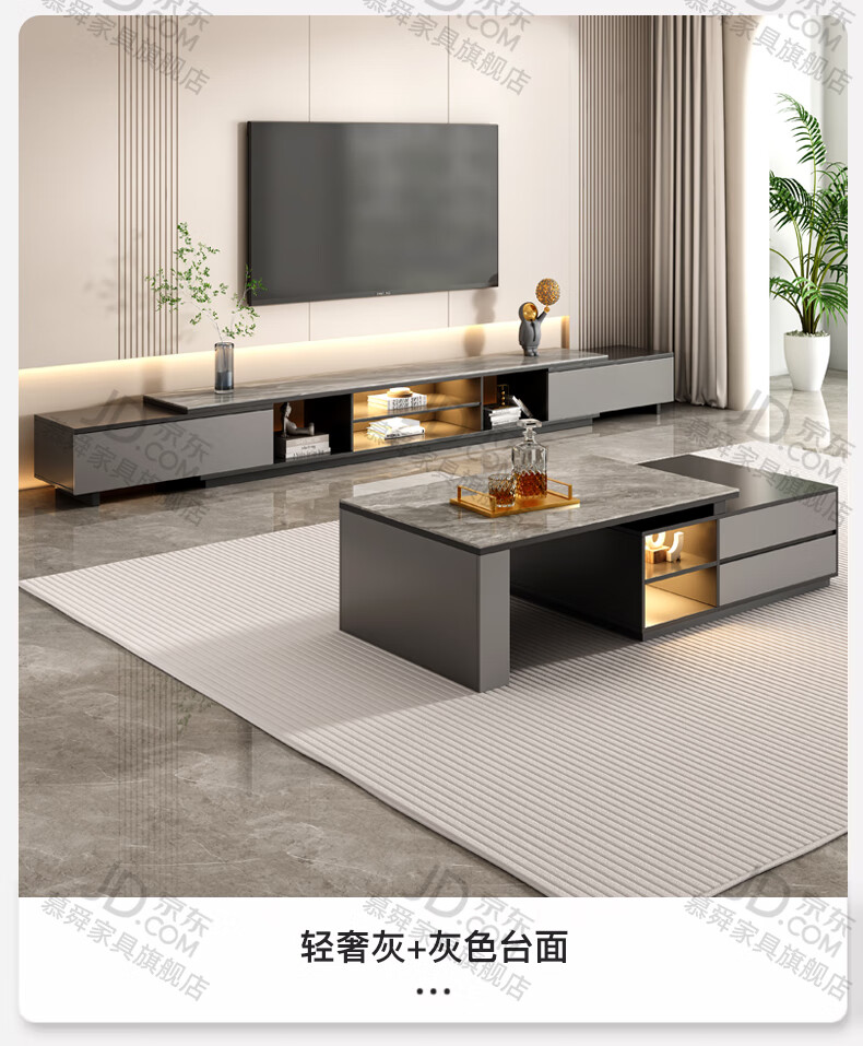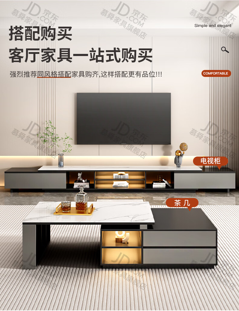 Mushun light luxury coffee table TV cabinet modern simple home living room storage cabinet small apartment retractable TV cabinet combination retractable coffee table 1.1-1.8 meters light luxury gray