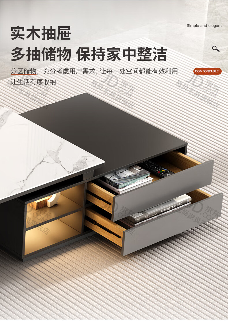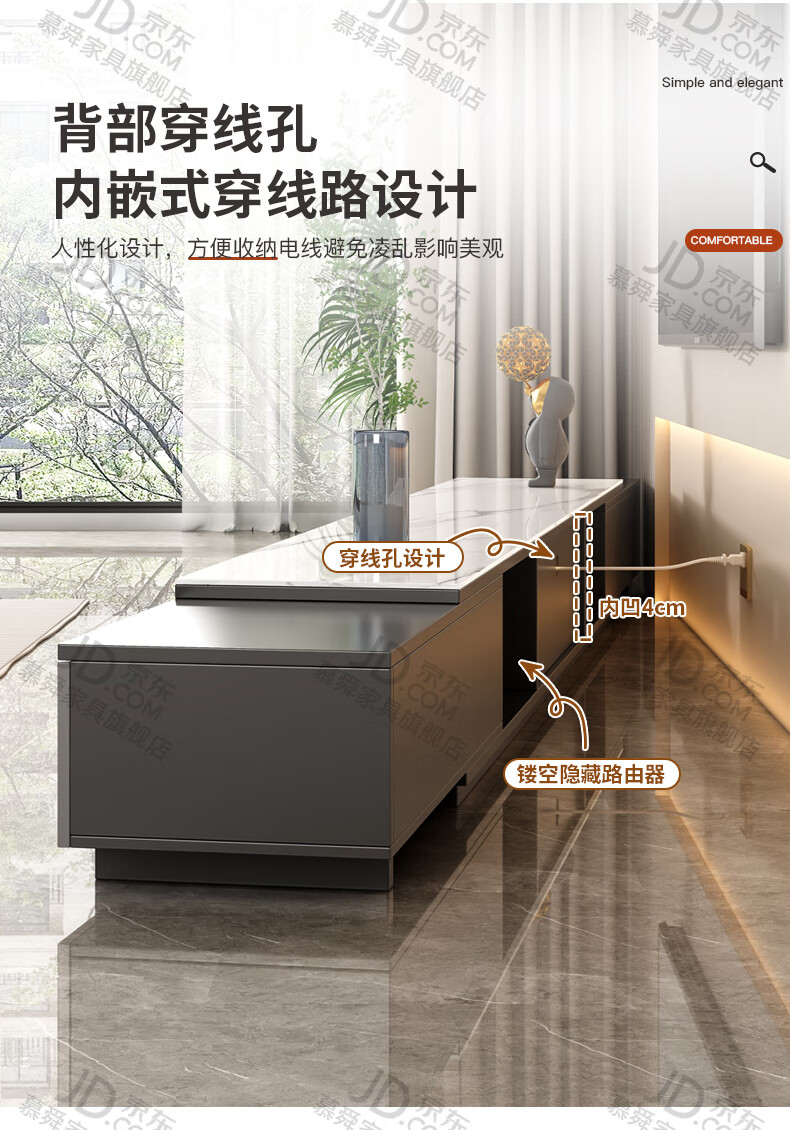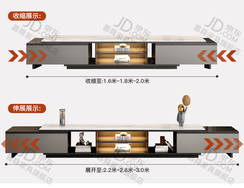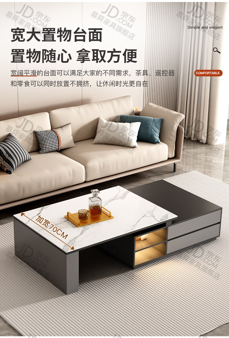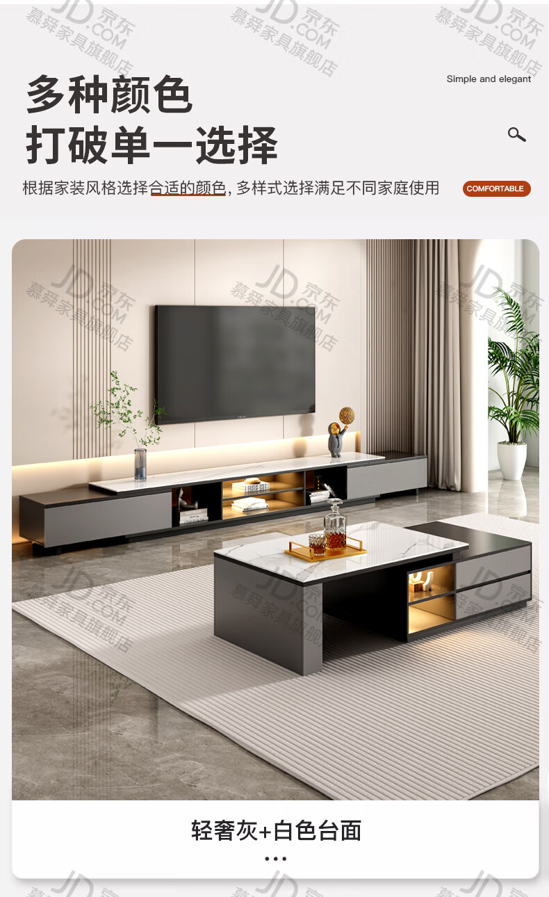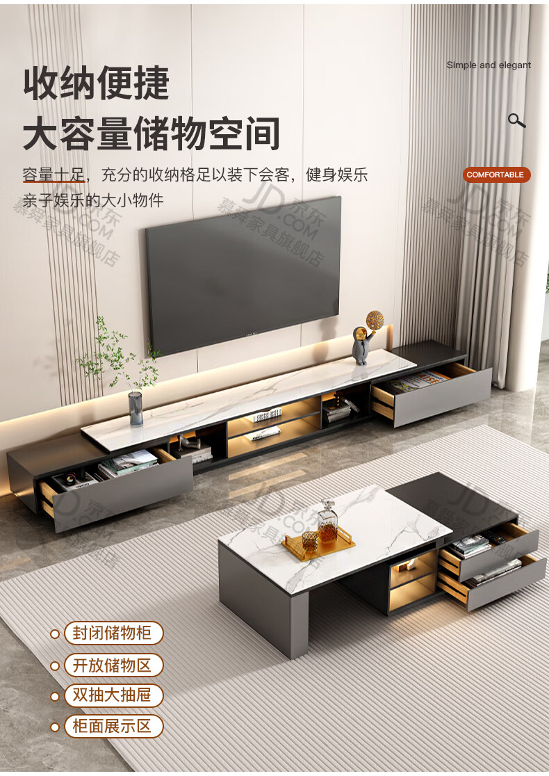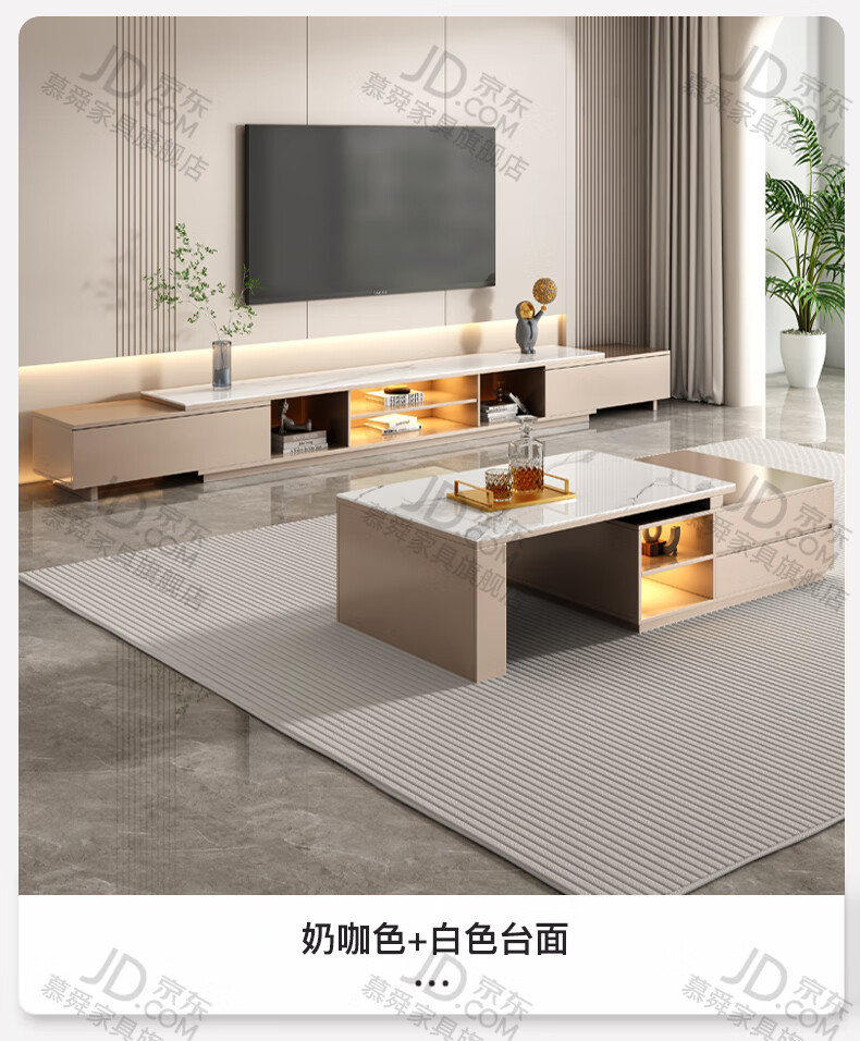 Mushun light luxury coffee table TV cabinet modern simple home living room storage cabinet small apartment retractable TV cabinet combination retractable coffee table 1.1-1.8 meters light luxury gray