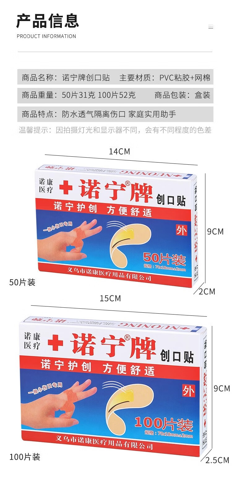 Nuoning brand sterile band-aid, permeable and waterproof band-aid, non-woven fabric, outdoor household band-aid for pedicure shop, 20 pieces of band-aid