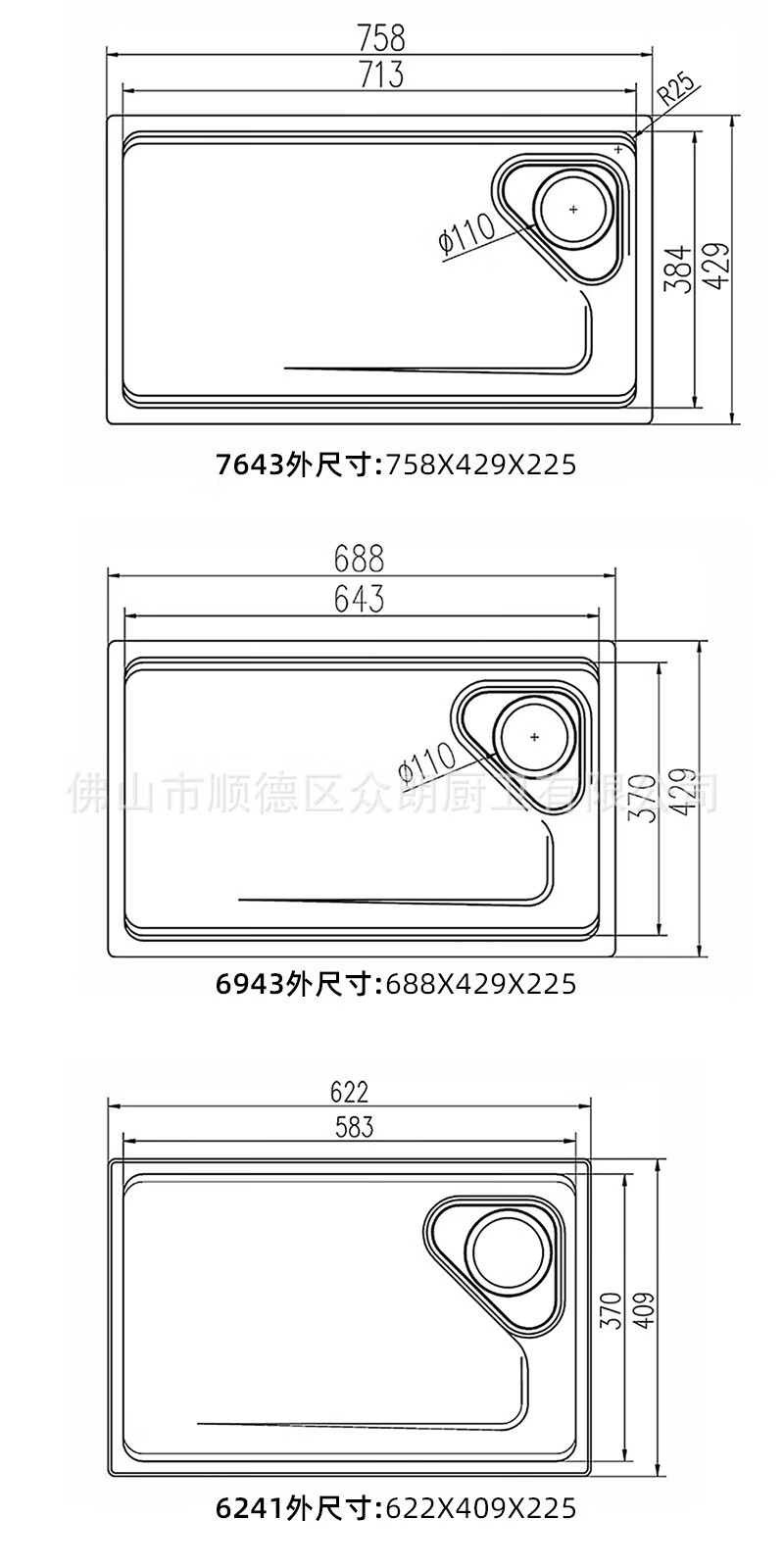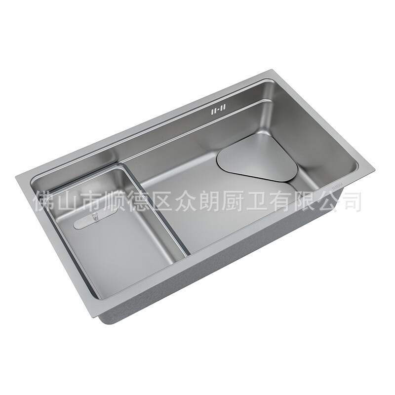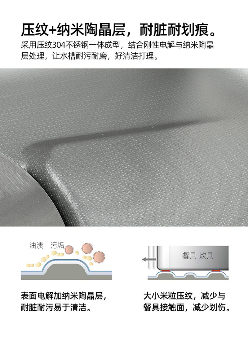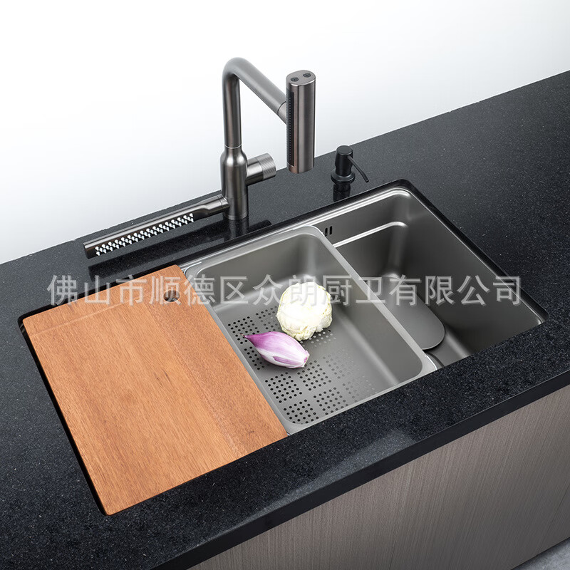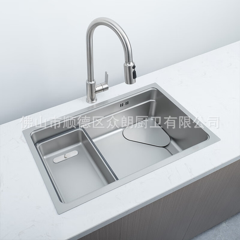 Zhonglang Japanese-style 304 stainless steel brushed embossed nano gray large single-slot thick edge stretch sink vegetable basin 7643 690X430 (double steps)
