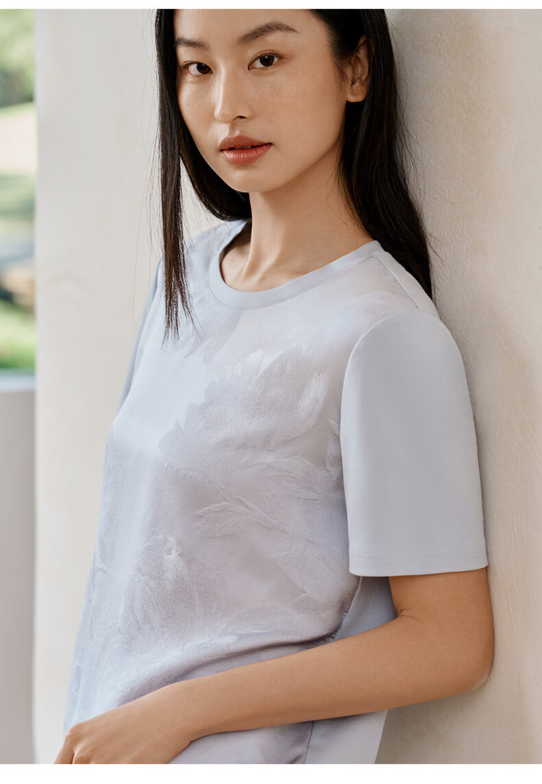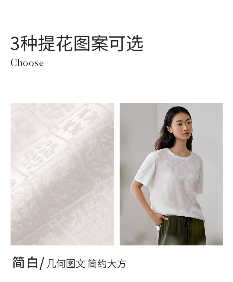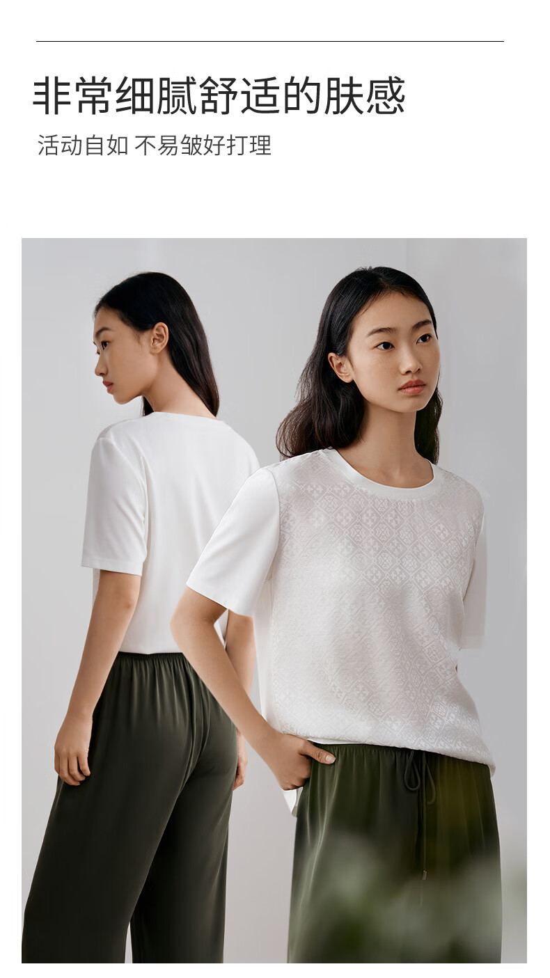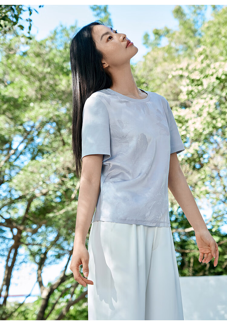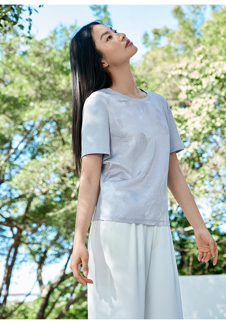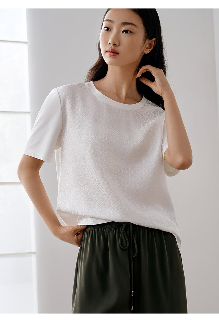 Jinsanta T-shirt women's silk 100% mulberry silk mulberry satin jacquard cool short-sleeved top Recommended Shaoluo Menglan XL