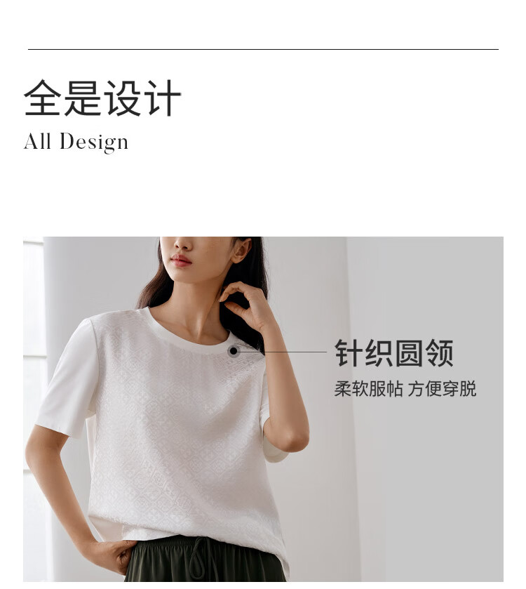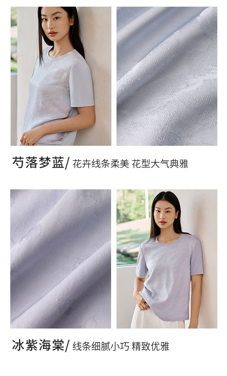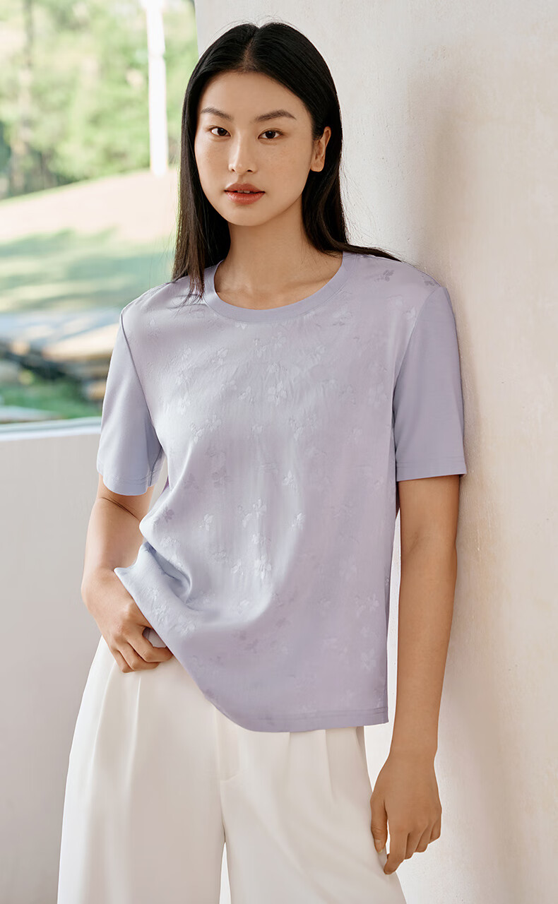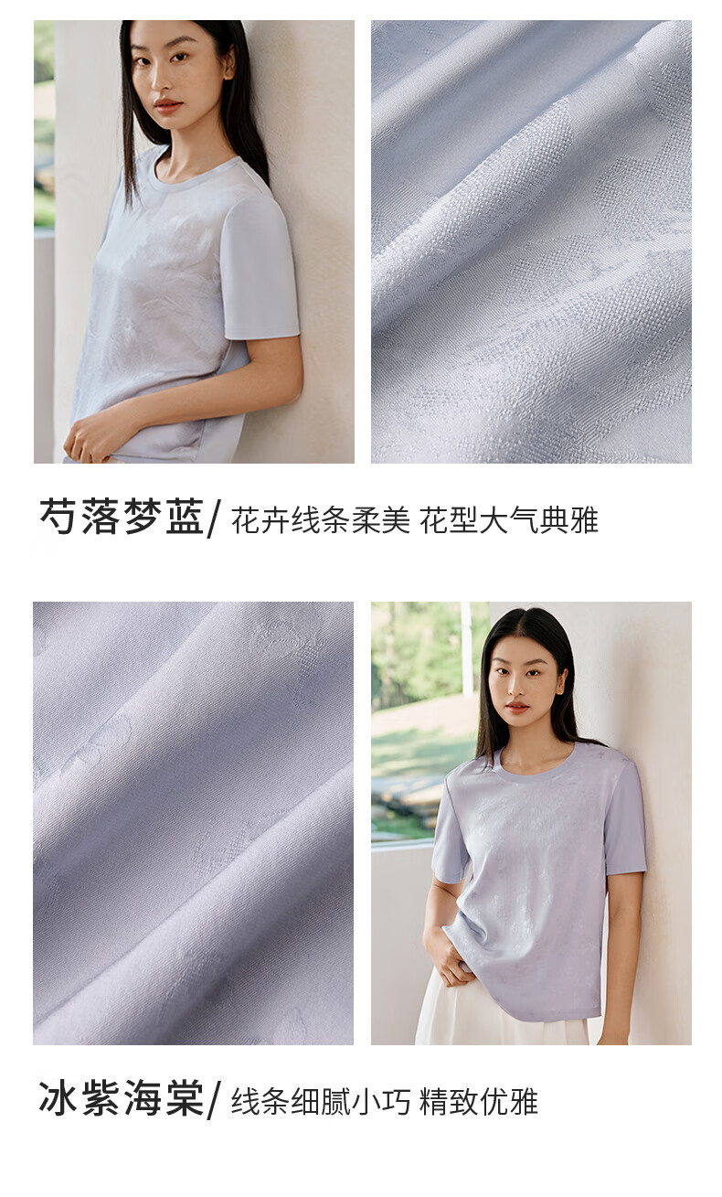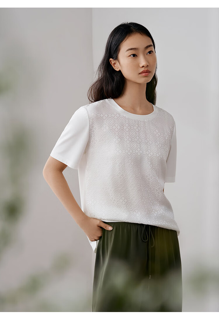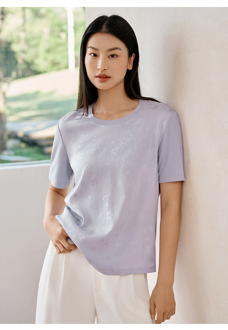 Jinsanta T-shirt women's silk 100% mulberry silk mulberry satin jacquard cool short-sleeved top Recommended Shaoluo Menglan XL