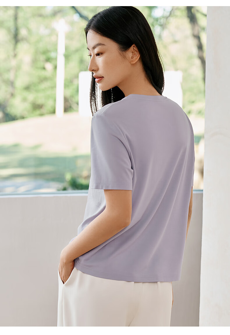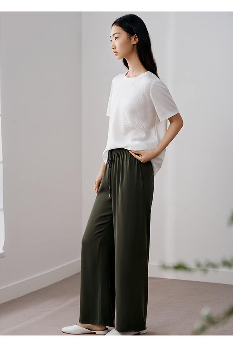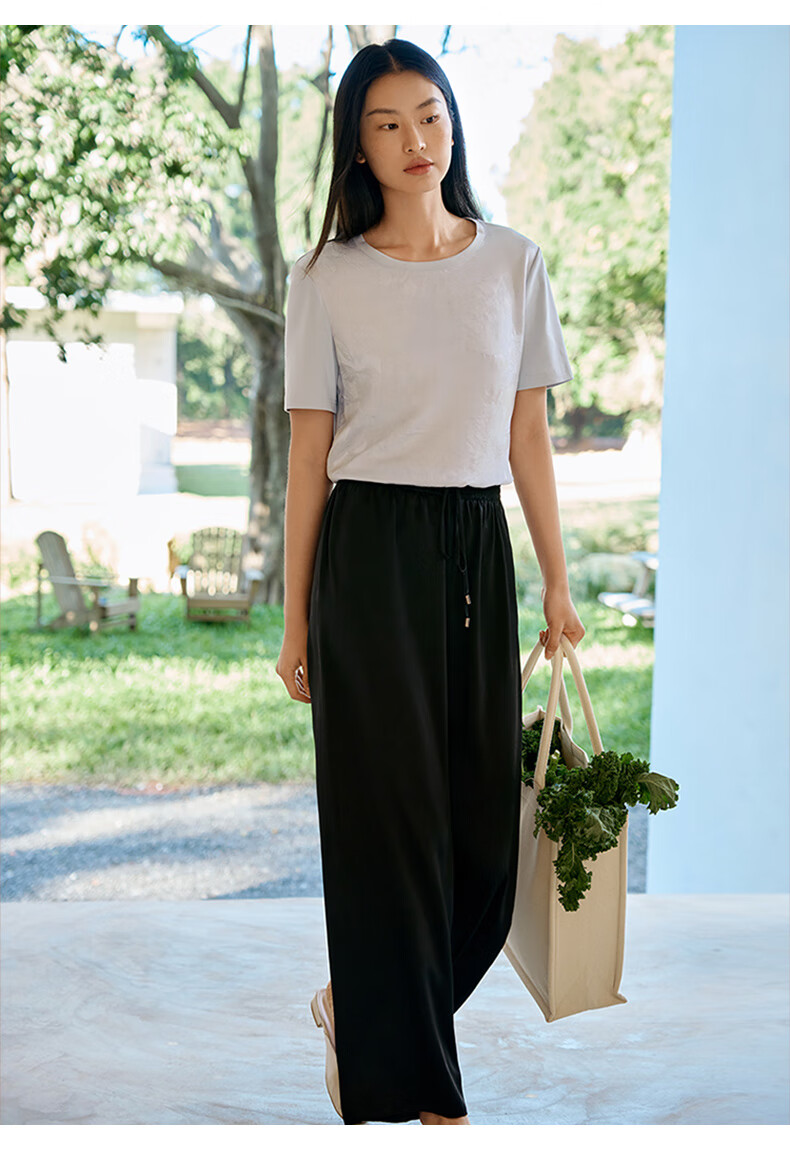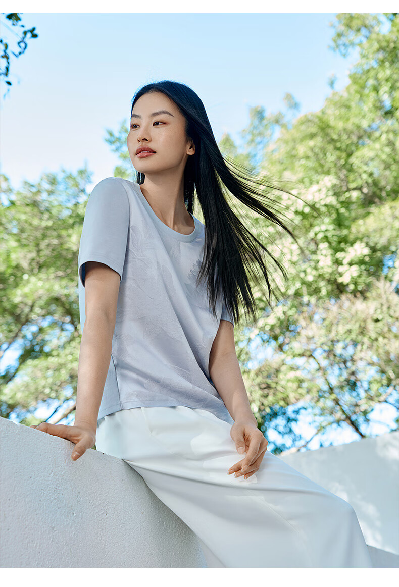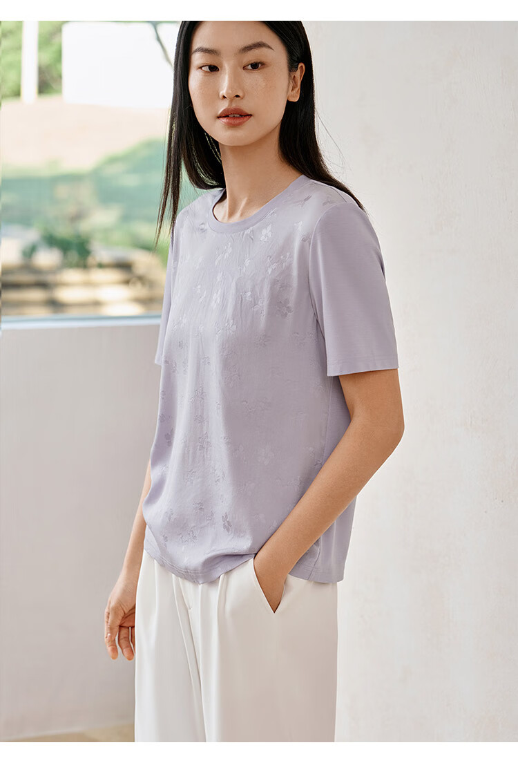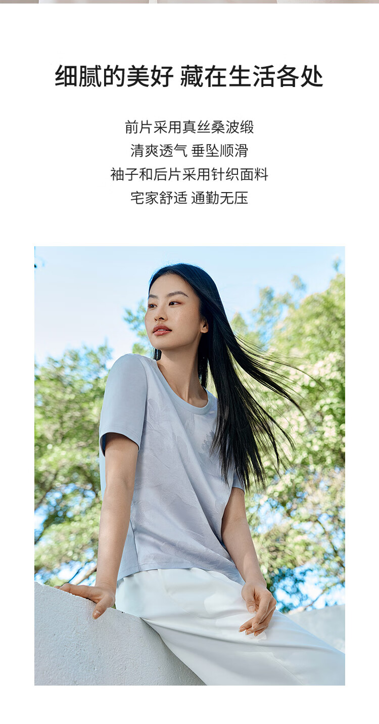 Jinsanta T-shirt women's silk 100% mulberry silk mulberry satin jacquard cool short-sleeved top Recommended Shaoluo Menglan XL