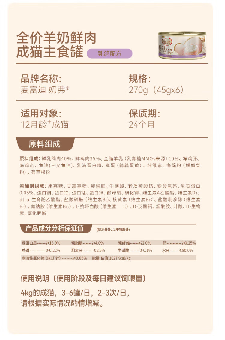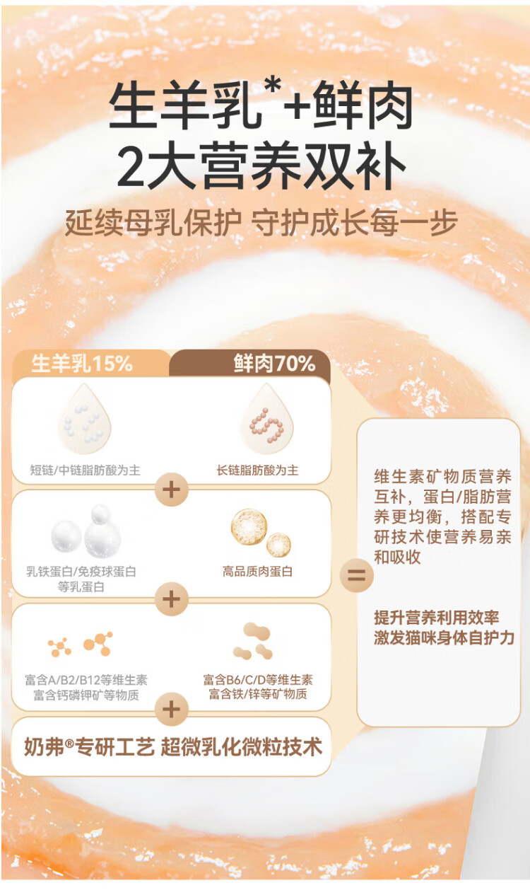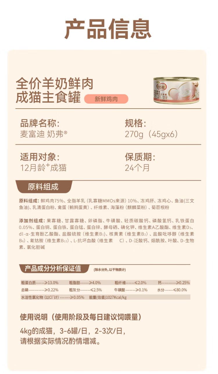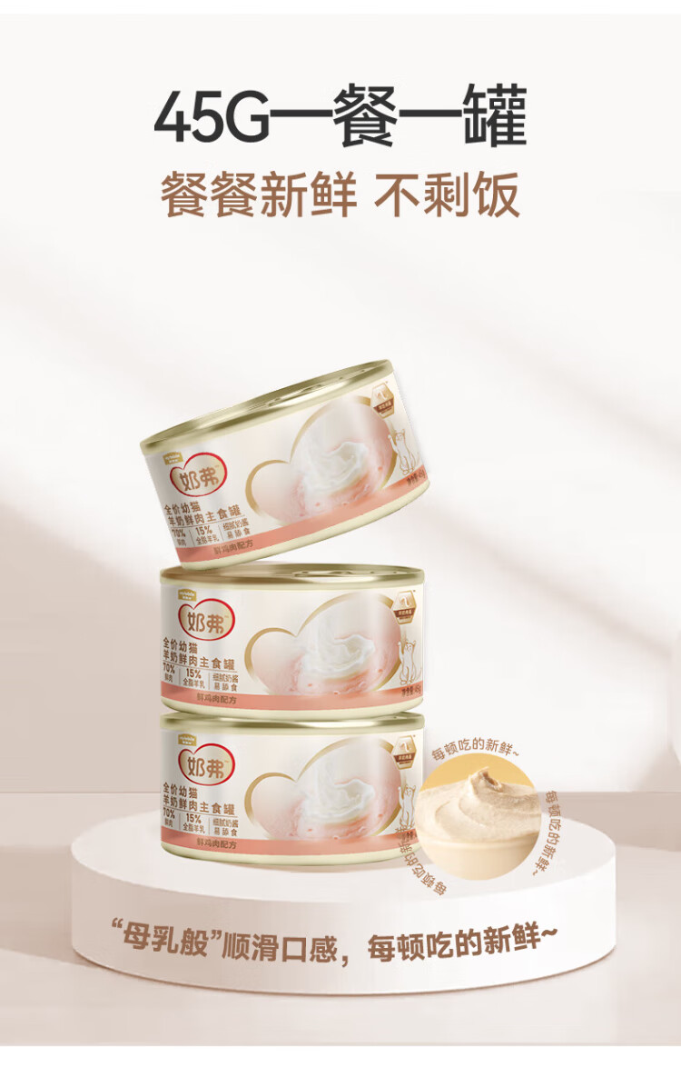 McFoody Cat Wet Food Milk, Goat Milk, Fresh Meat Staple Food Can, Mousse Texture, Hydrating and Easy to Lick, Kitten, Chicken Flavor 45g*2