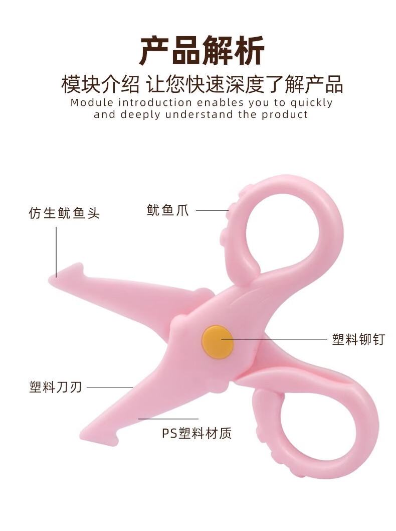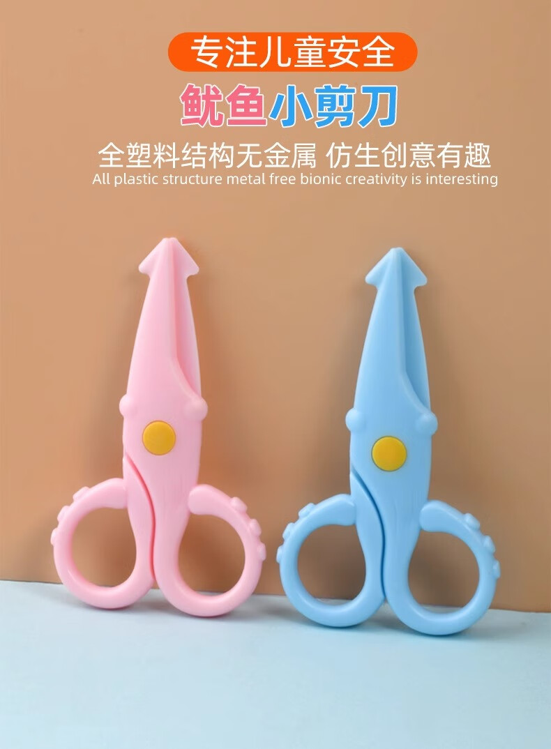 Children's scissors, student safety scissors, handmade art stationery, child protection function, small scissors, kindergarten paper cutting, squid mini handmade scissors - pink - 1 pack