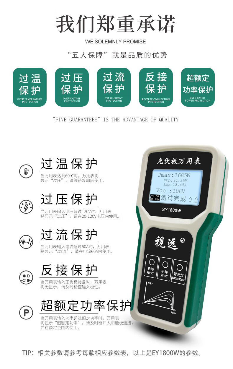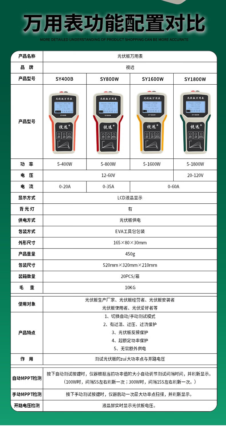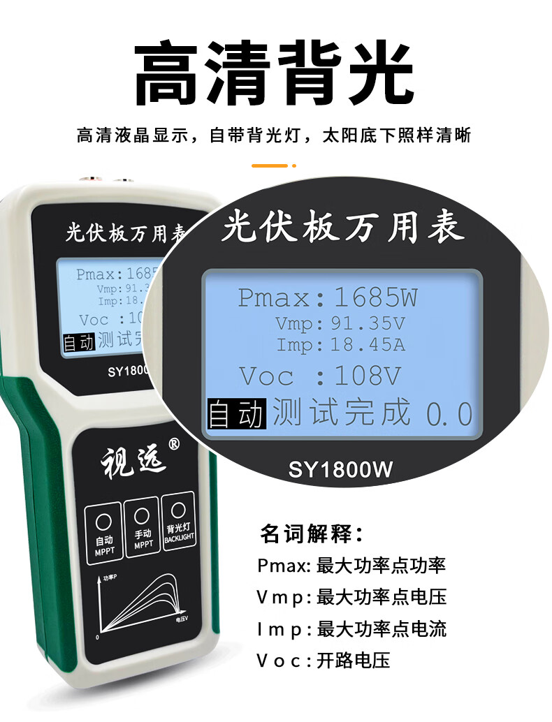 Vision photovoltaic panel multimeter SY1800W solar MPPT power meter component power tester 20-120V SY1800W