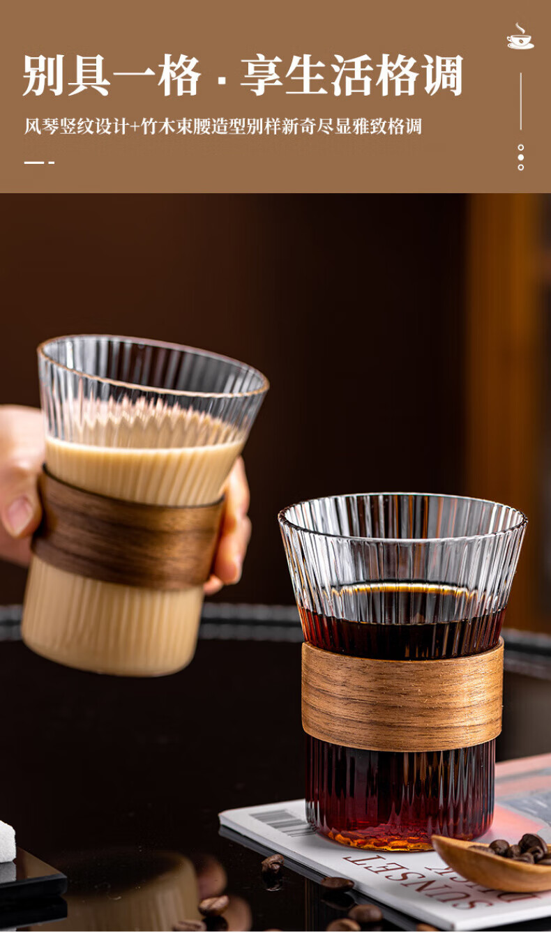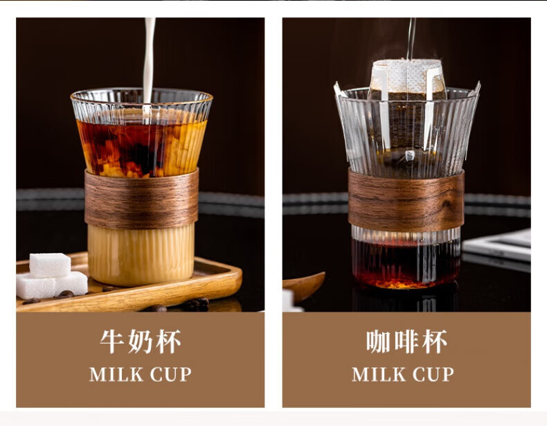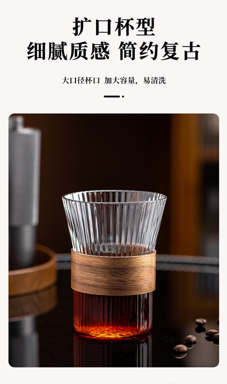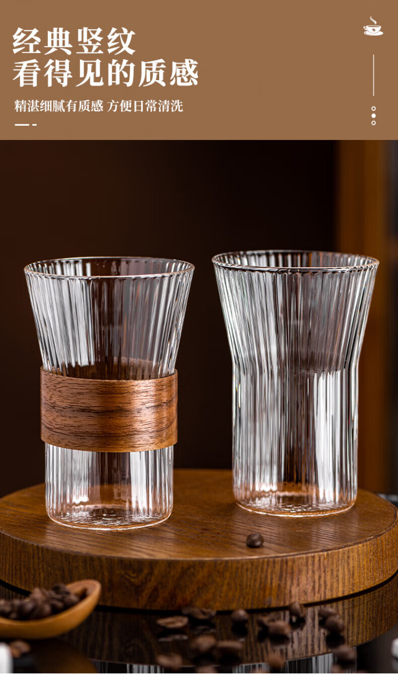 Mangong German quality hanging ear coffee cup high borosilicate glass cup American latte cup appearance vertical pattern tea cup hanging ear coffee cup 1 pack