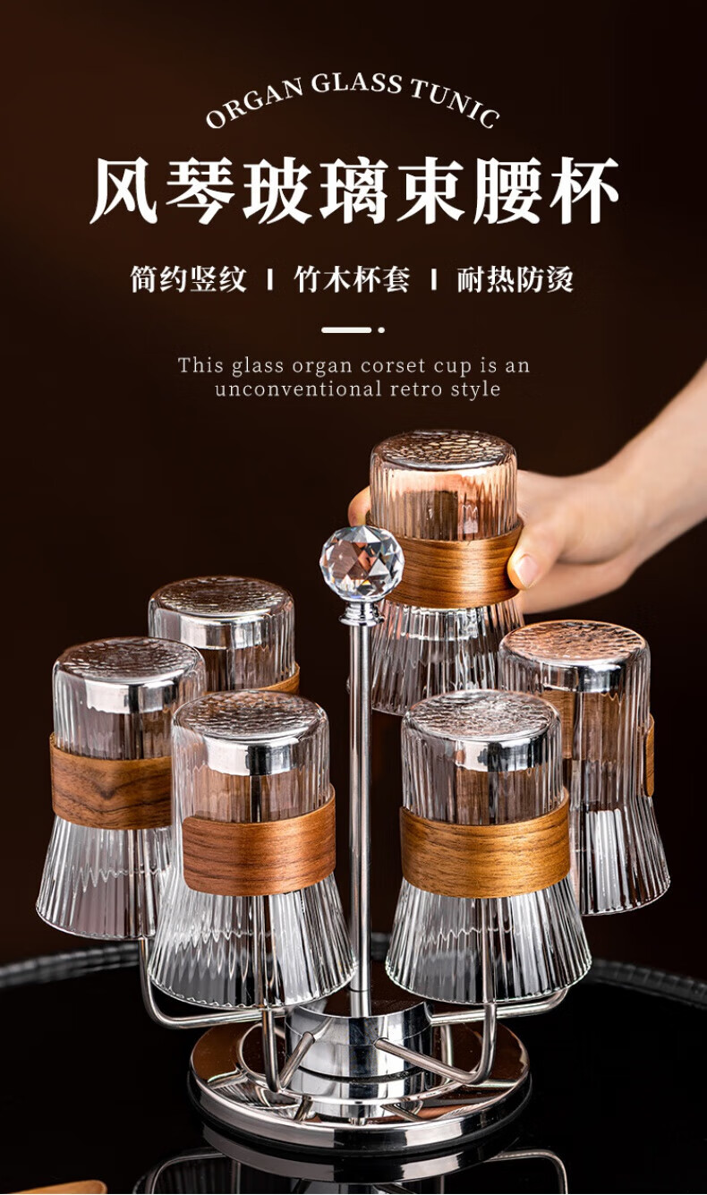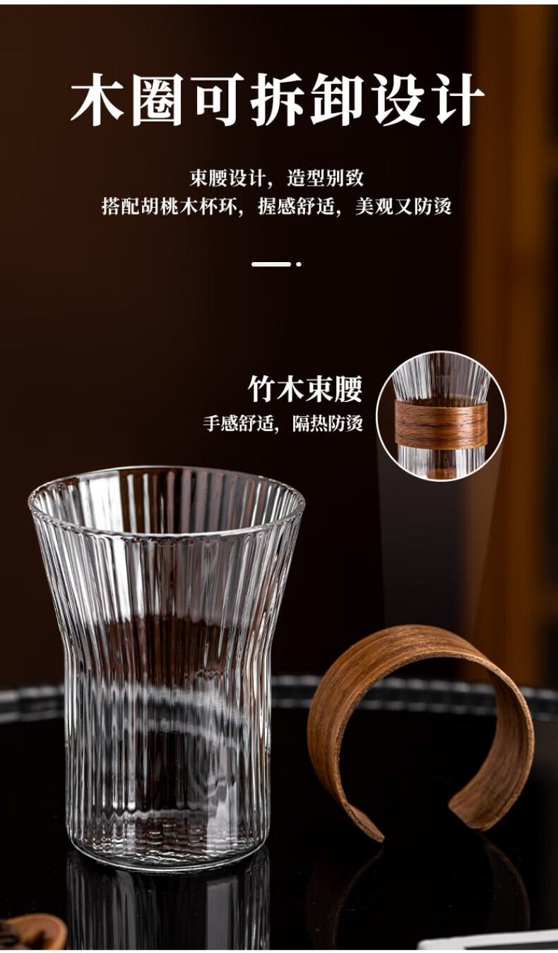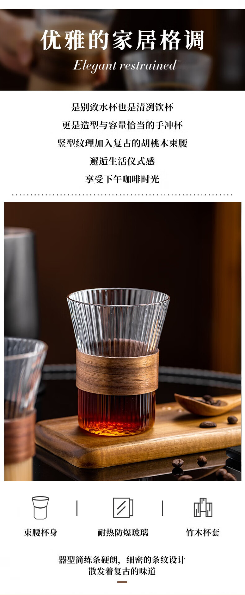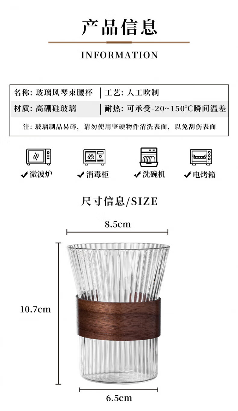 Mangong German quality hanging ear coffee cup high borosilicate glass cup American latte cup appearance vertical pattern tea cup hanging ear coffee cup 1 pack