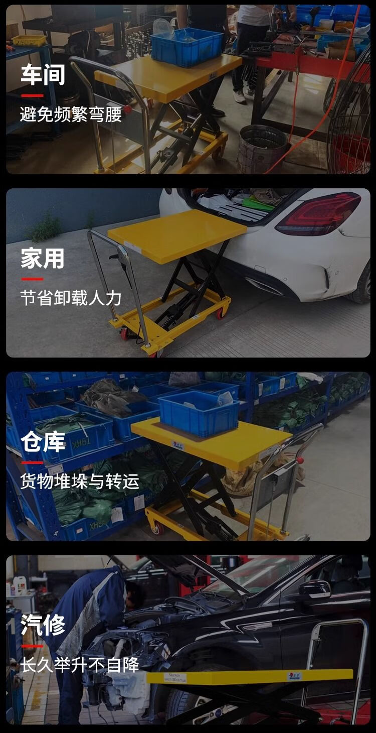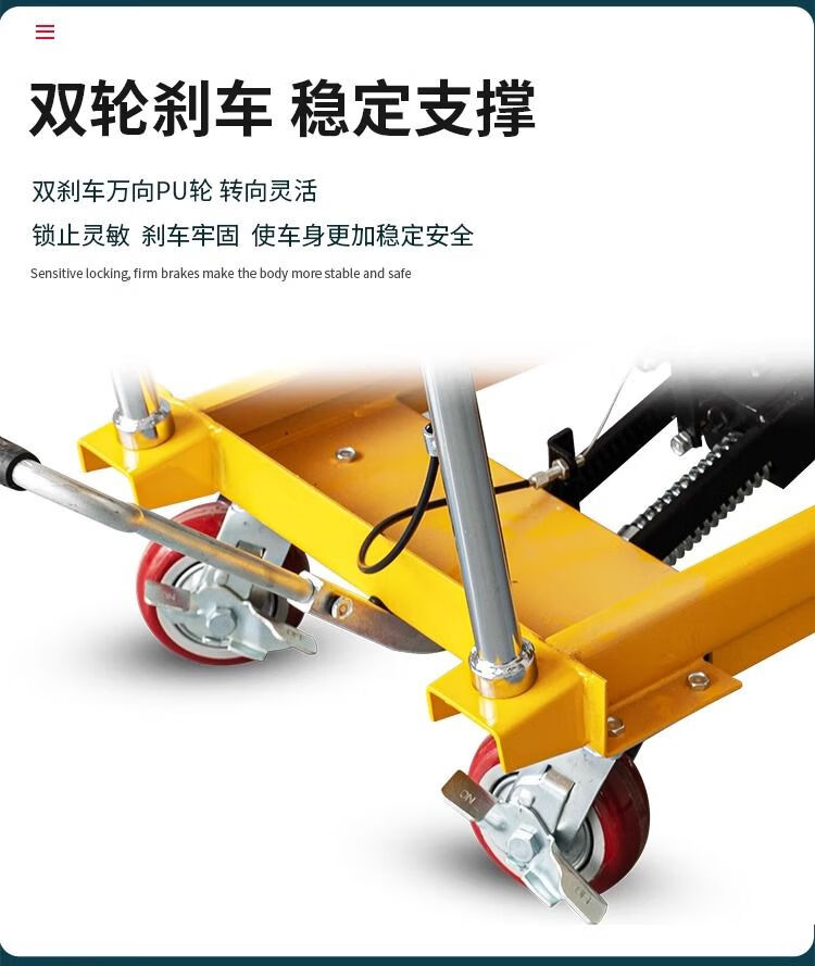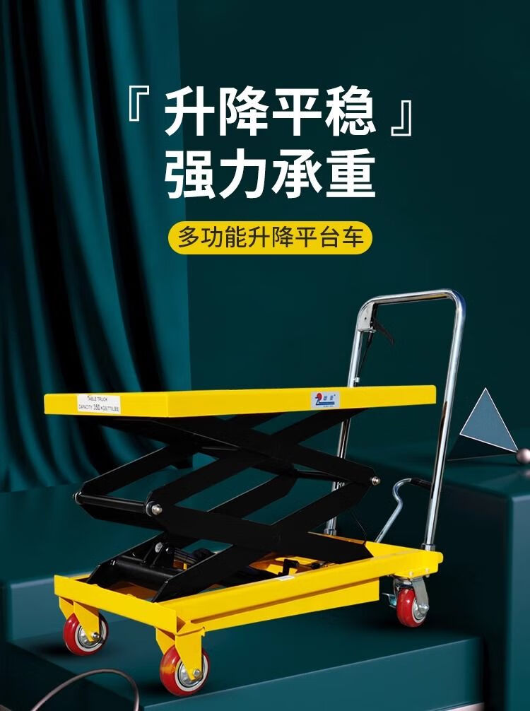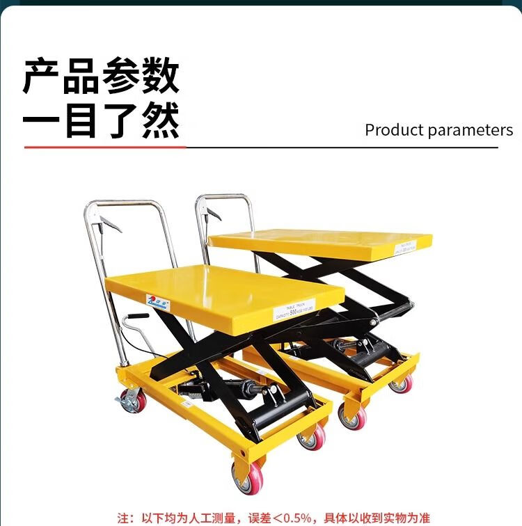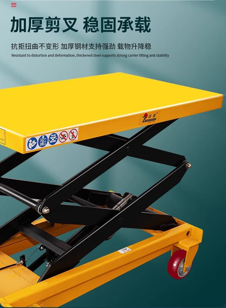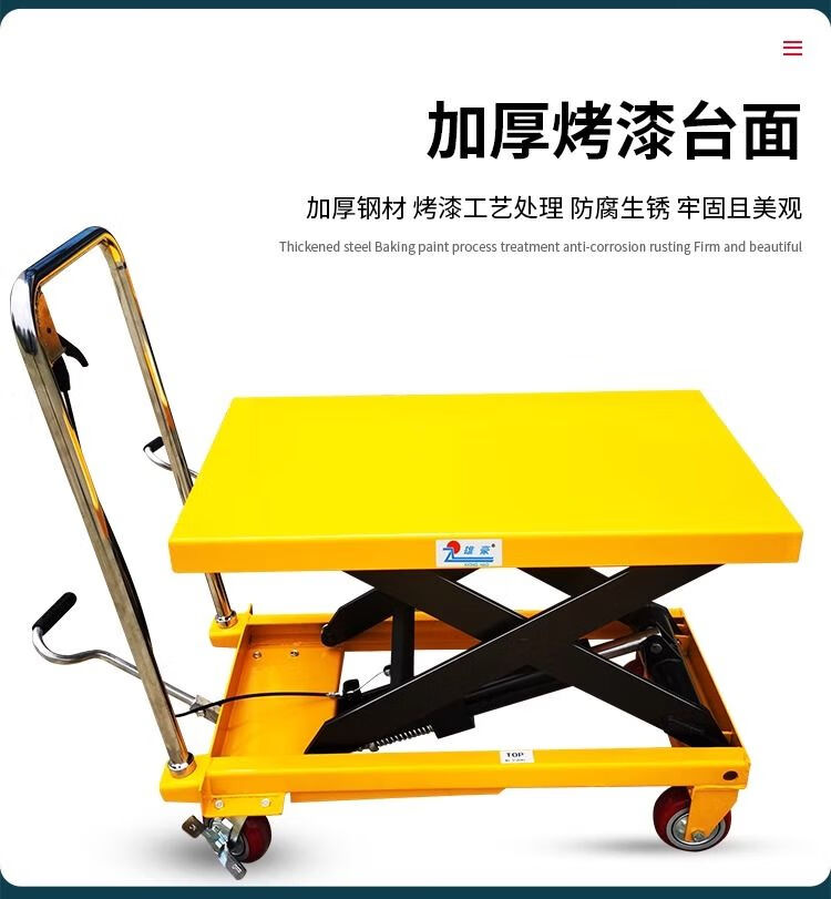 Yukai manual hydraulic lifting platform vehicle scissor-type workbench flat mobile trolley small electric lift 150 kg Li 0.72 m table 700*450