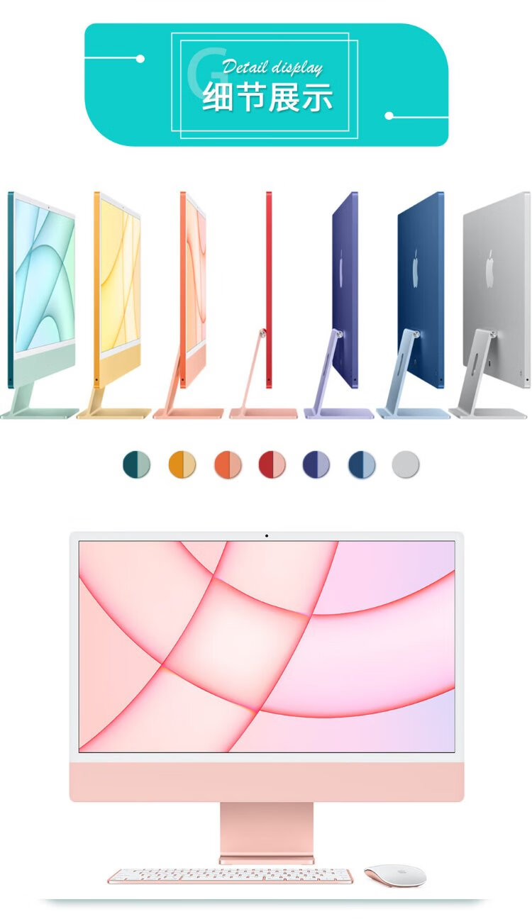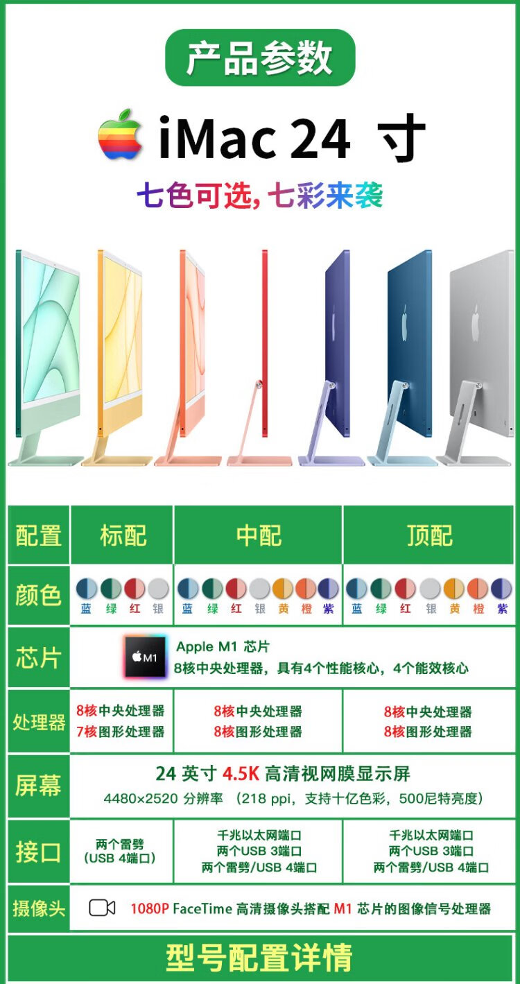 Apple (Apple) iMac 99 new and second-hand Apple all-in-one computer desktop 24-inch M1/M3/M4 official refurbished new design clip Jingxuan Computer | One machine one inspection M3 8 core + 8 core 8G-256GB official refurbished brand new joint warranty 99% new