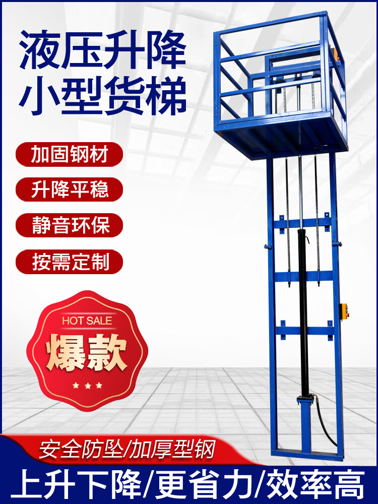 Electric hydraulic lift freight elevator simple household small elevator guide rail lifting platform warehouse factory freight elevator lift thickened electric model customized height prepayment