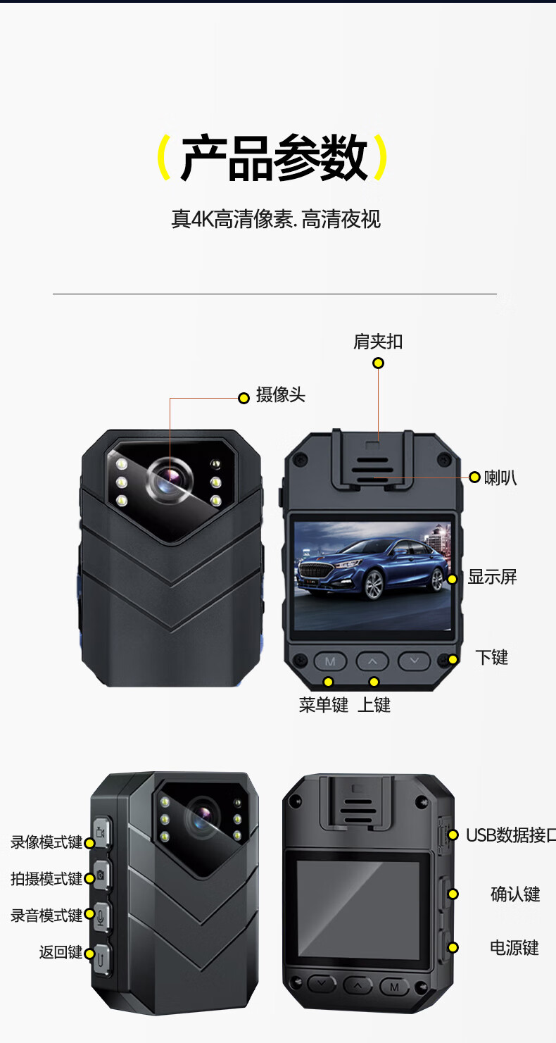 Mengxuan (MENGXUAN) high-definition body-worn law enforcement recorder, chest shoulder clip-type small sports camera, cycling meeting recording and evidence collection equipment, high-definition anti-reflection version + 16G memory, high-definition camera professional evidence collection
