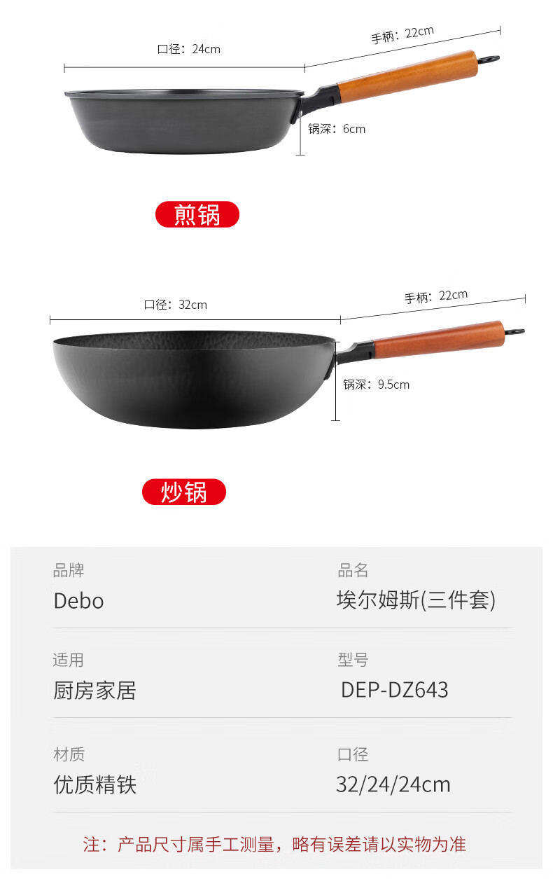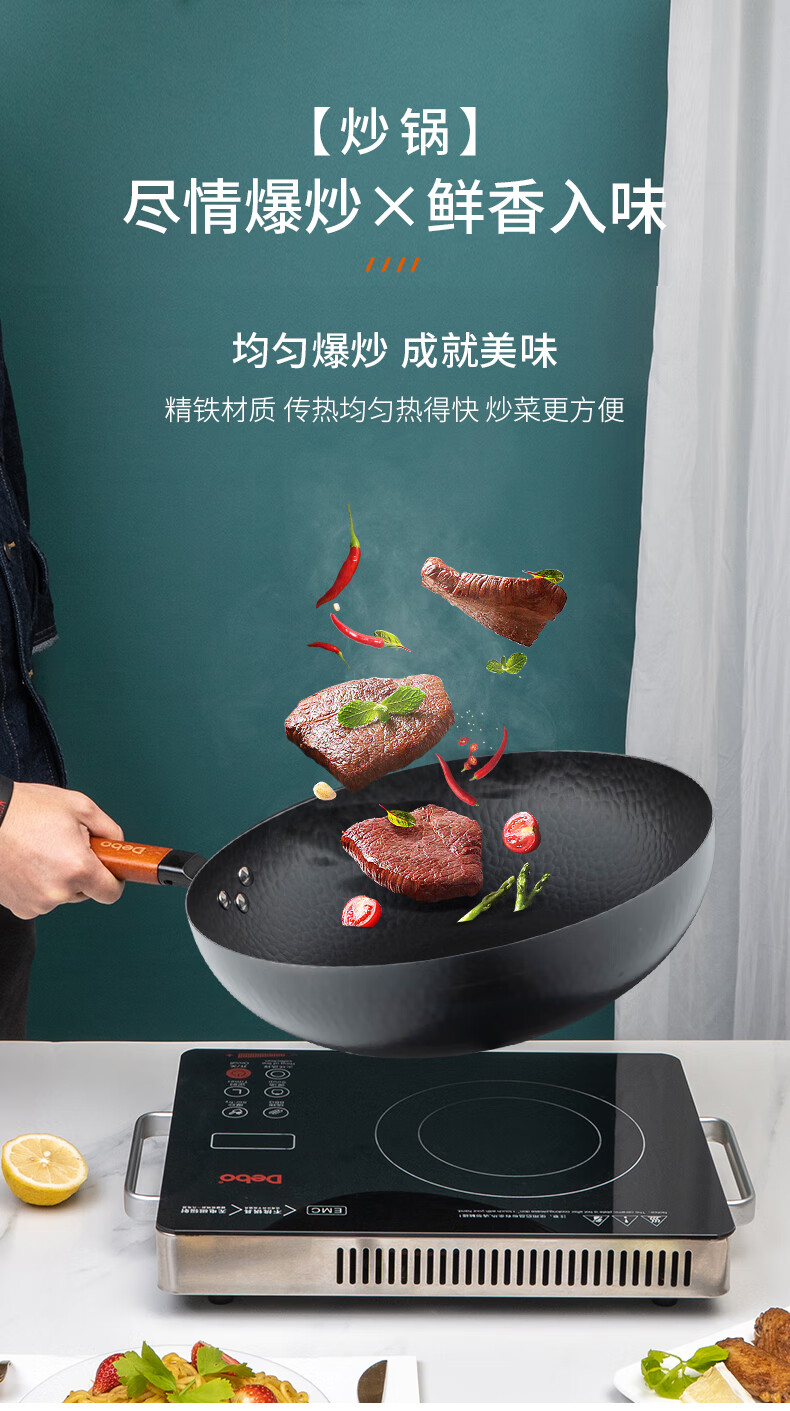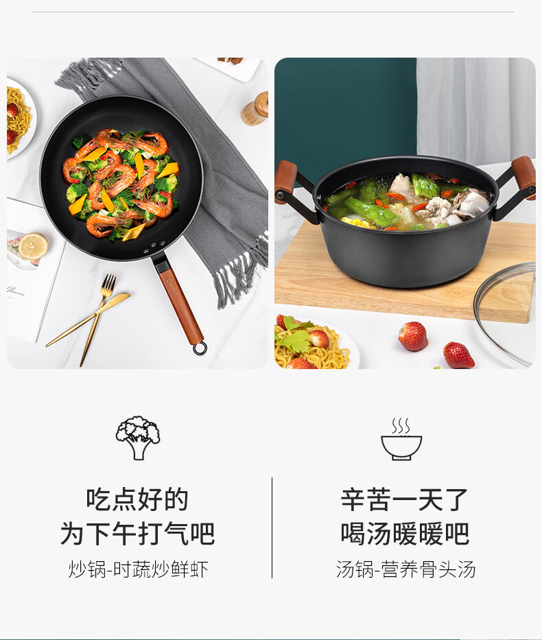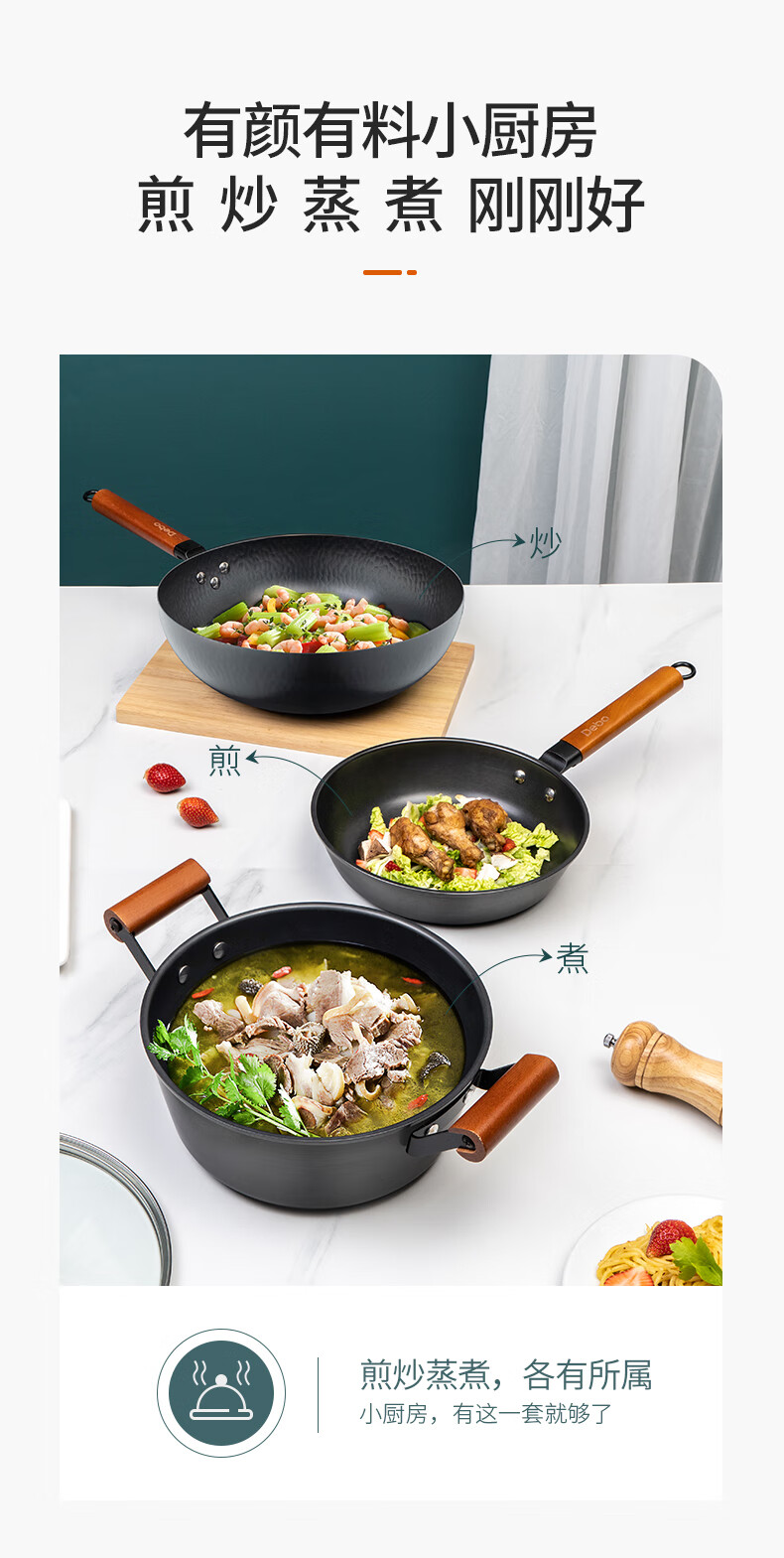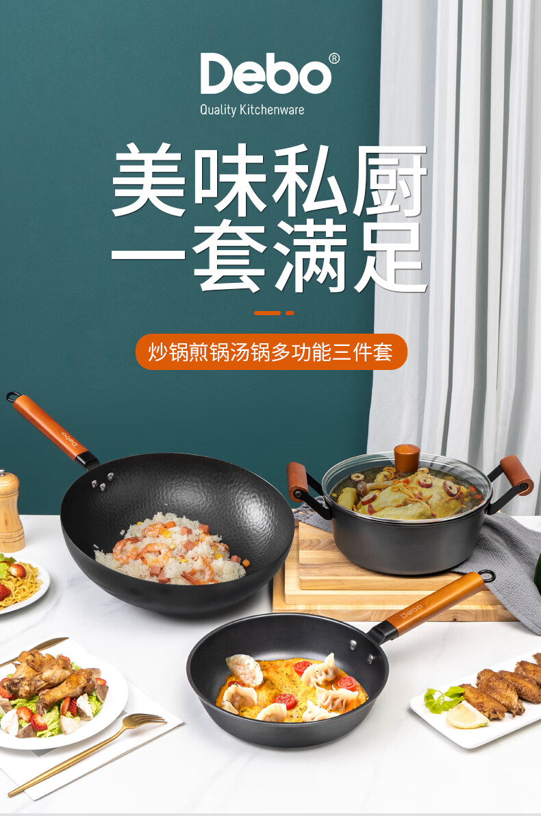 Debo Debo set pot, wok, cooking pot, milk pot three-piece set, non-stick pot set