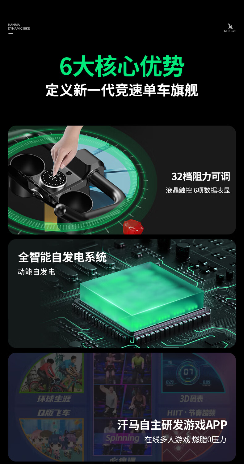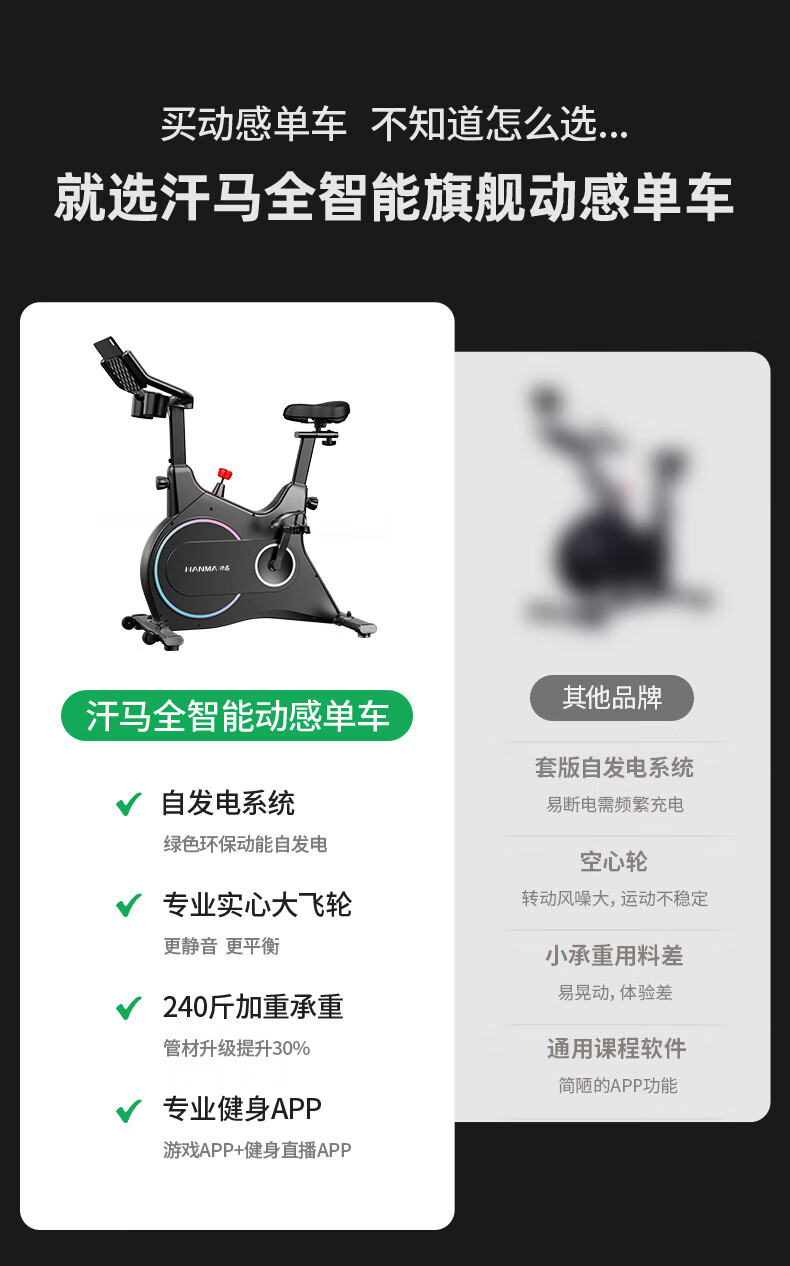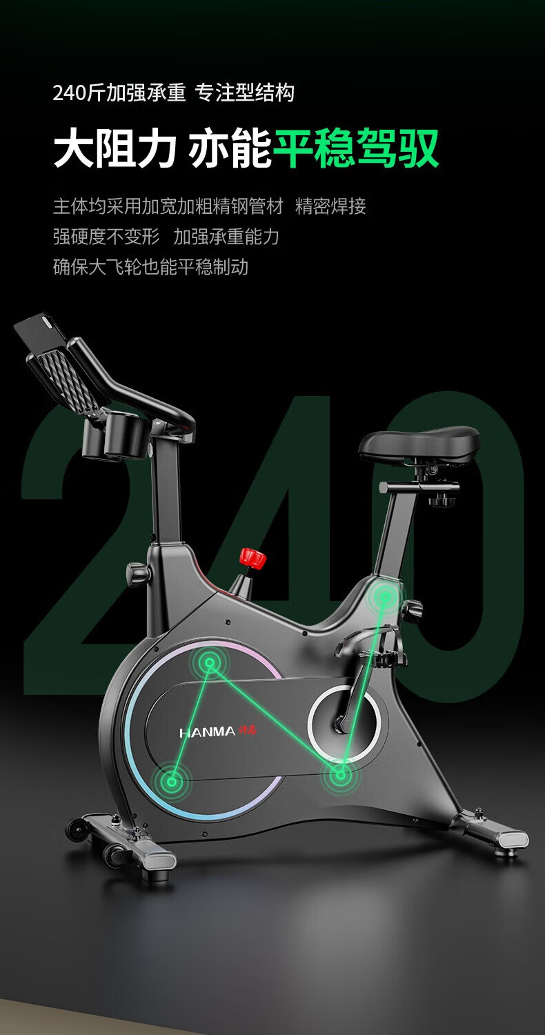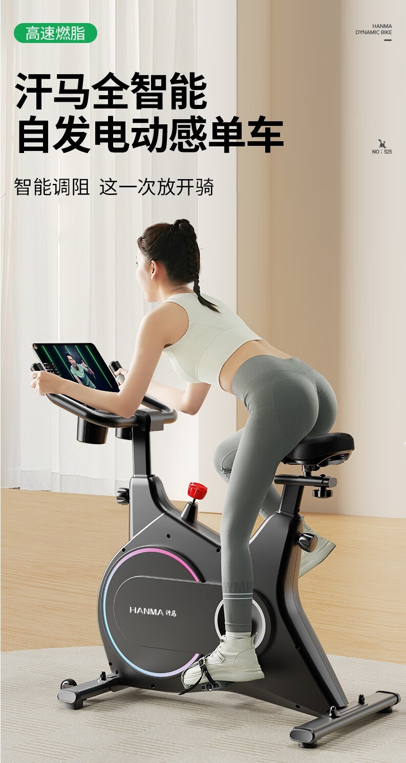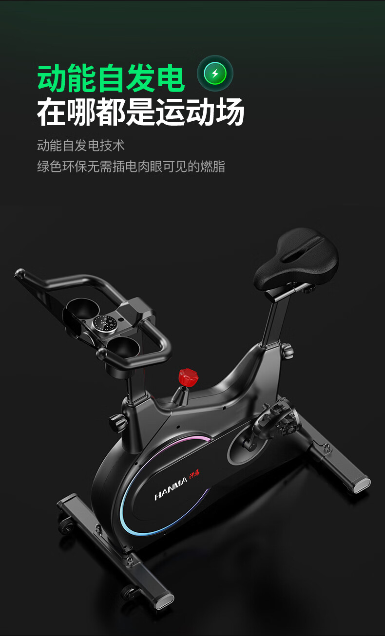 Hanma spinning bicycle home spontaneous electromagnetic control sports fitness equipment indoor silent bicycle physical magnetic double resistance + enlarged body + 365-day annual membership card/white