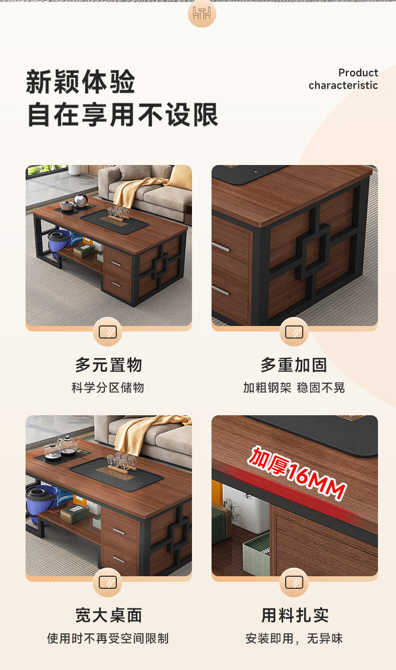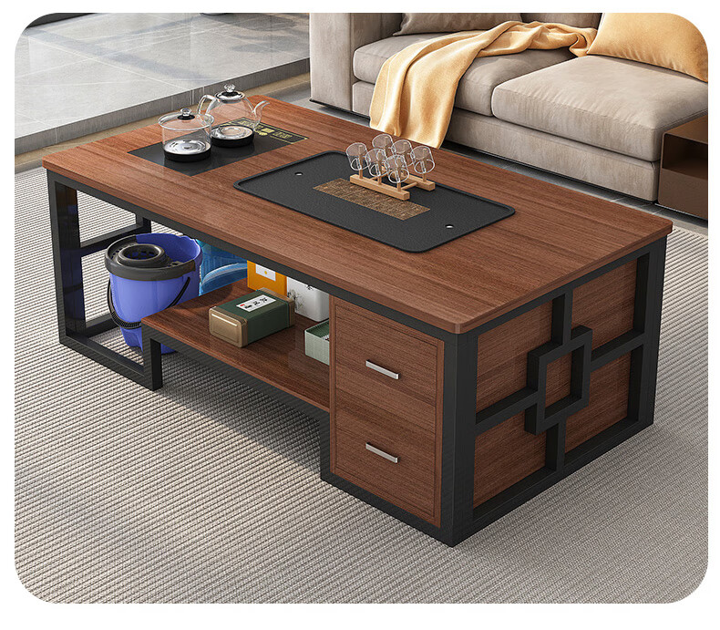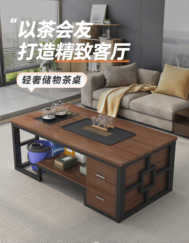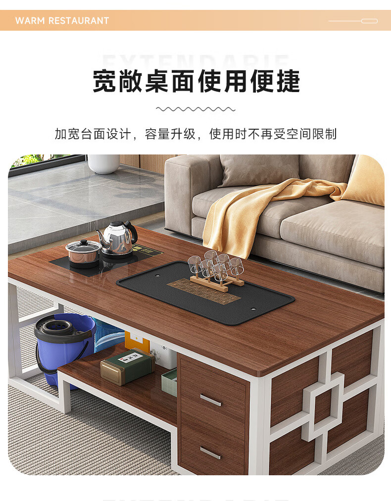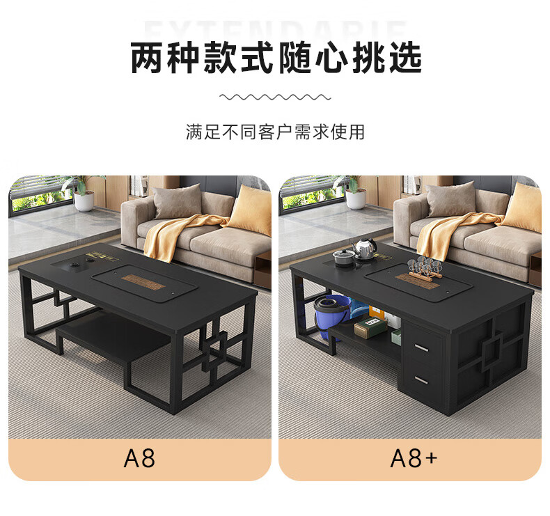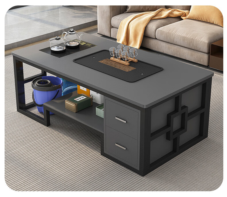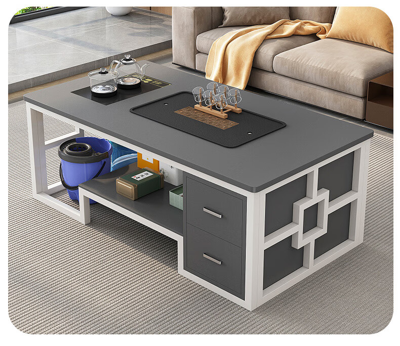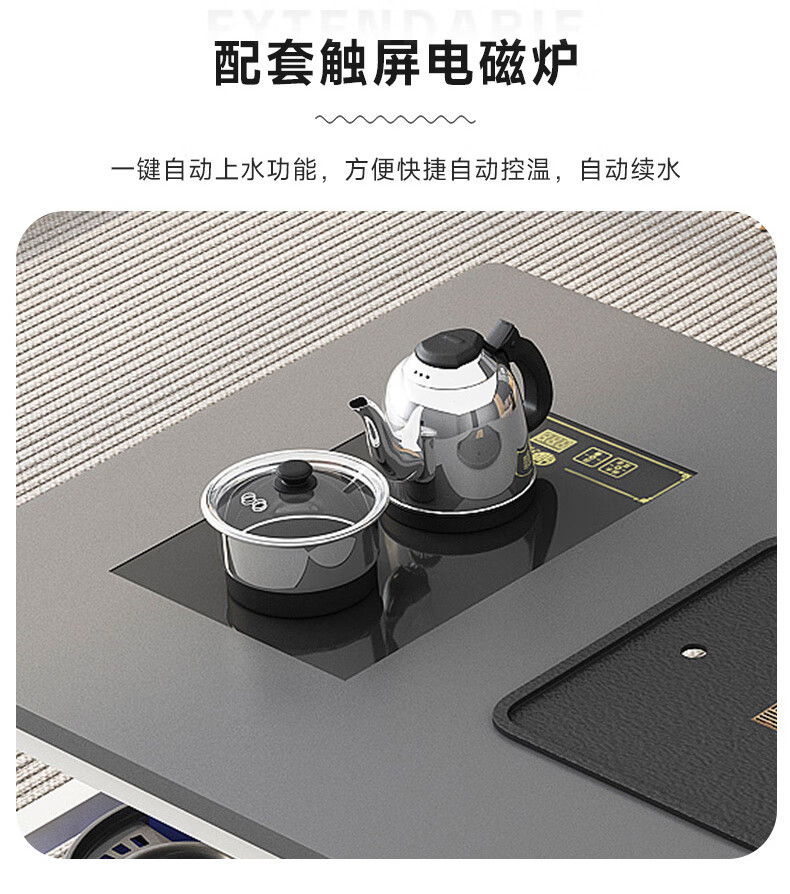 Seven Lucky Stars Tea Table Living Room Home Small Tea Table Kung Fu Office Kettle Tea Set Set for Making Tea All-in-one Simple Small Coffee Table A8 Style - Gray with Glass Teapot Length 120* Width 60* Height 55