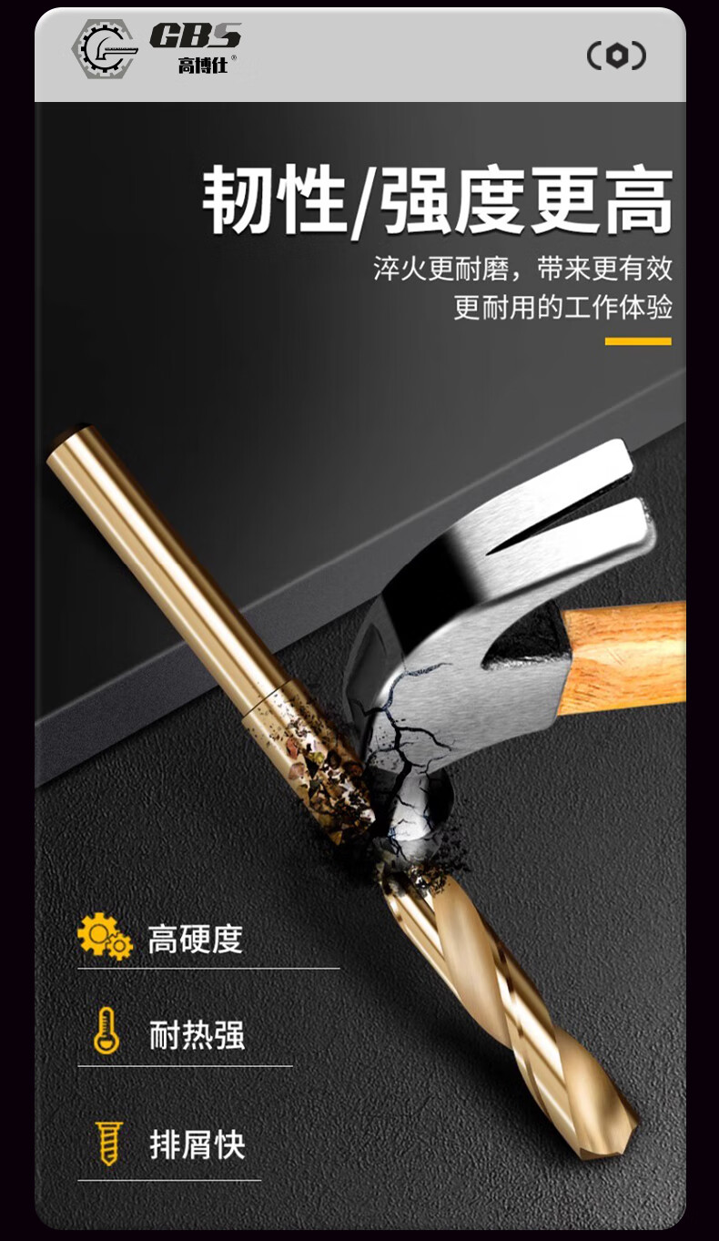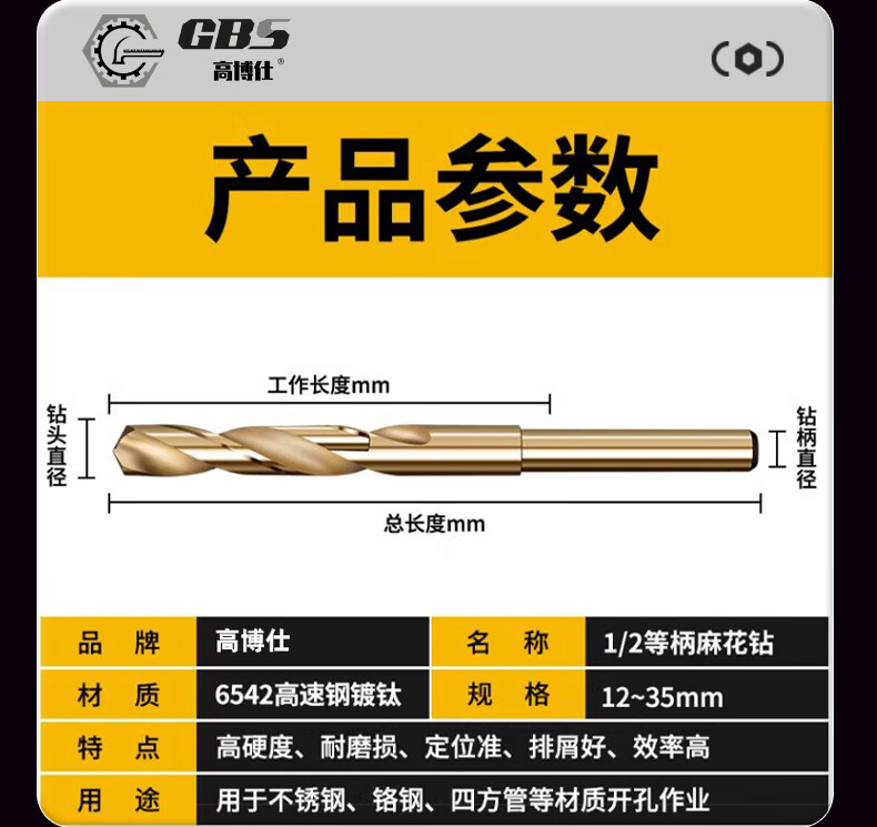 Gobos 1/2 small shank equal shank twist drill bit 6542 high speed steel cobalt-containing woodworking opener metal stainless steel special hard equal shank drill 12mm