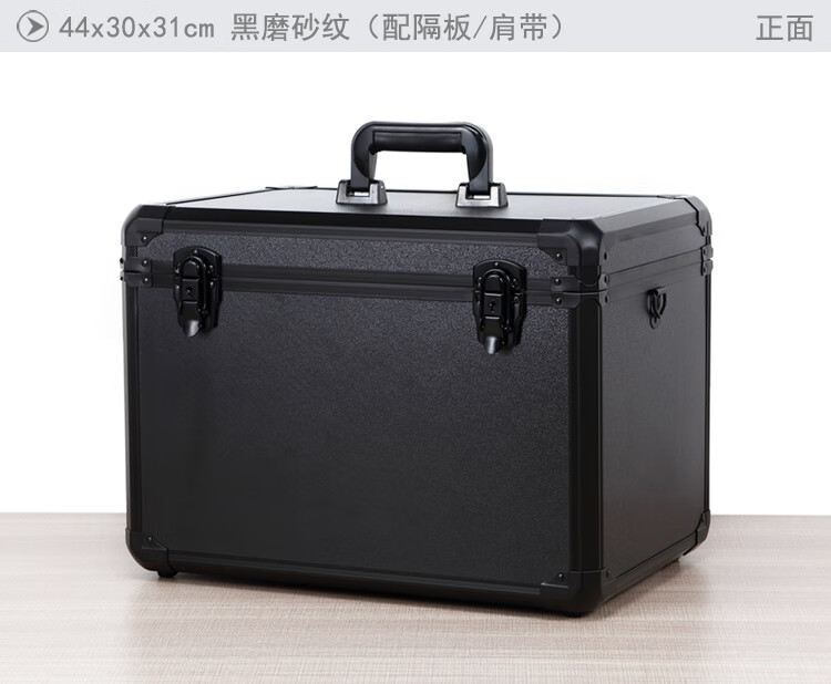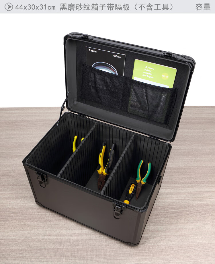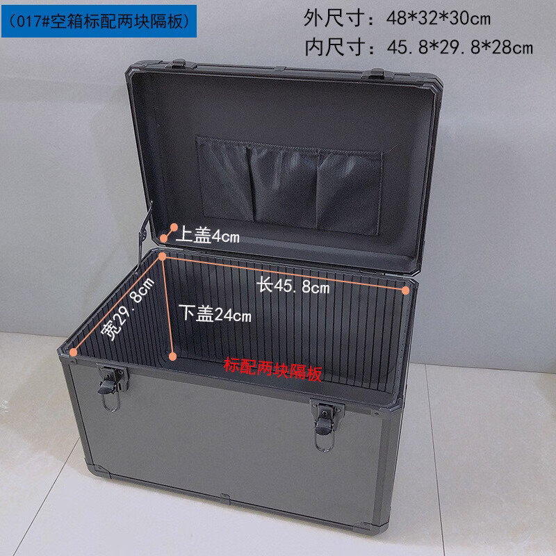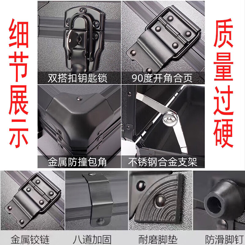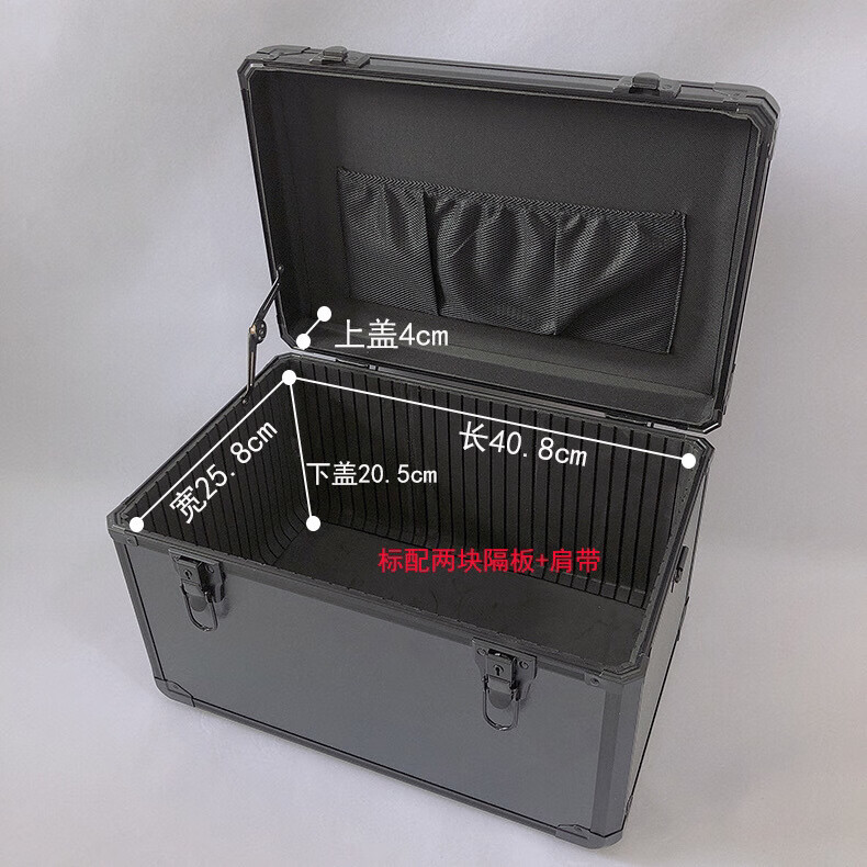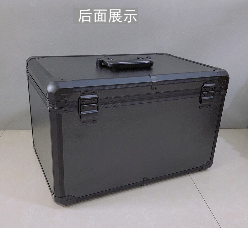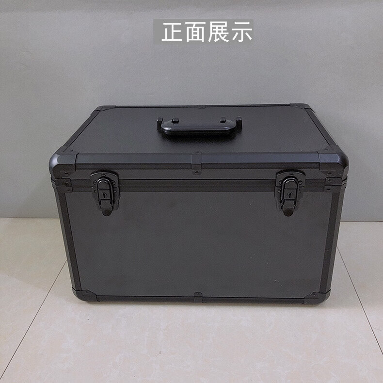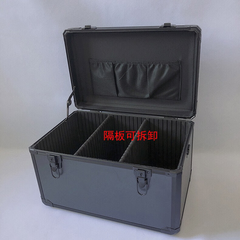 An Junsheng aluminum alloy tool box large lockable metal storage box instrument display suitcase outer diameter 44*30*31 black empty box partition