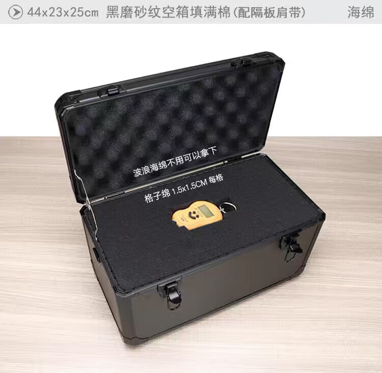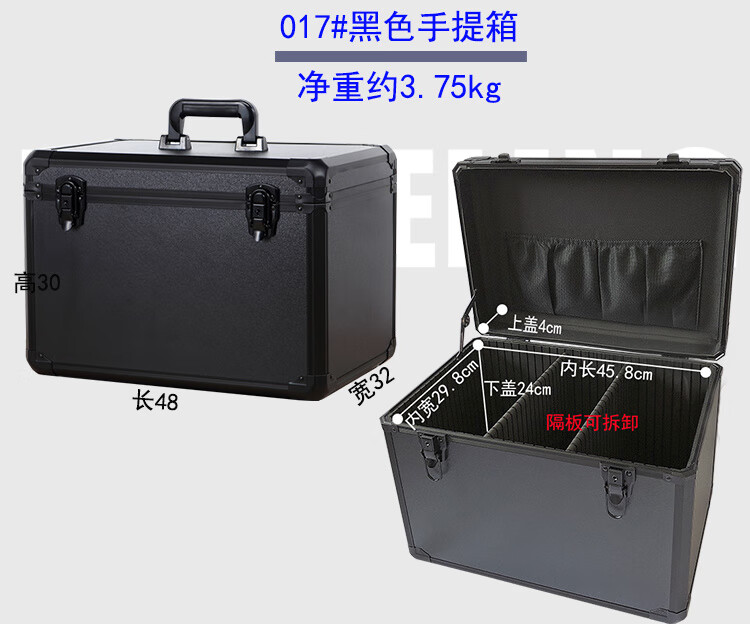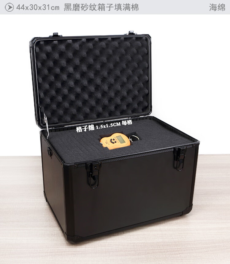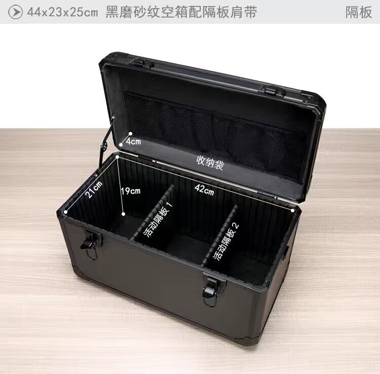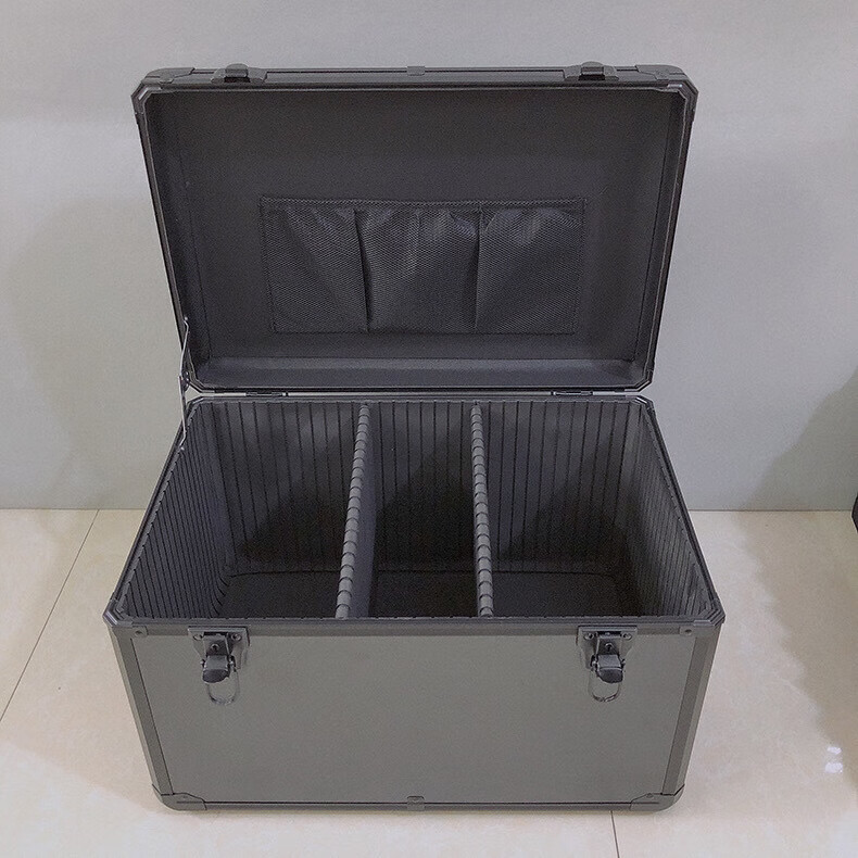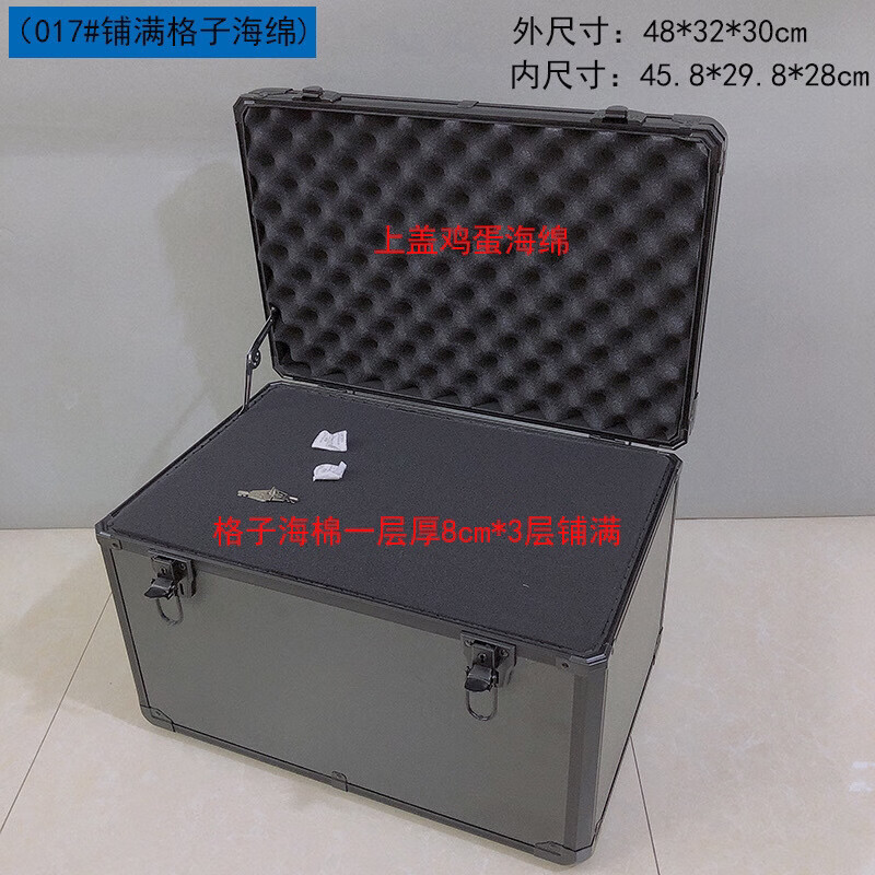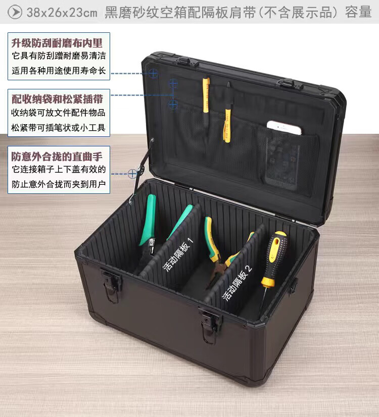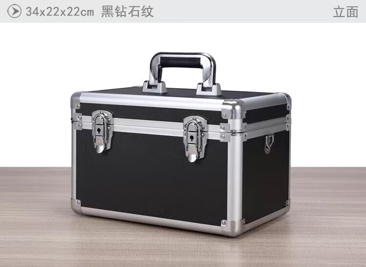An Junsheng aluminum alloy tool box large lockable metal storage box instrument display suitcase outer diameter 44*30*31 black empty box partition